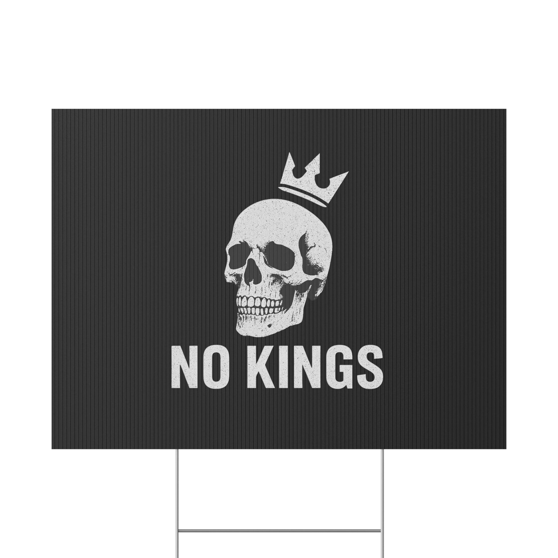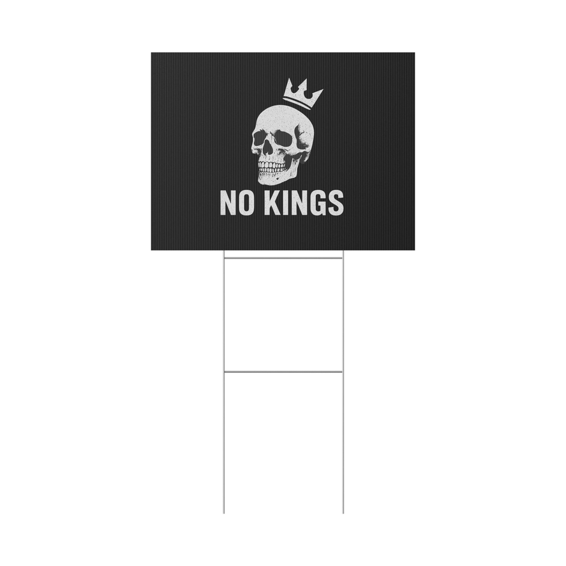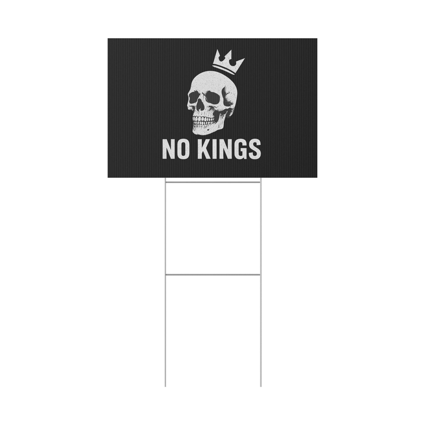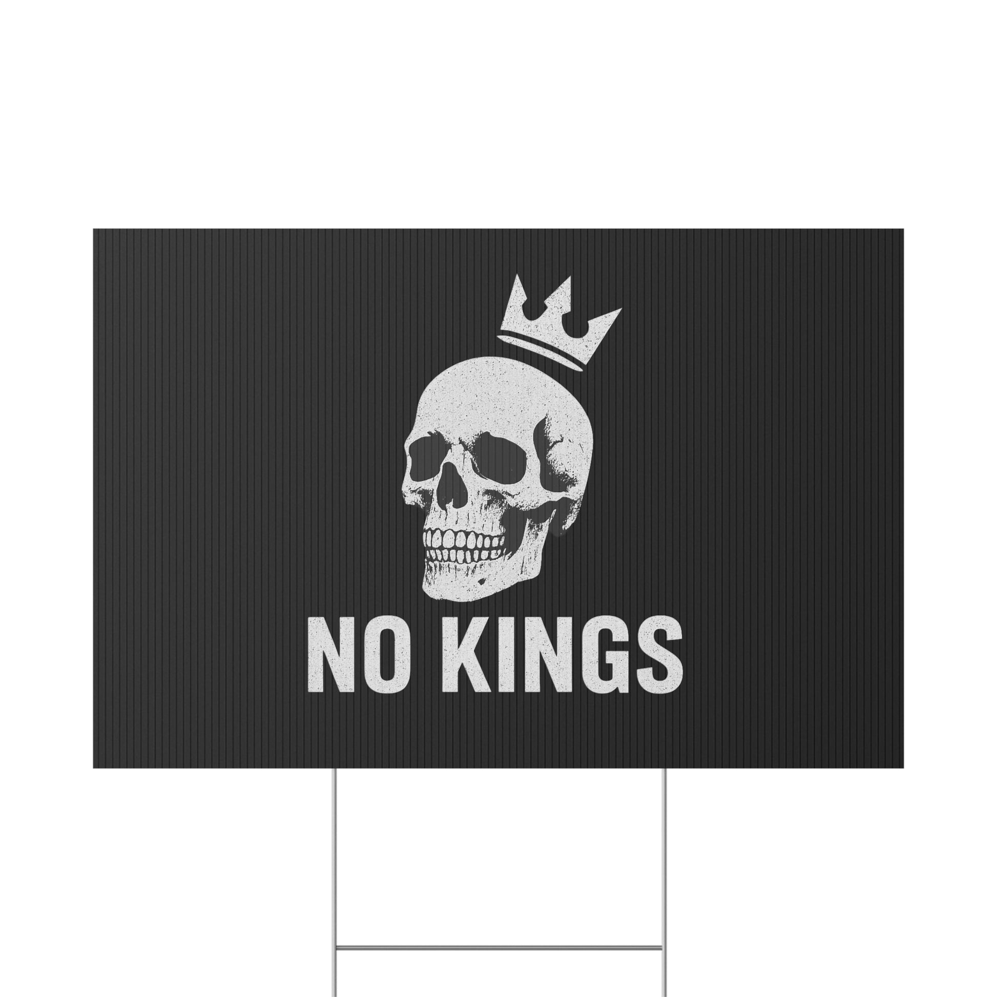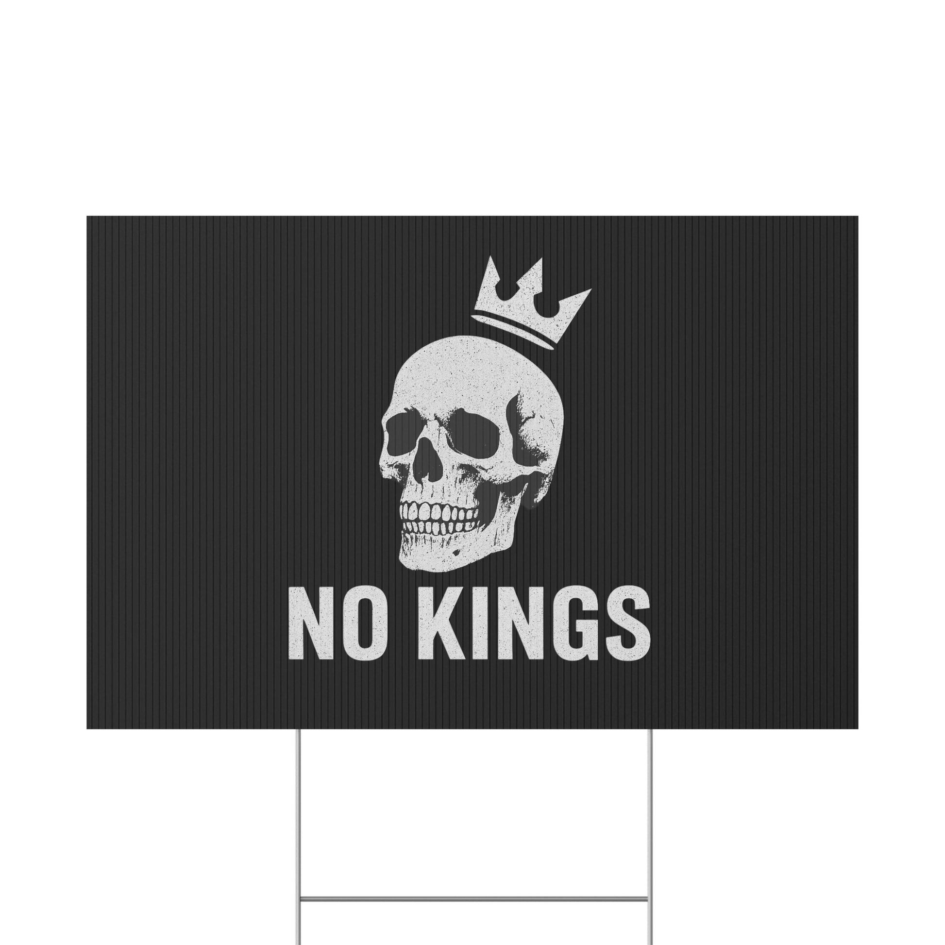 No Kings yard sign, perfect for outdoor use, adds a touch of personality to your garden or lawn. Ideal for those who want to make a statement with their outdoor decor, relevant for birthdays, celebrations, graduations, and holidays.