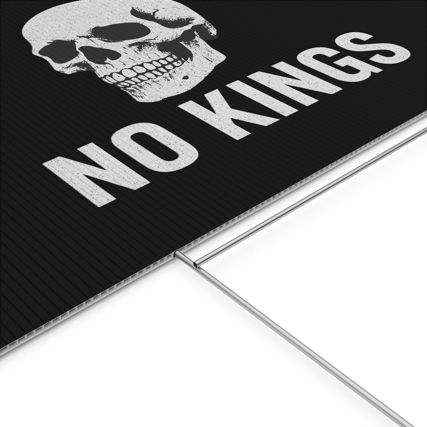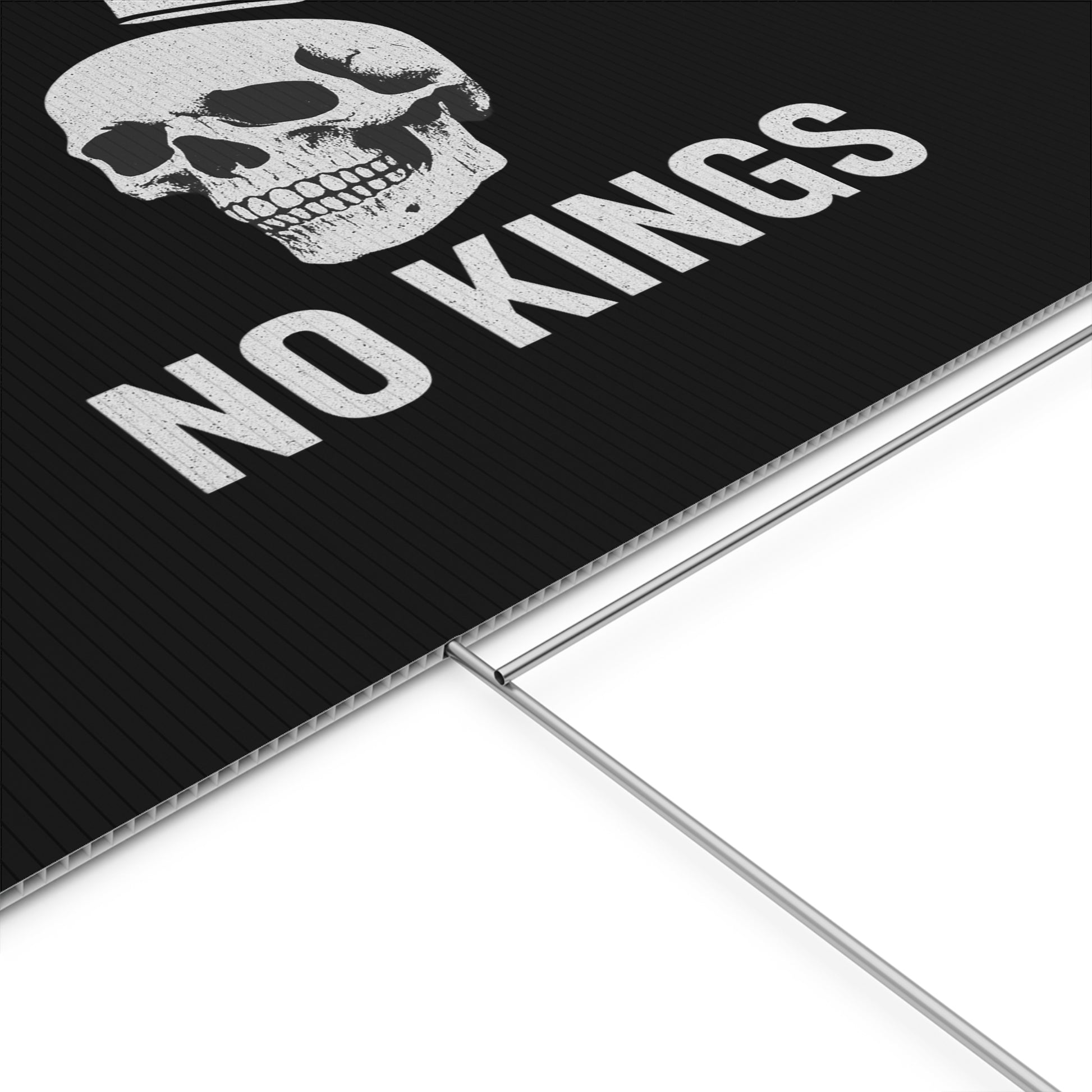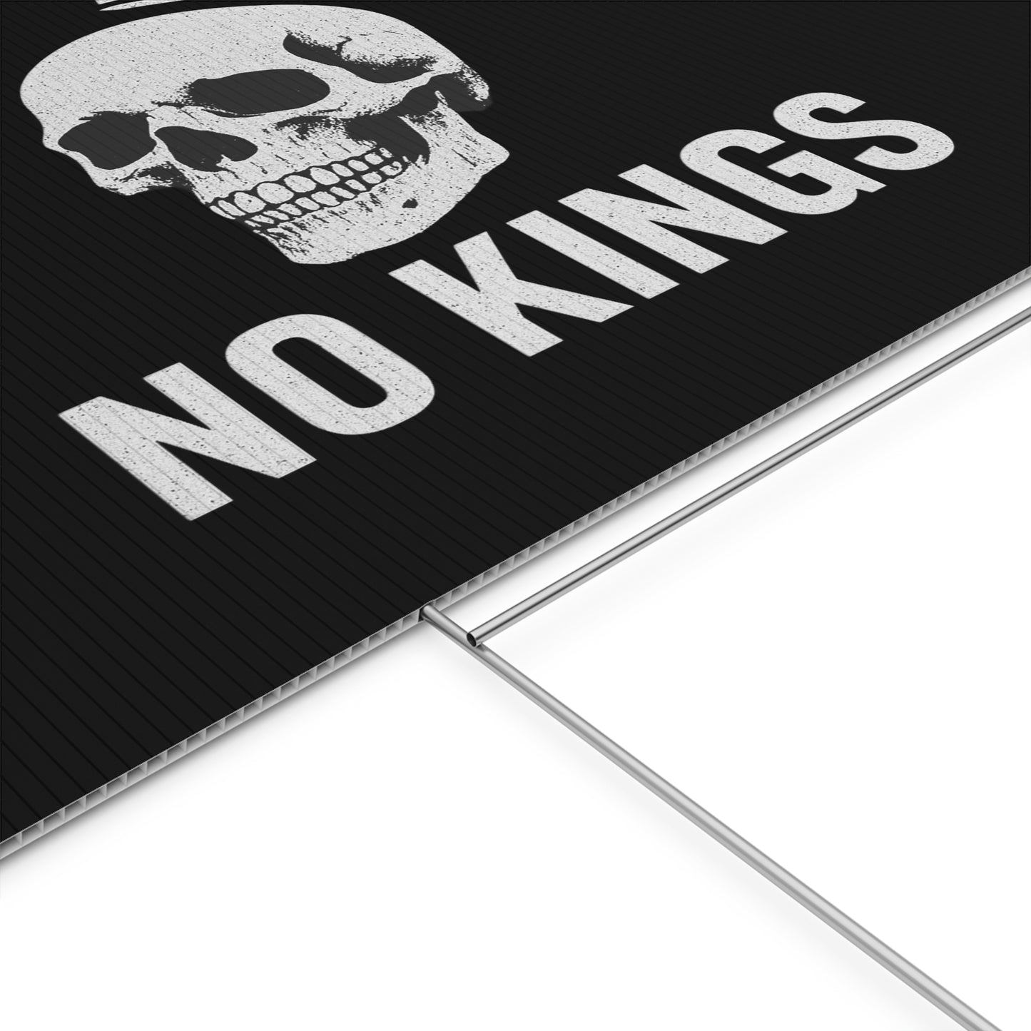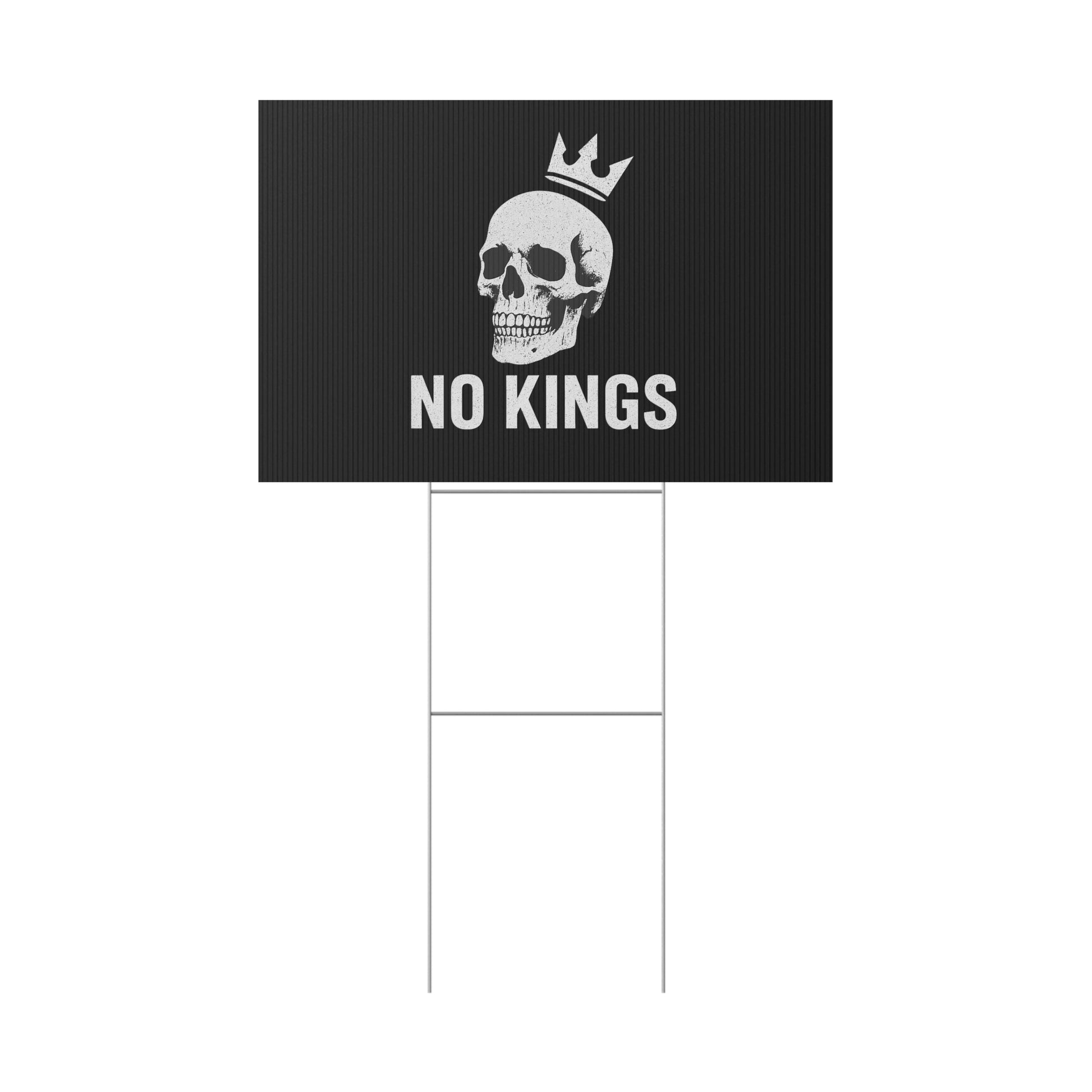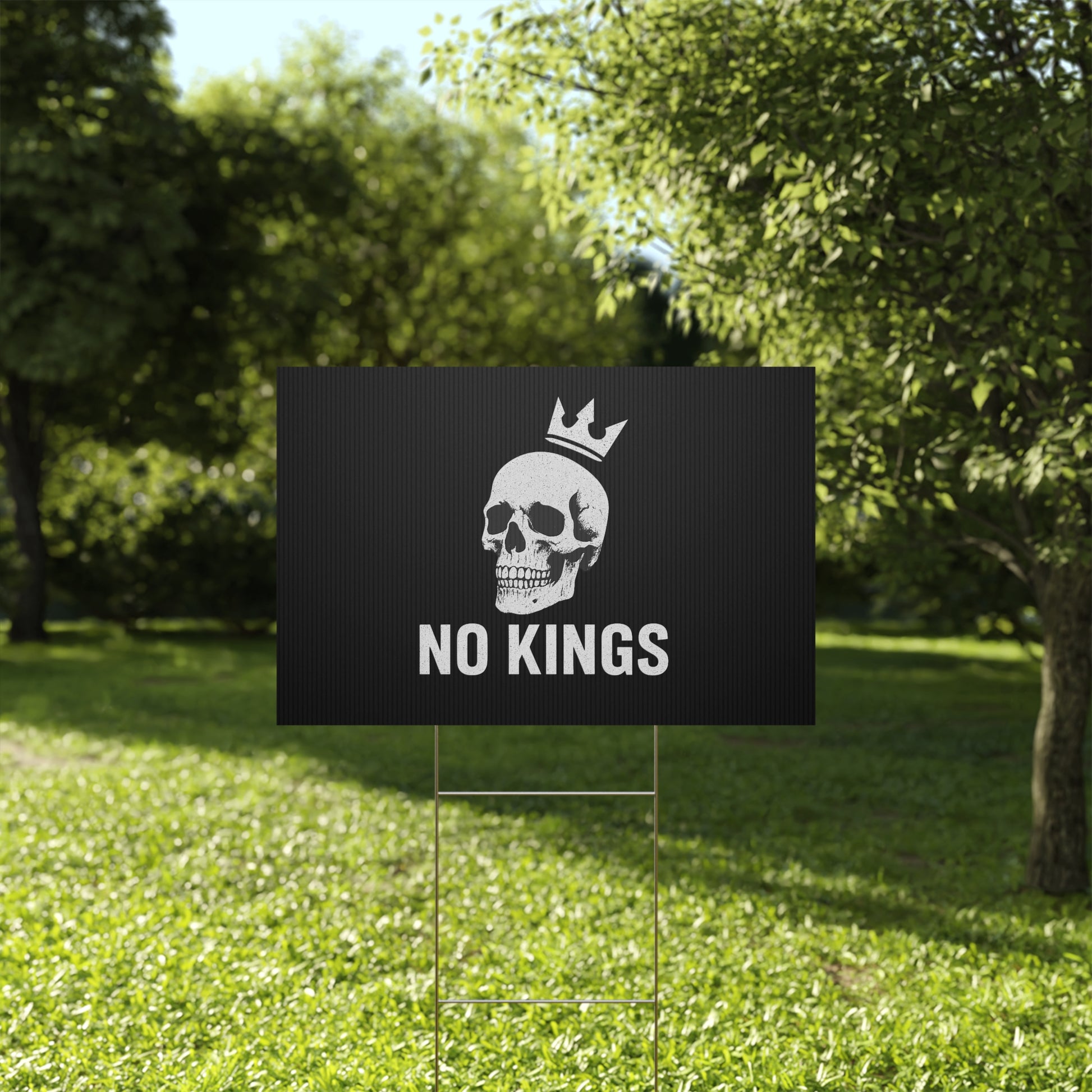 No Kings yard sign, perfect for outdoor use, adds a touch of personality to your garden or lawn. Ideal for those who want to make a statement with their outdoor decor, relevant for birthdays, celebrations, graduations, and holidays.