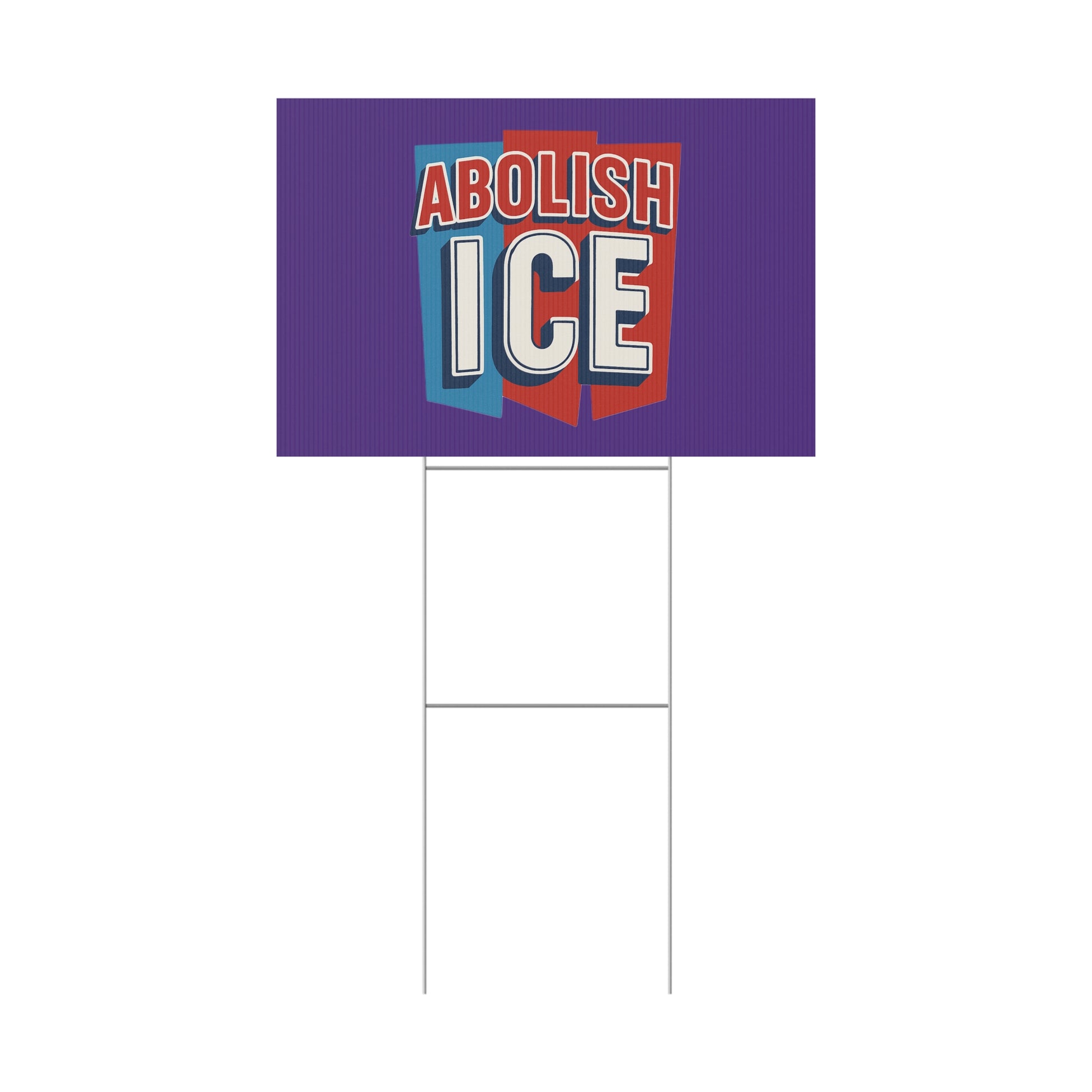 Bold, weather-resistant, and impossible to ignore—our Abolish ICE yard signs turn your lawn into a statement. Built to withstand the elements, each sign stands as a declaration for justice, human dignity, and a future free from detention and deportation. Perfect for showing your neighbors and community where you stand.