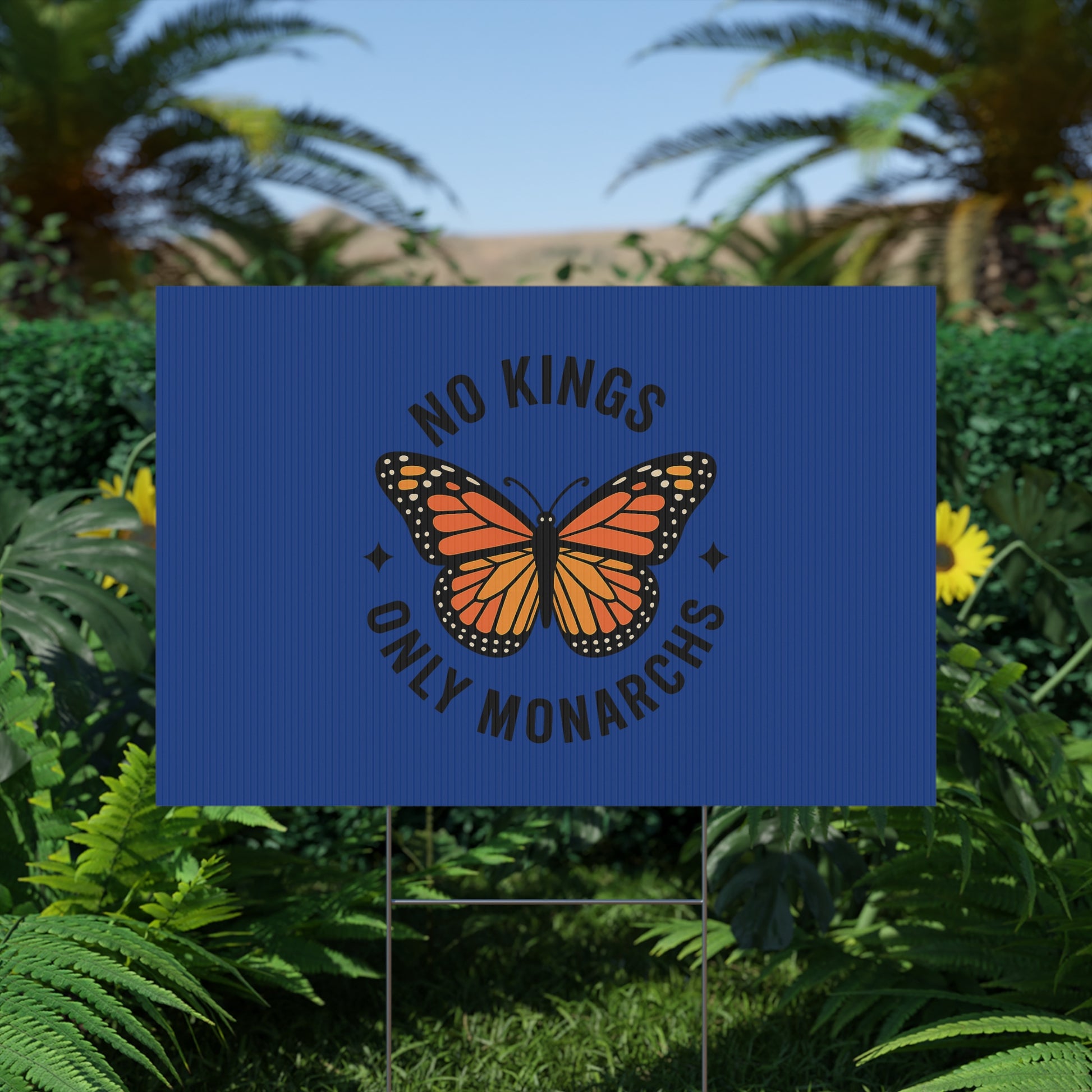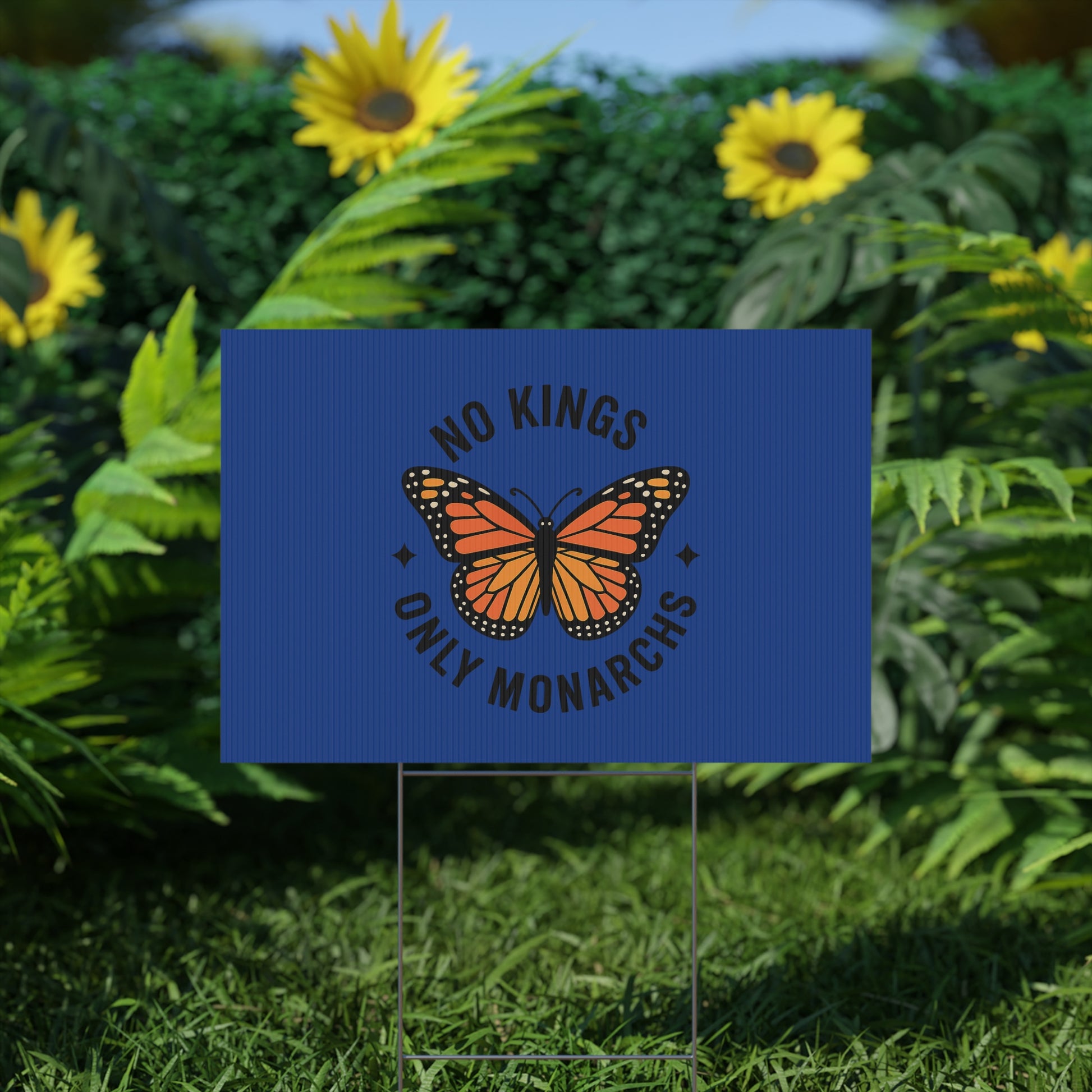 Dark Blue No Kings Only Monarchs Yard Sign