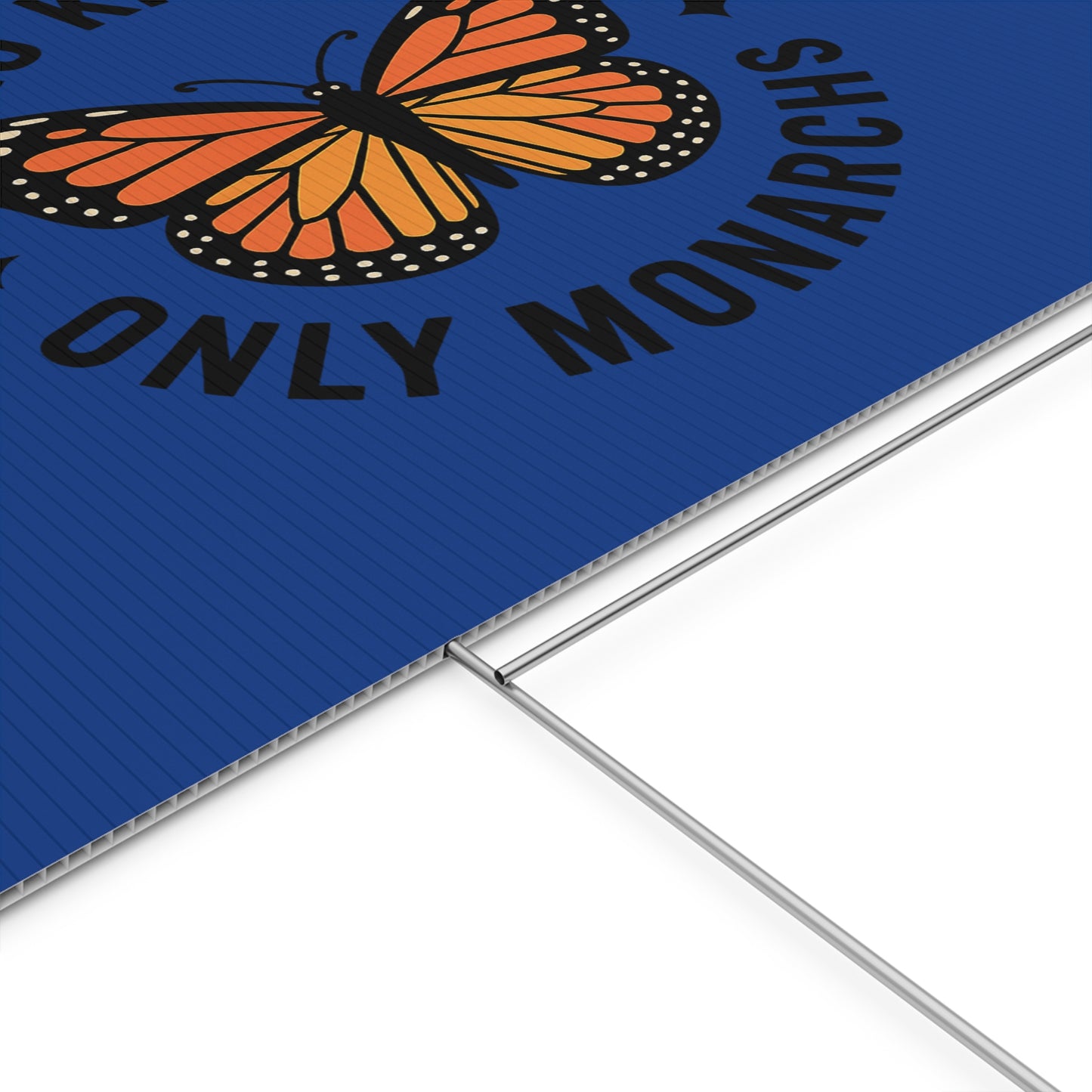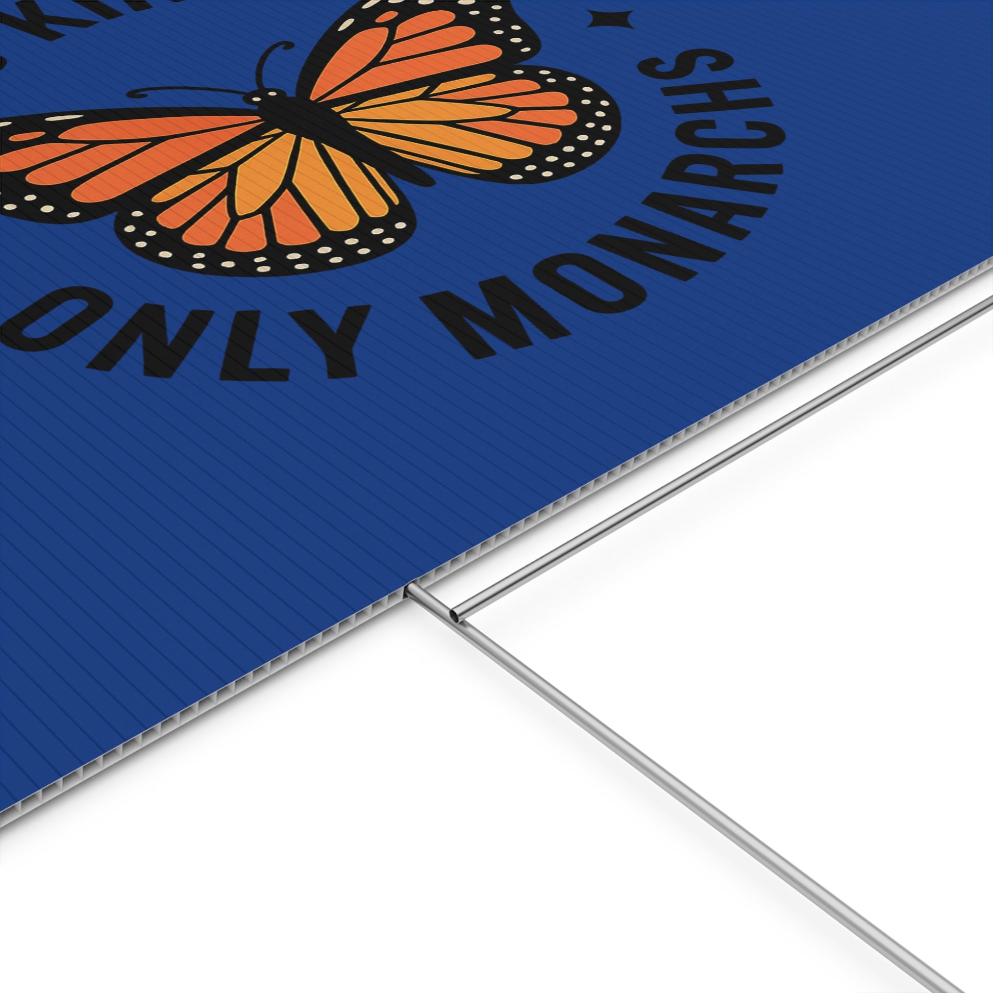 Make a statement with the "no kings only monarchs" yard sign protest with style. Perfect for outdoor use, this durable plastic sign comes with a metal stake for stability. Proudly display this USA-made sign in your garden or lawn. Ideal for activists, protesters, and those looking to make a bold statement.