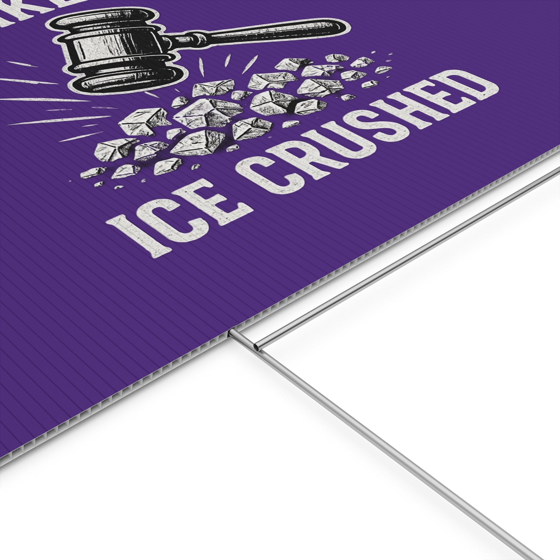 This ICE protest yard sign is the perfect way to make a statement in your yard. Made from durable plastic with a matte finish, this yard sign is ideal for outdoor use. It comes with a metal stake for easy installation and can be displayed in portrait or landscape orientation. Show your support for a cause with this impactful yard sign, relevant for protests, demonstrations, and activism.