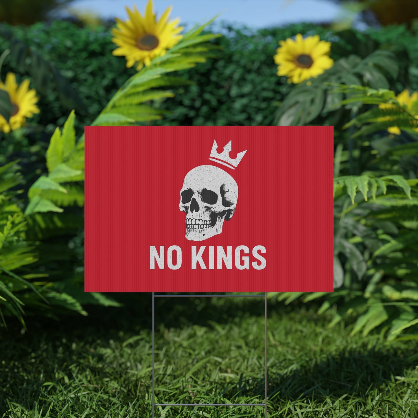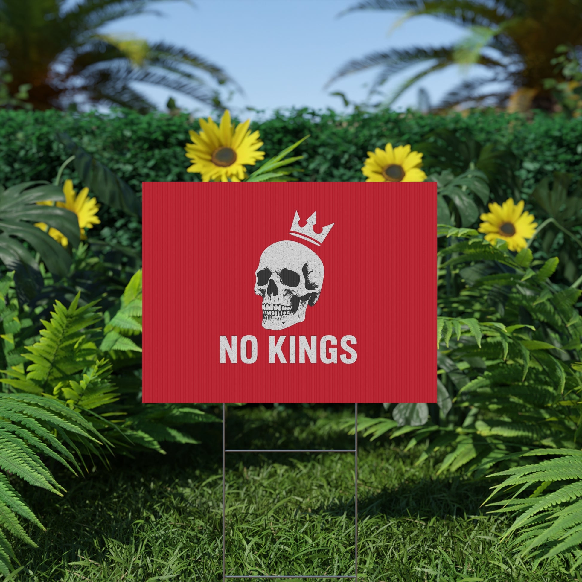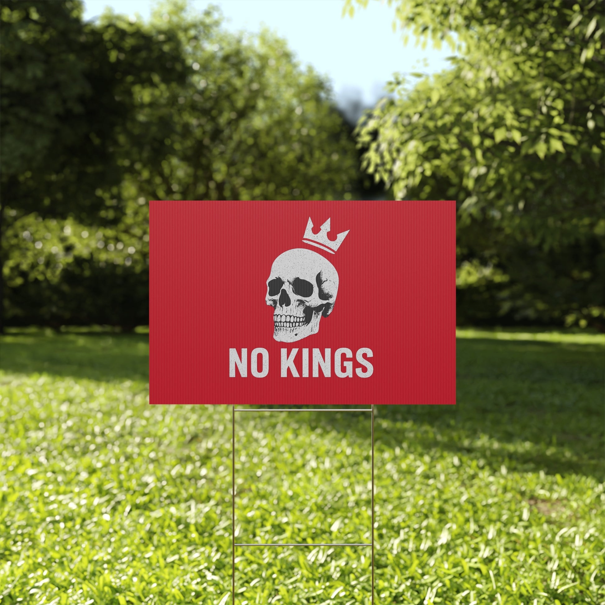 No Kings yard sign, perfect for outdoor use, adds a touch of personality to your garden or lawn. Ideal for those who want to make a statement with their outdoor decor, relevant for birthdays, celebrations, graduations, and holidays.