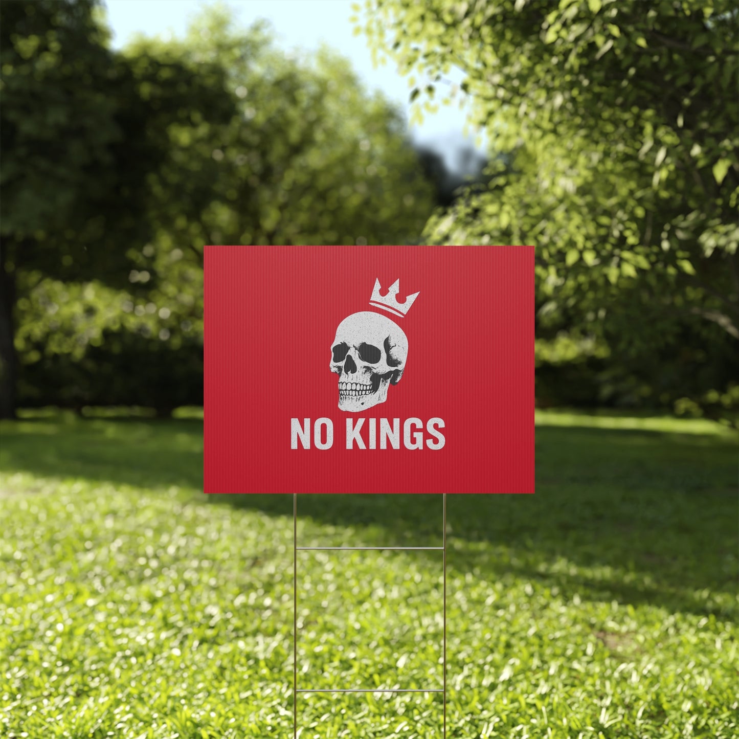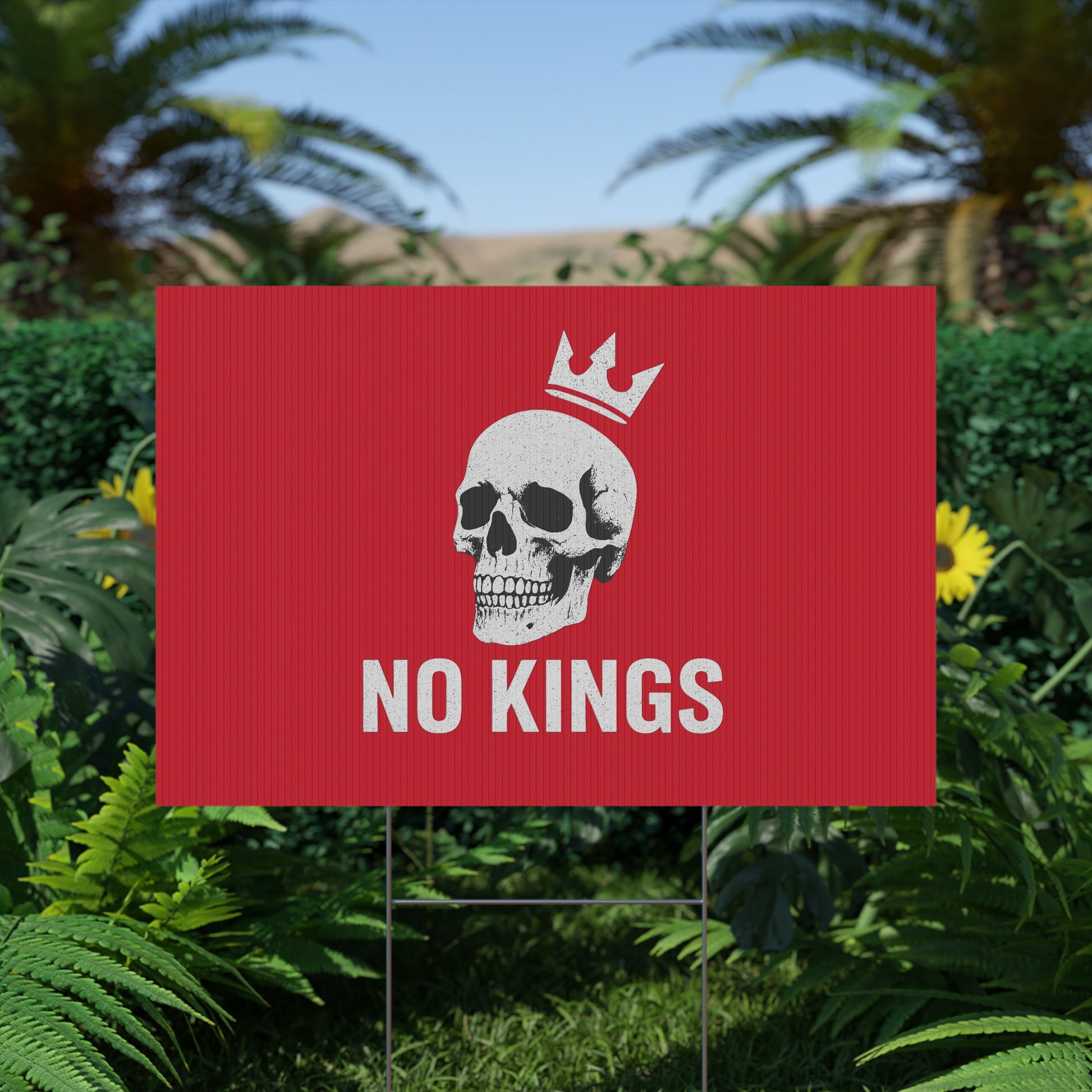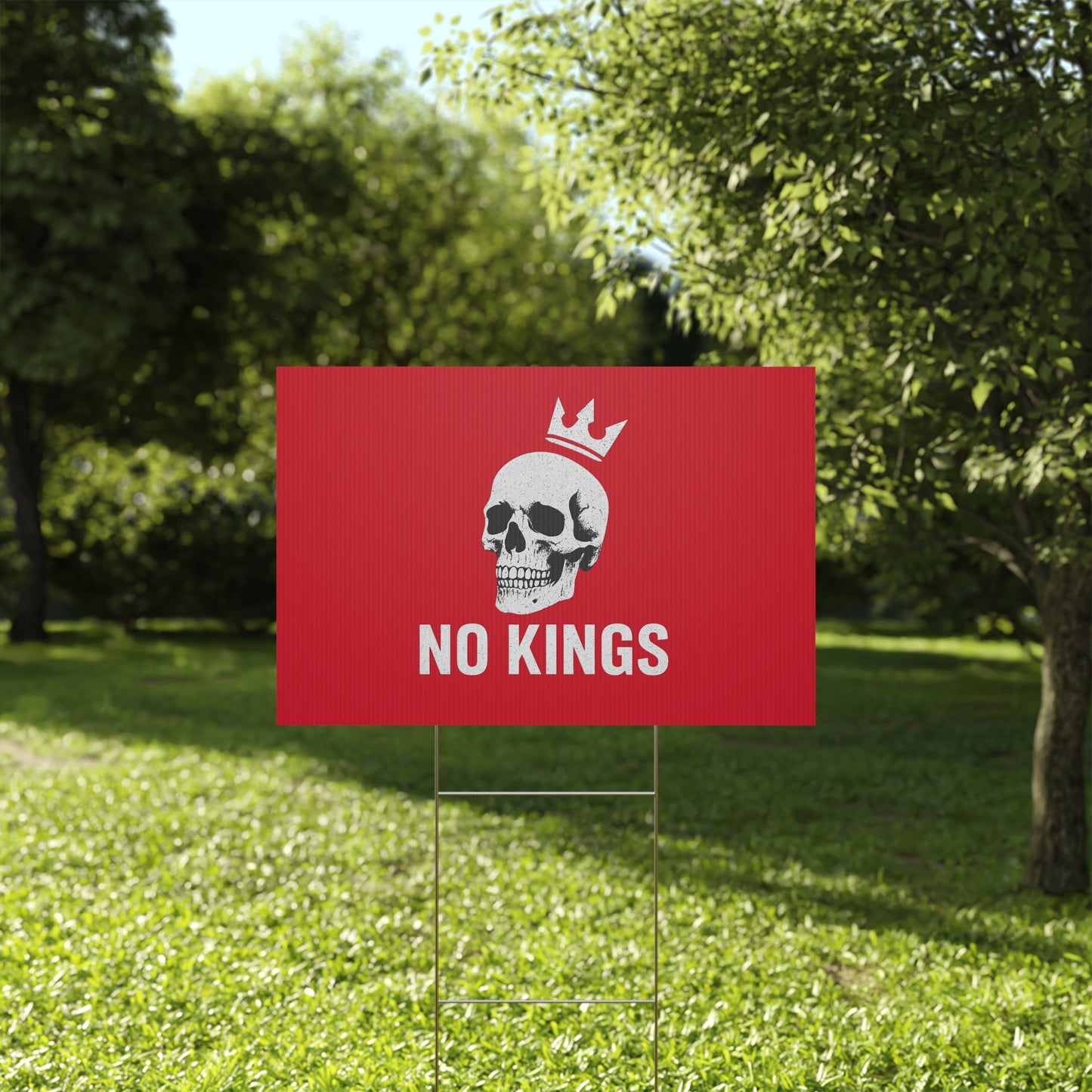 No Kings yard sign, perfect for outdoor use, adds a touch of personality to your garden or lawn. Ideal for those who want to make a statement with their outdoor decor, relevant for birthdays, celebrations, graduations, and holidays.