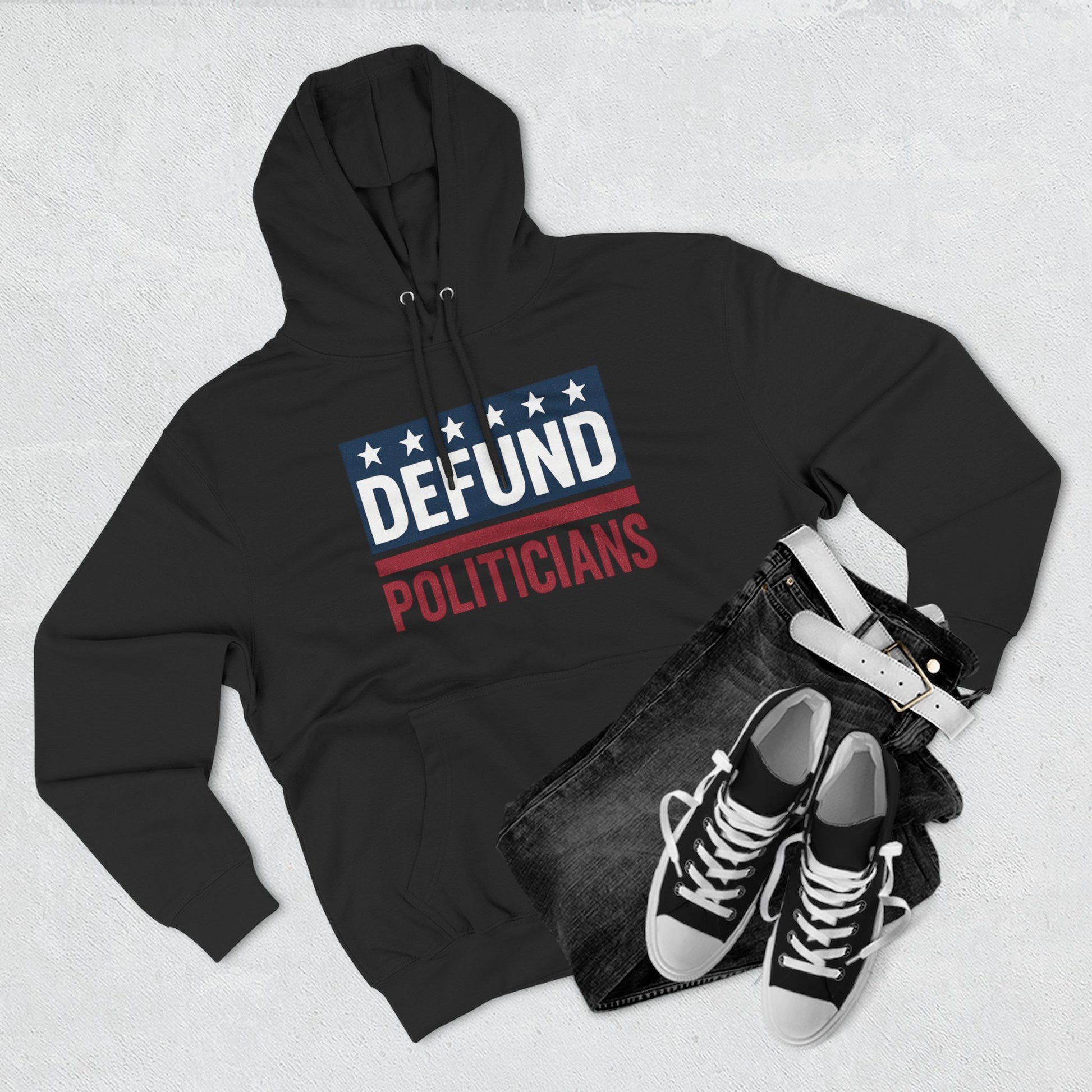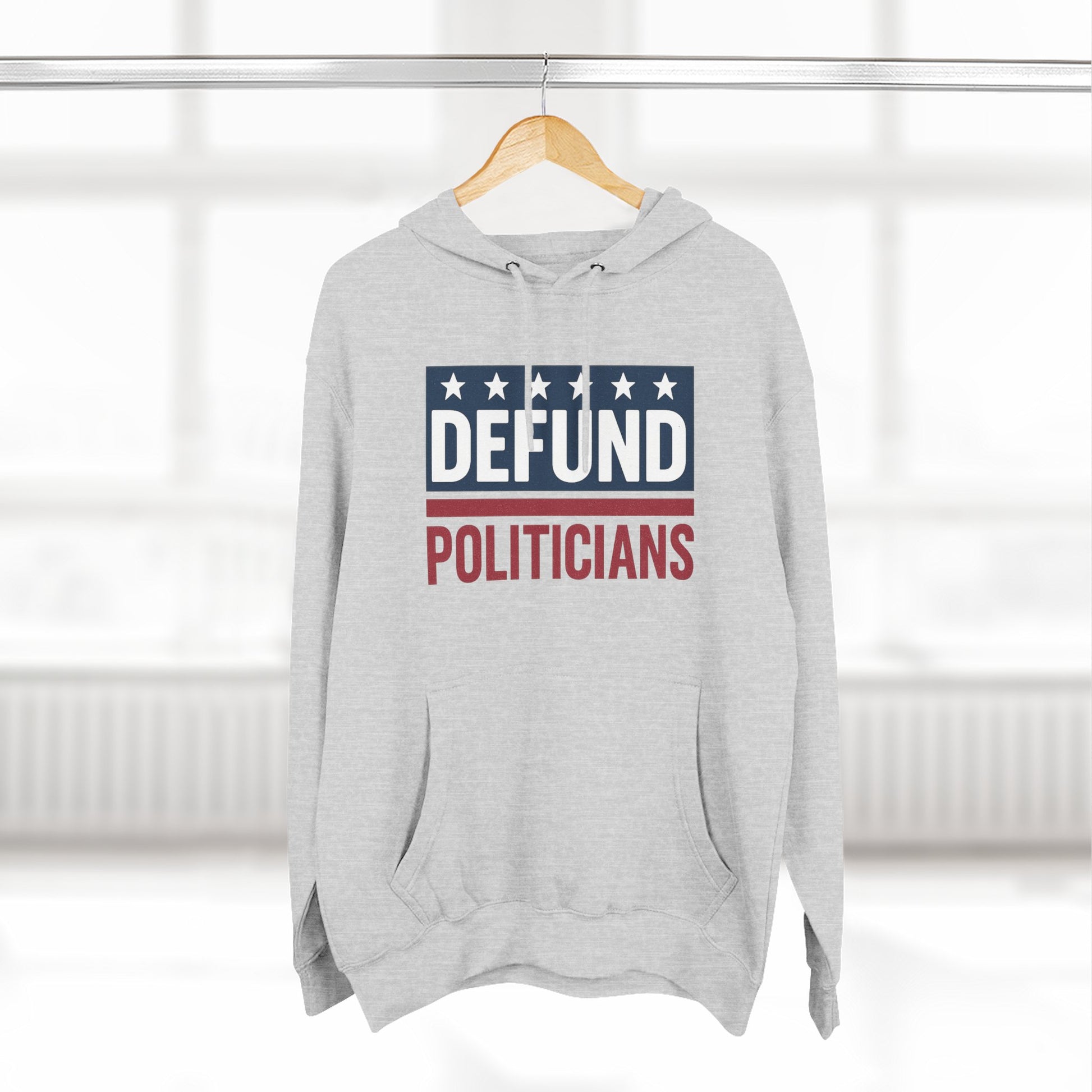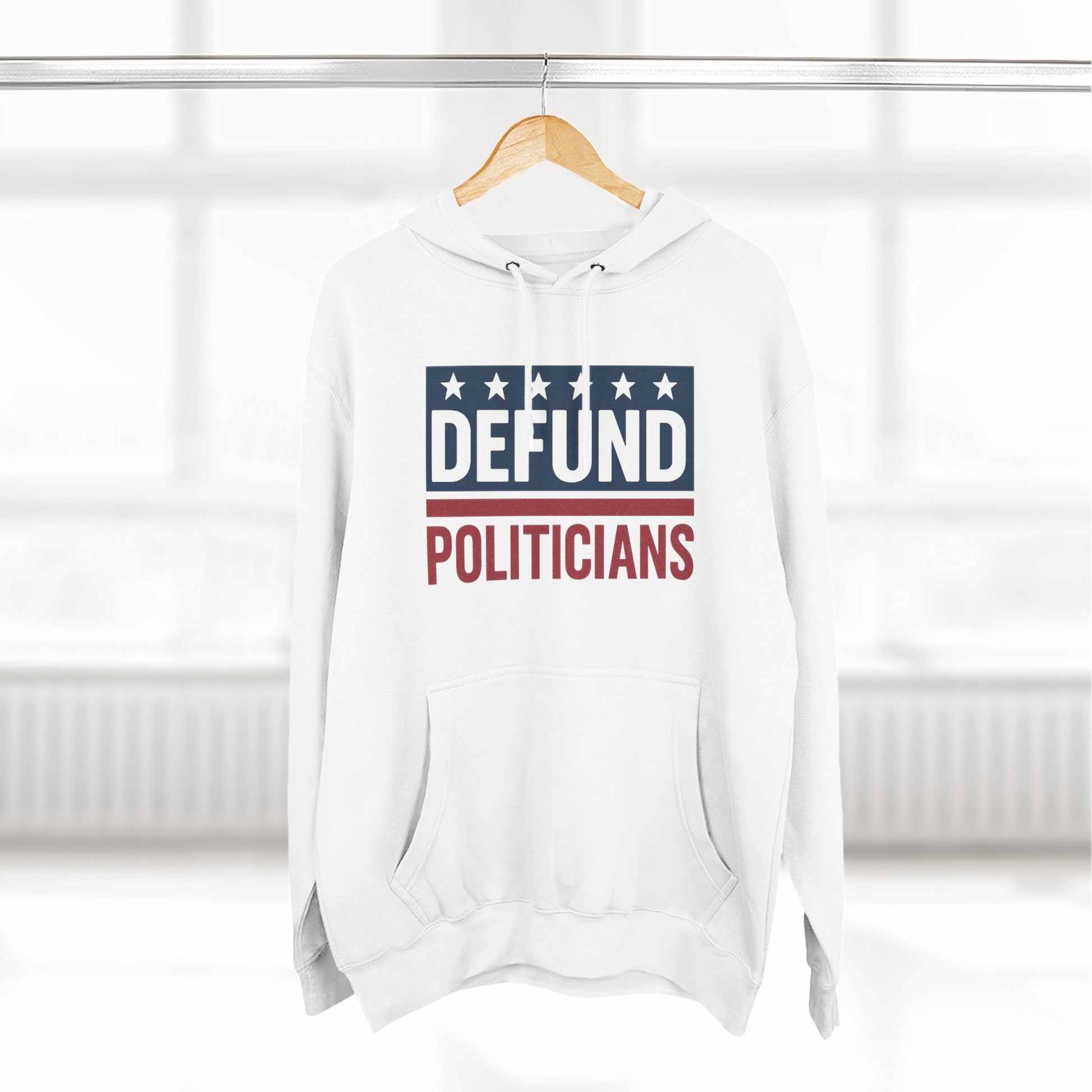 Wrap yourself in comfort and conviction with the “Defund Politicians” Hoodie, a bold, campaign-style design that turns frustration into fashion. Featuring striking red, white, and blue typography with patriotic stars and stripes, this piece combines the look of a classic political slogan with the energy of a modern protest. Made from a soft, heavyweight cotton-blend fleece, it’s perfect for chilly mornings, rallies, or simply making your stance clear while staying cozy. The design pops against any color hoodie, and the message? Impossible to ignore.