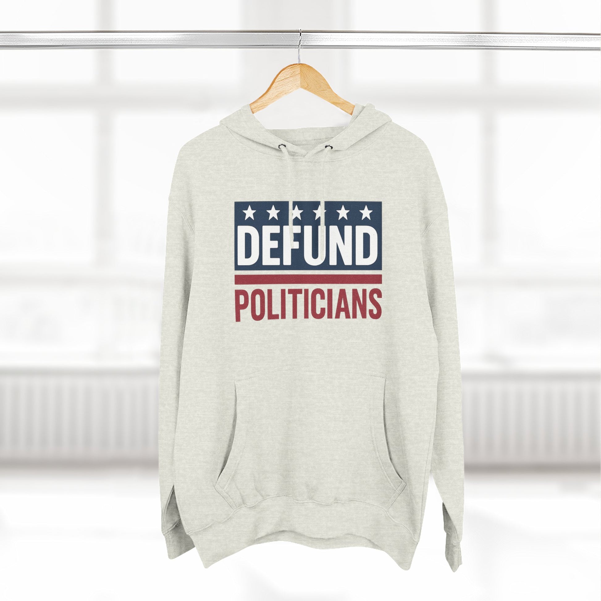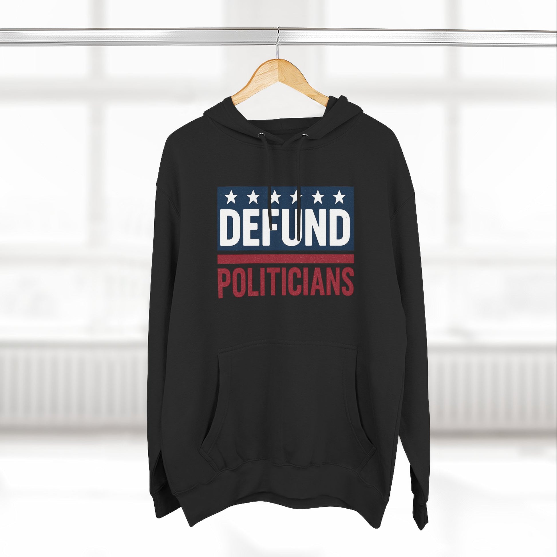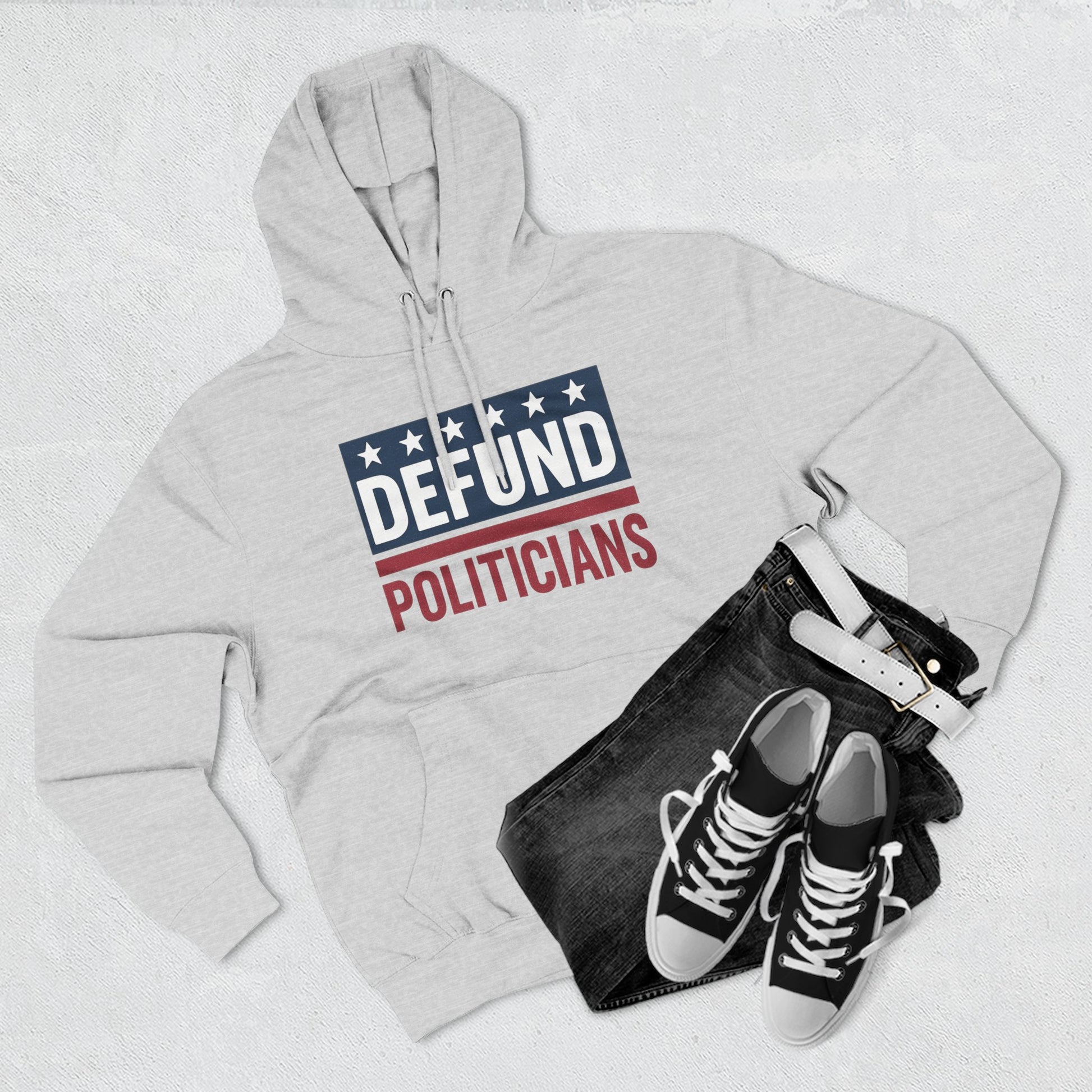 Wrap yourself in comfort and conviction with the “Defund Politicians” Hoodie, a bold, campaign-style design that turns frustration into fashion. Featuring striking red, white, and blue typography with patriotic stars and stripes, this piece combines the look of a classic political slogan with the energy of a modern protest. Made from a soft, heavyweight cotton-blend fleece, it’s perfect for chilly mornings, rallies, or simply making your stance clear while staying cozy. The design pops against any color hoodie, and the message? Impossible to ignore.