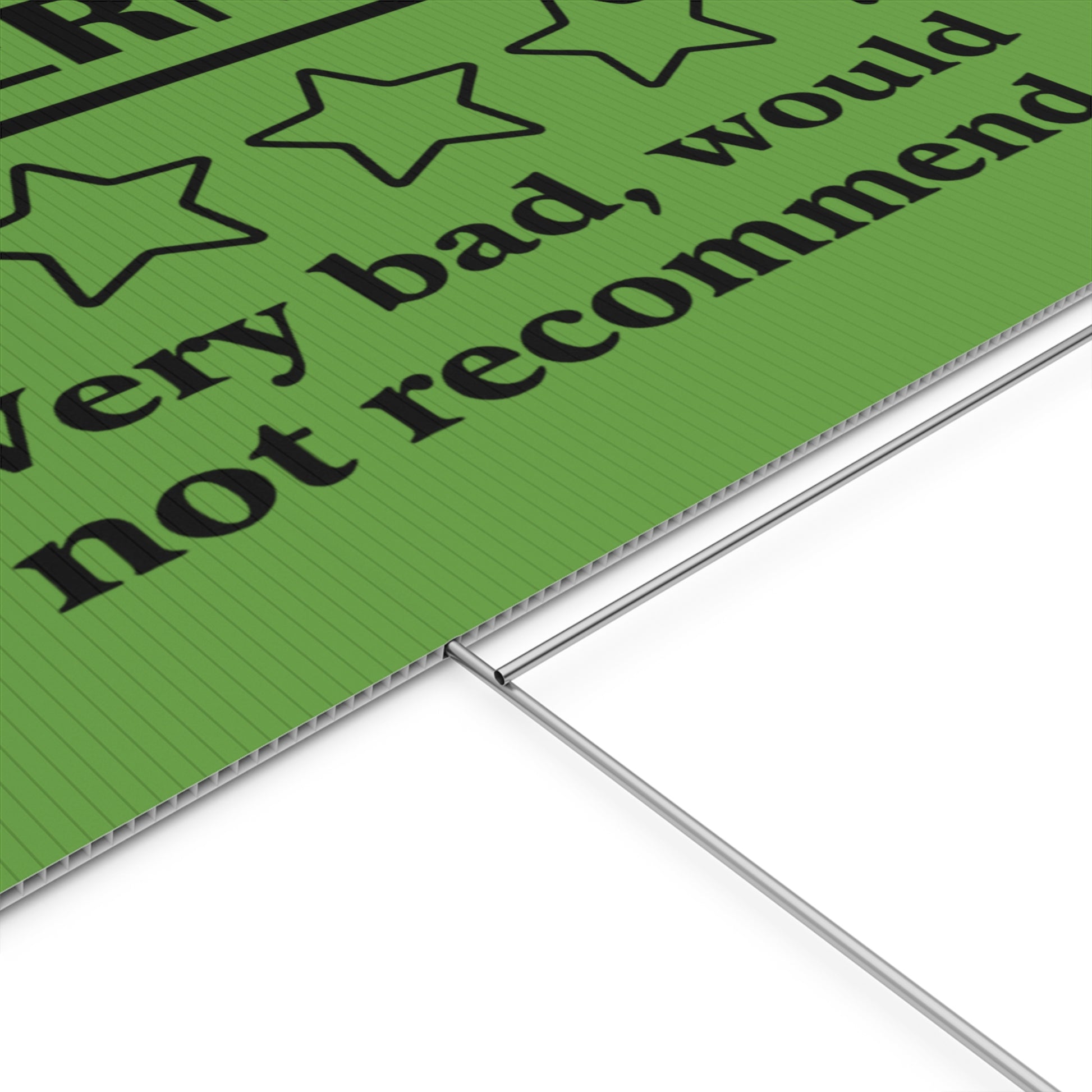 Green Yard Sign - 1/5 Stars Would Not Recommend