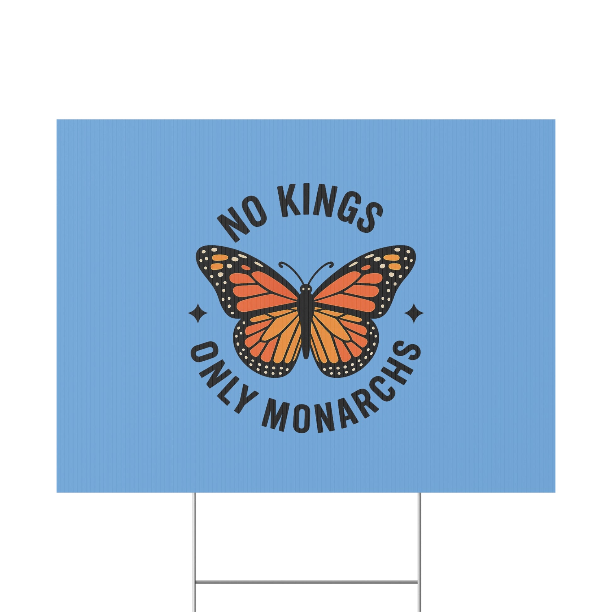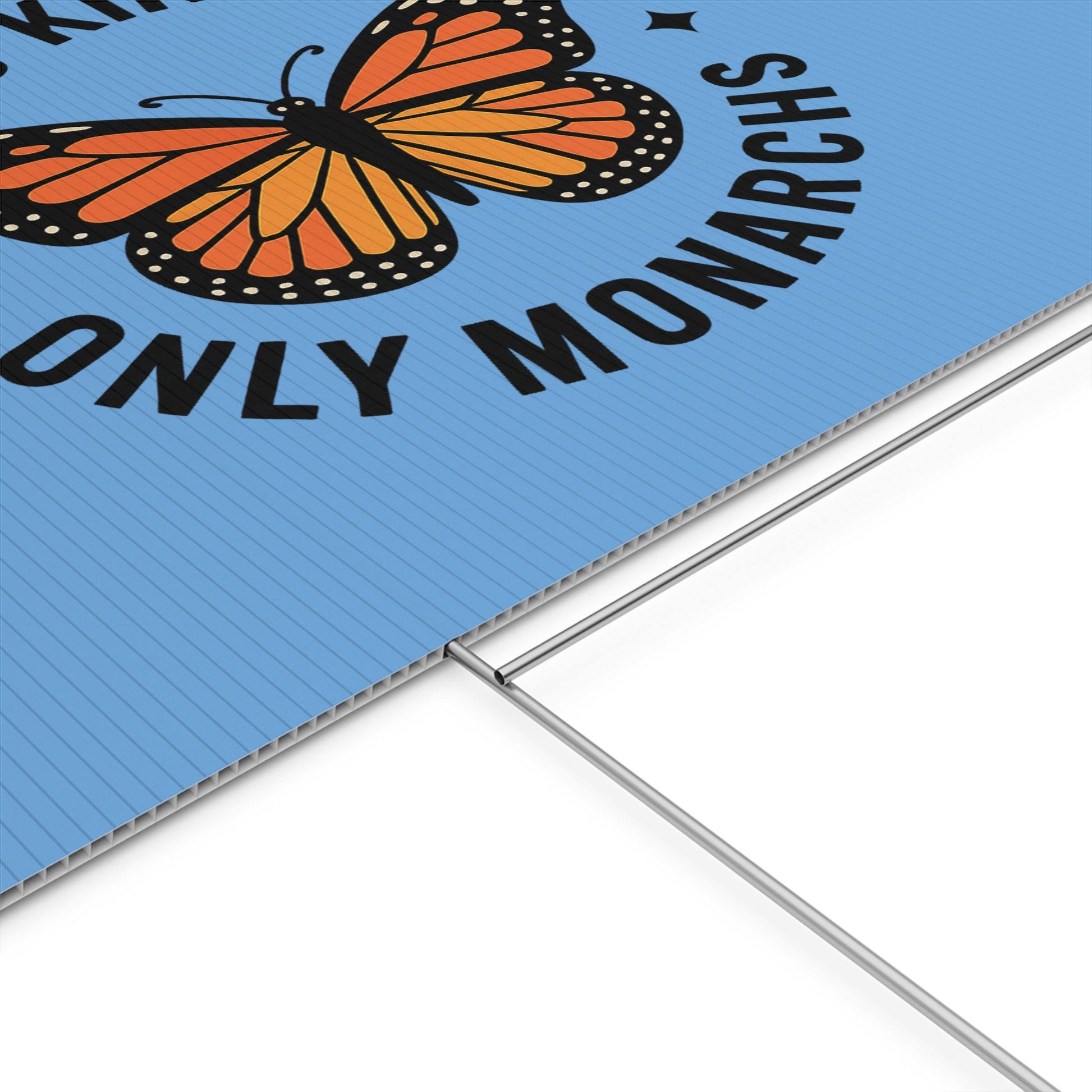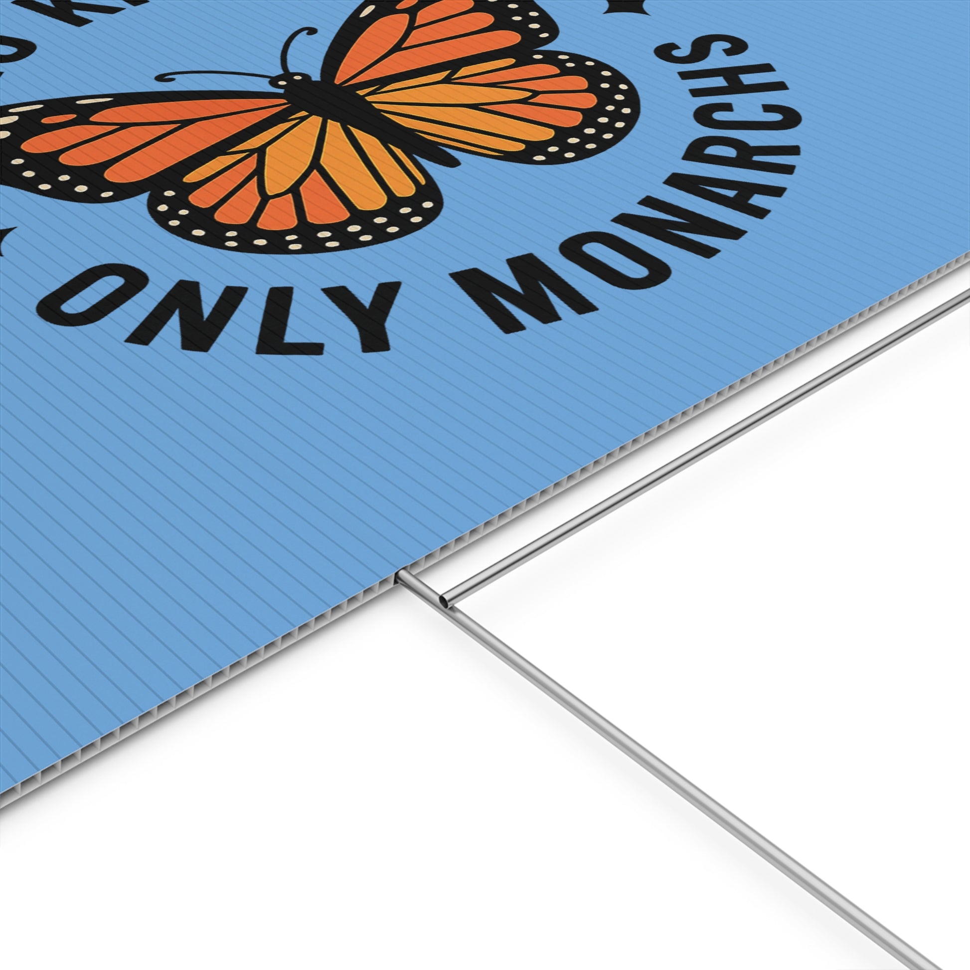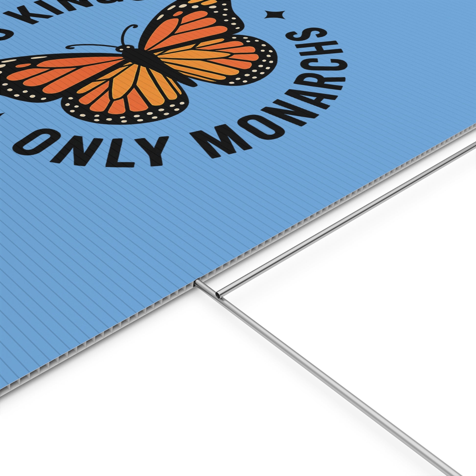Make a statement with the "no kings only monarchs" yard sign protest with style. Perfect for outdoor use, this durable plastic sign comes with a metal stake for stability. Proudly display this USA-made sign in your garden or lawn. Ideal for activists, protesters, and those looking to make a bold statement.