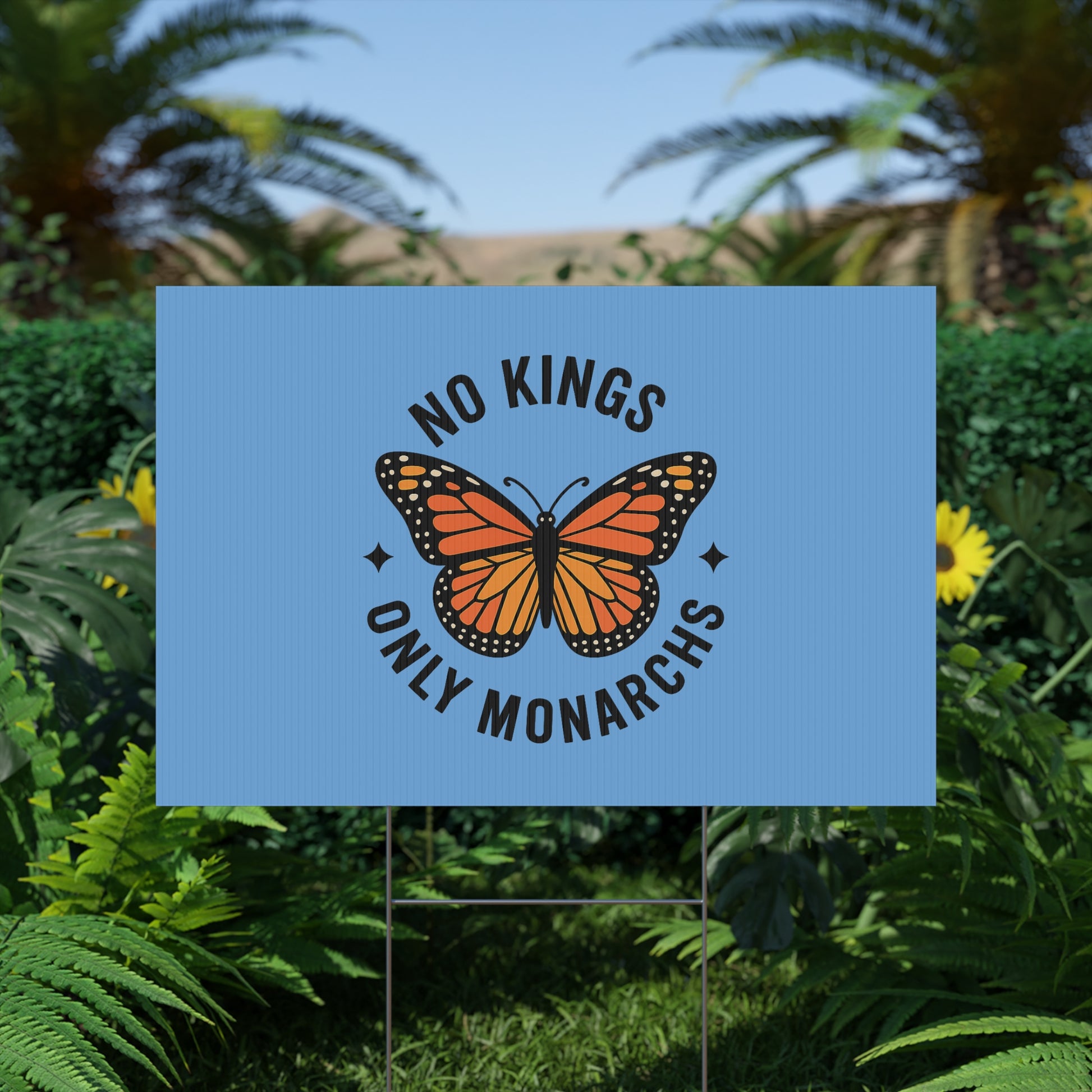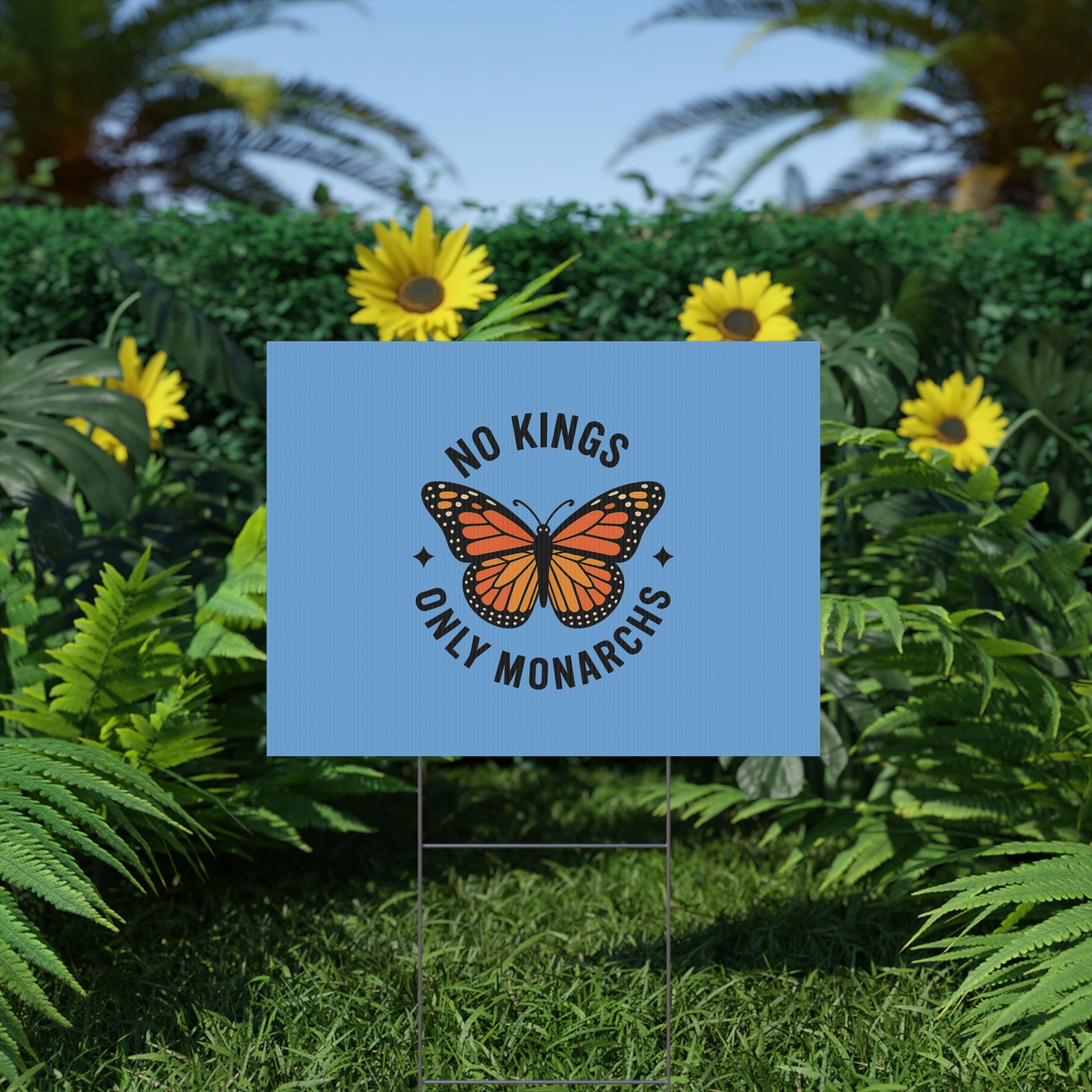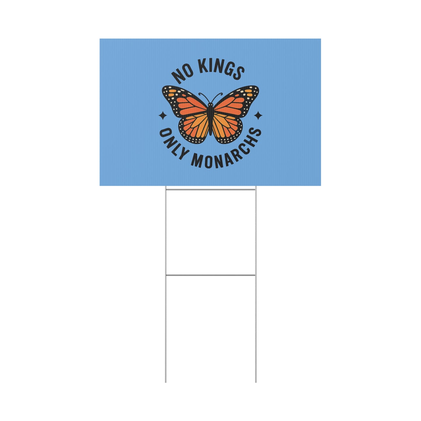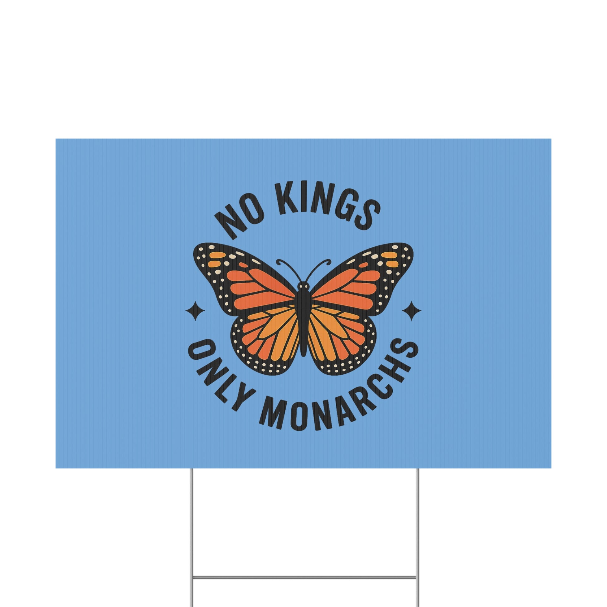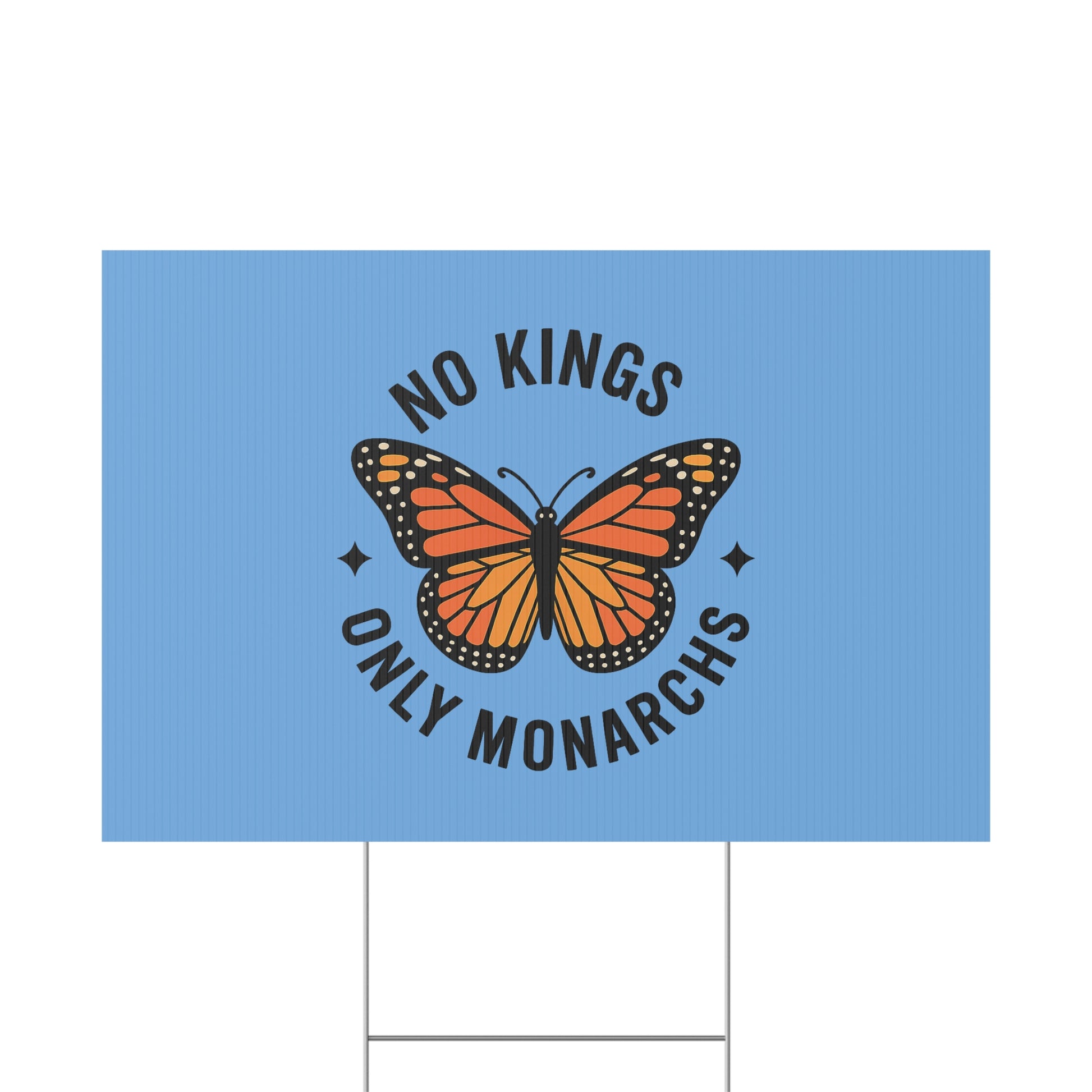 Make a statement with the "no kings only monarchs" yard sign protest with style. Perfect for outdoor use, this durable plastic sign comes with a metal stake for stability. Proudly display this USA-made sign in your garden or lawn. Ideal for activists, protesters, and those looking to make a bold statement.