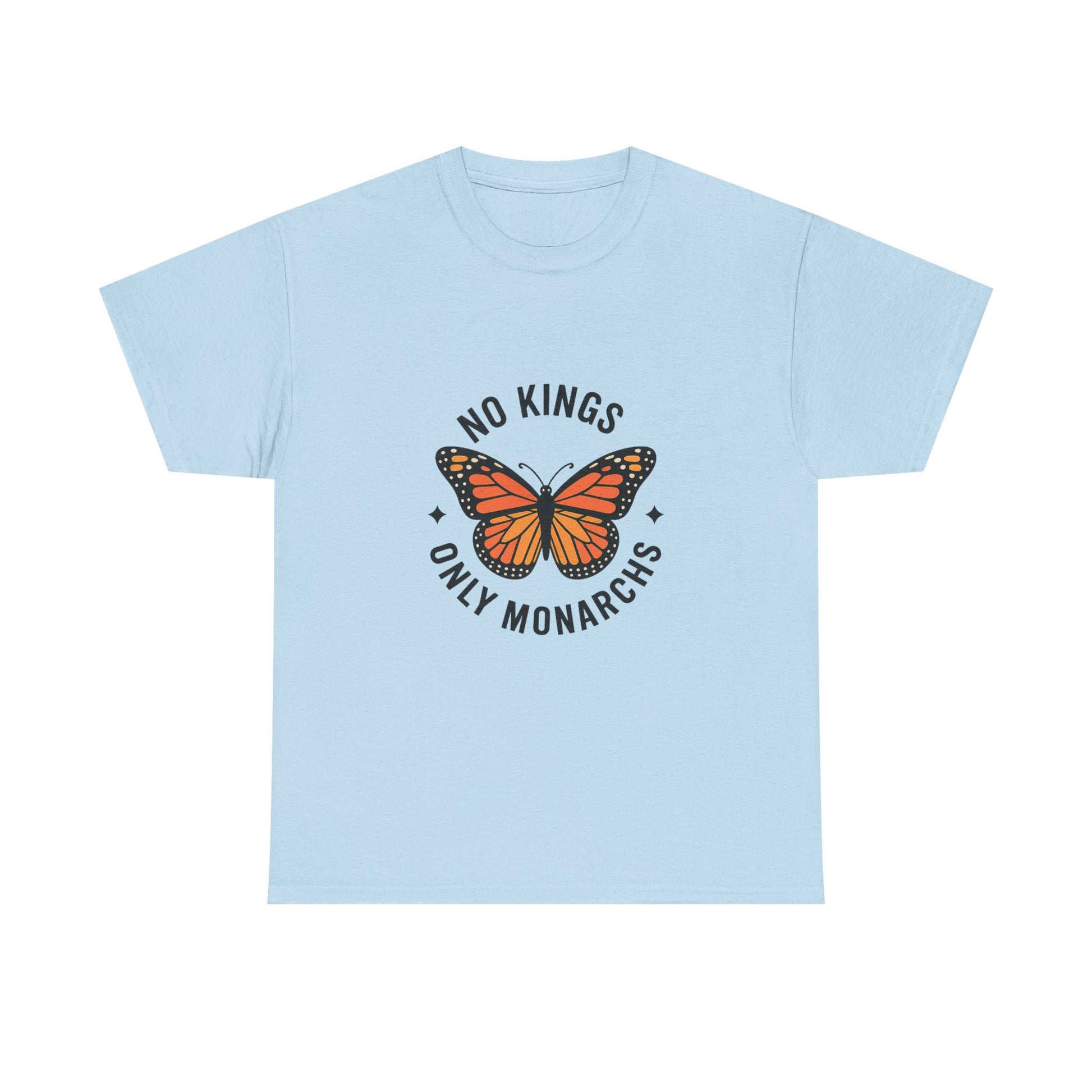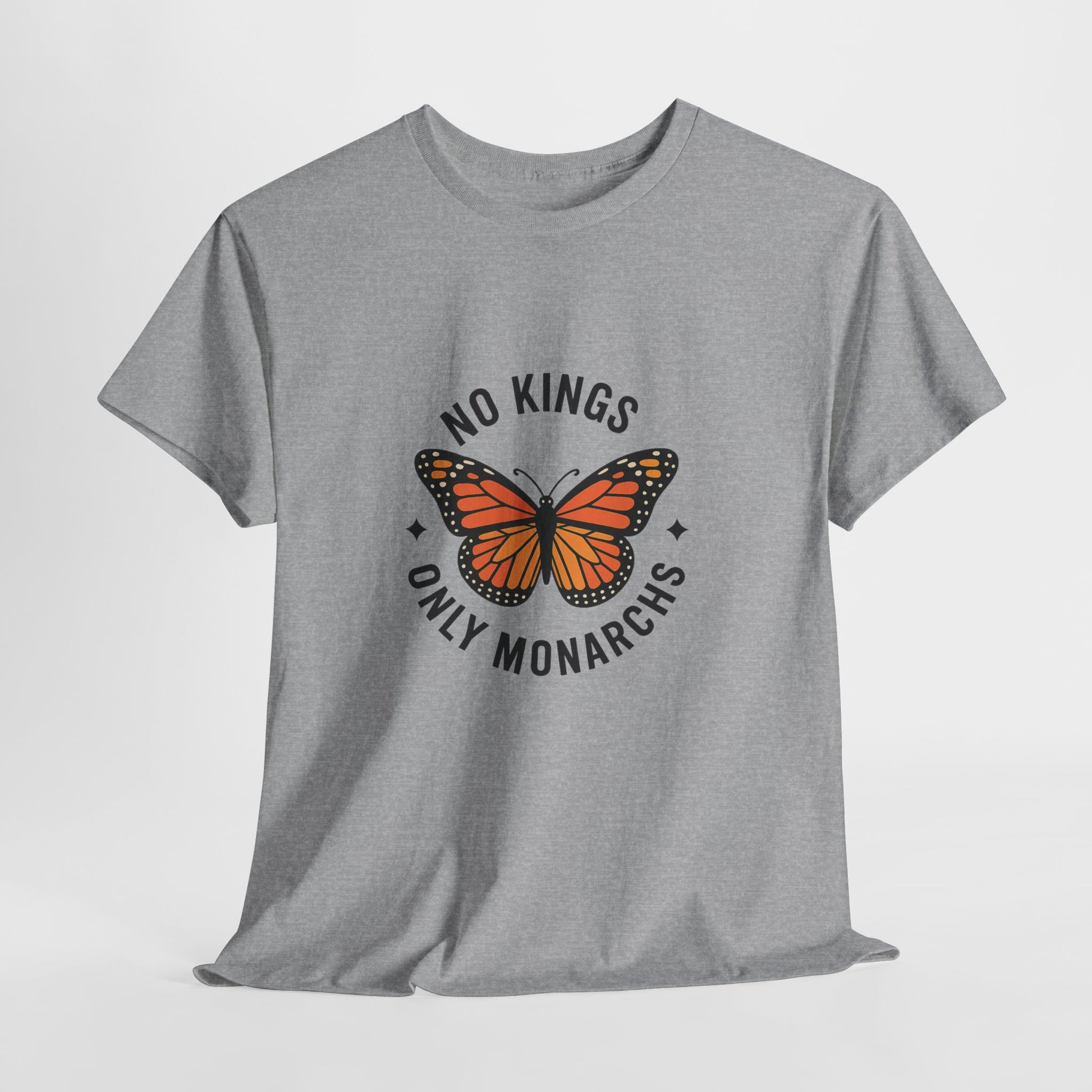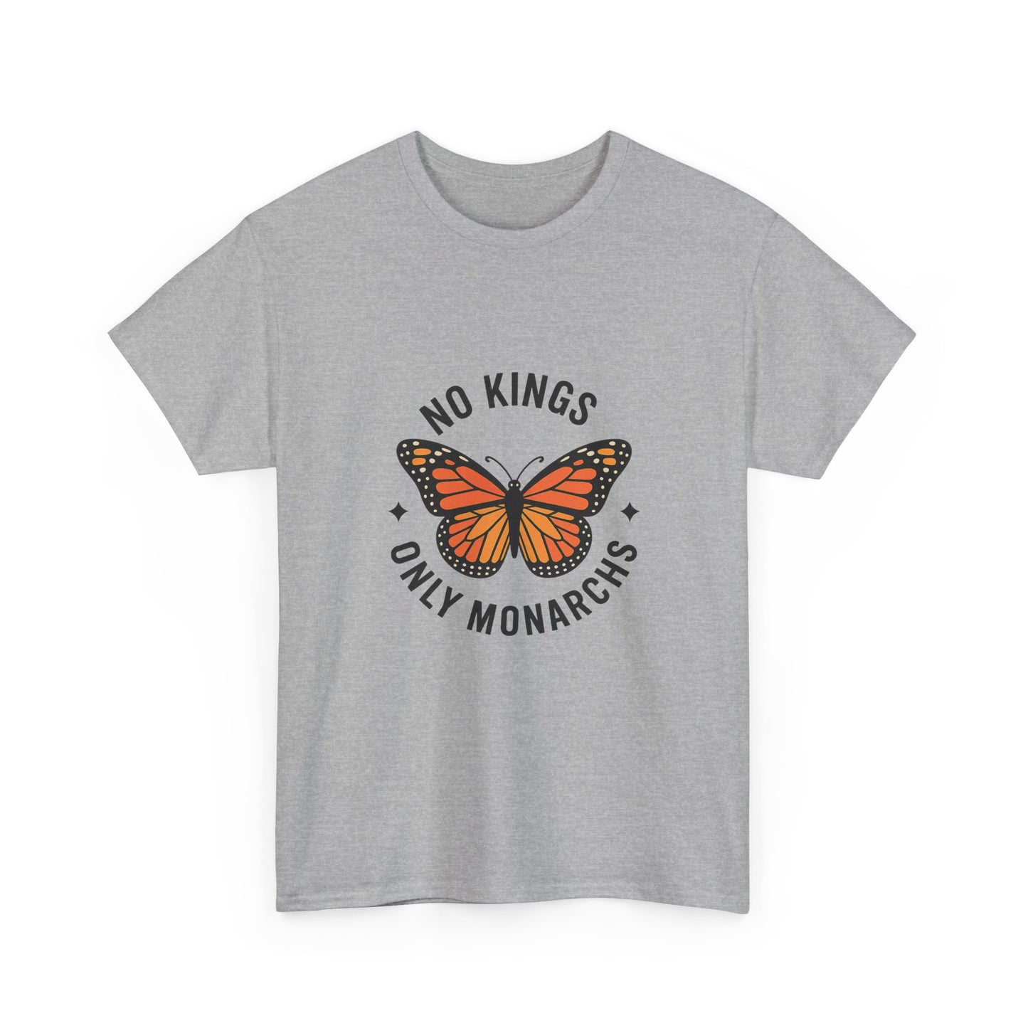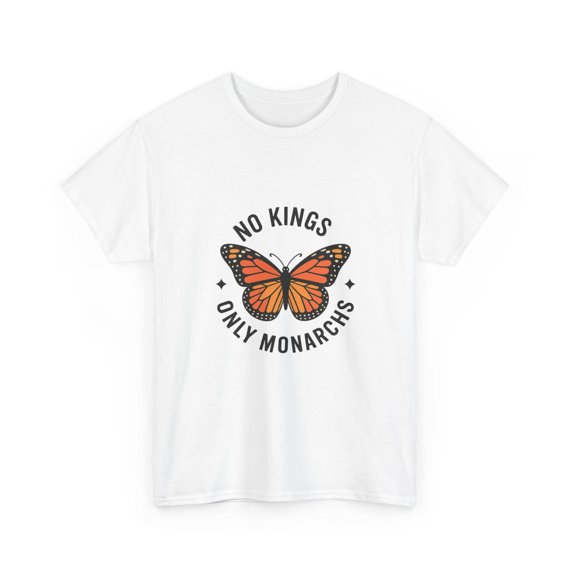 This No kings Only Monarchs t-shirt is perfect for nature lovers and protesters. It gives off a rebellious and free-spirited vibe, making it ideal for those who want to make a statement with their clothing. This tee is relevant for Earth Day, protest marches, and casual outings.