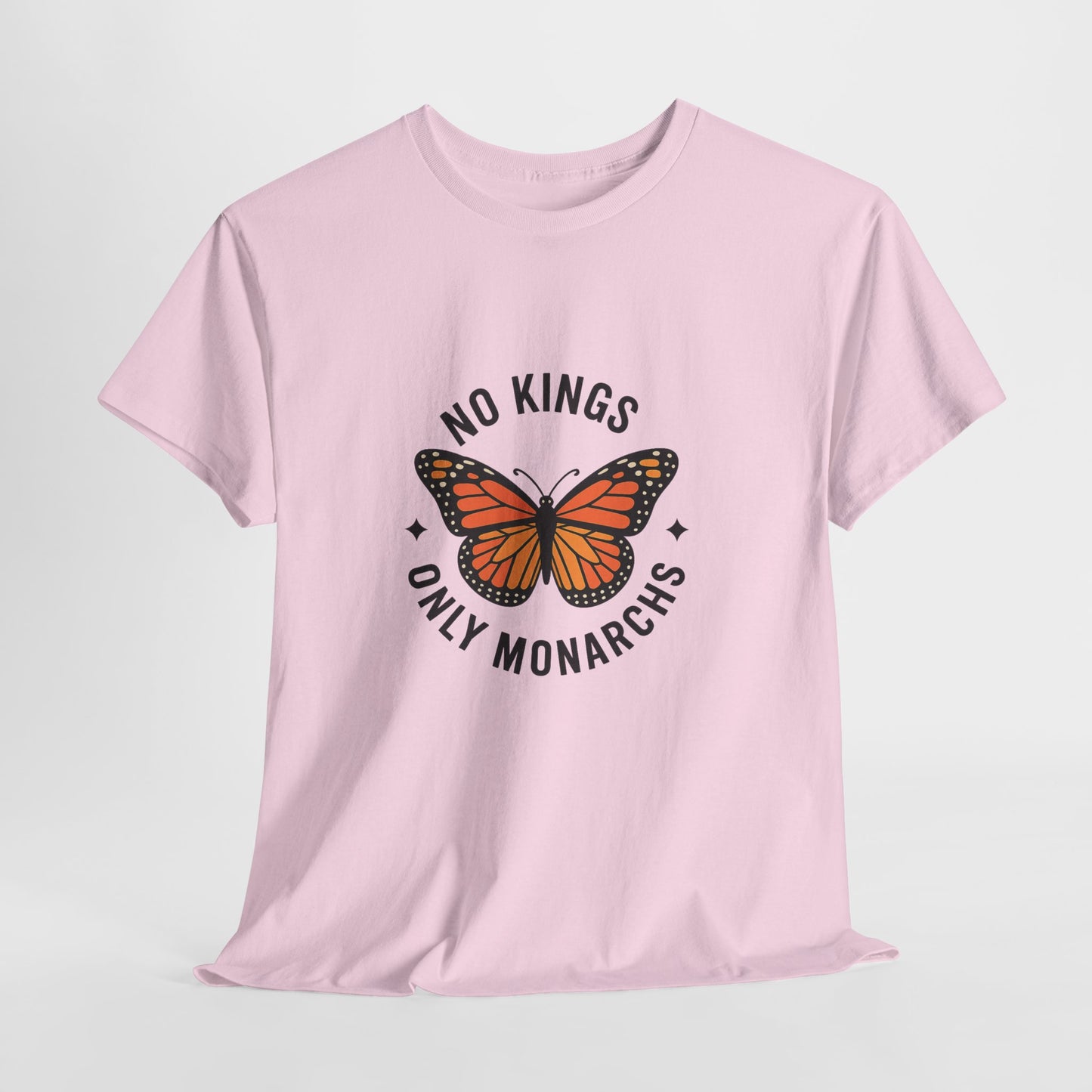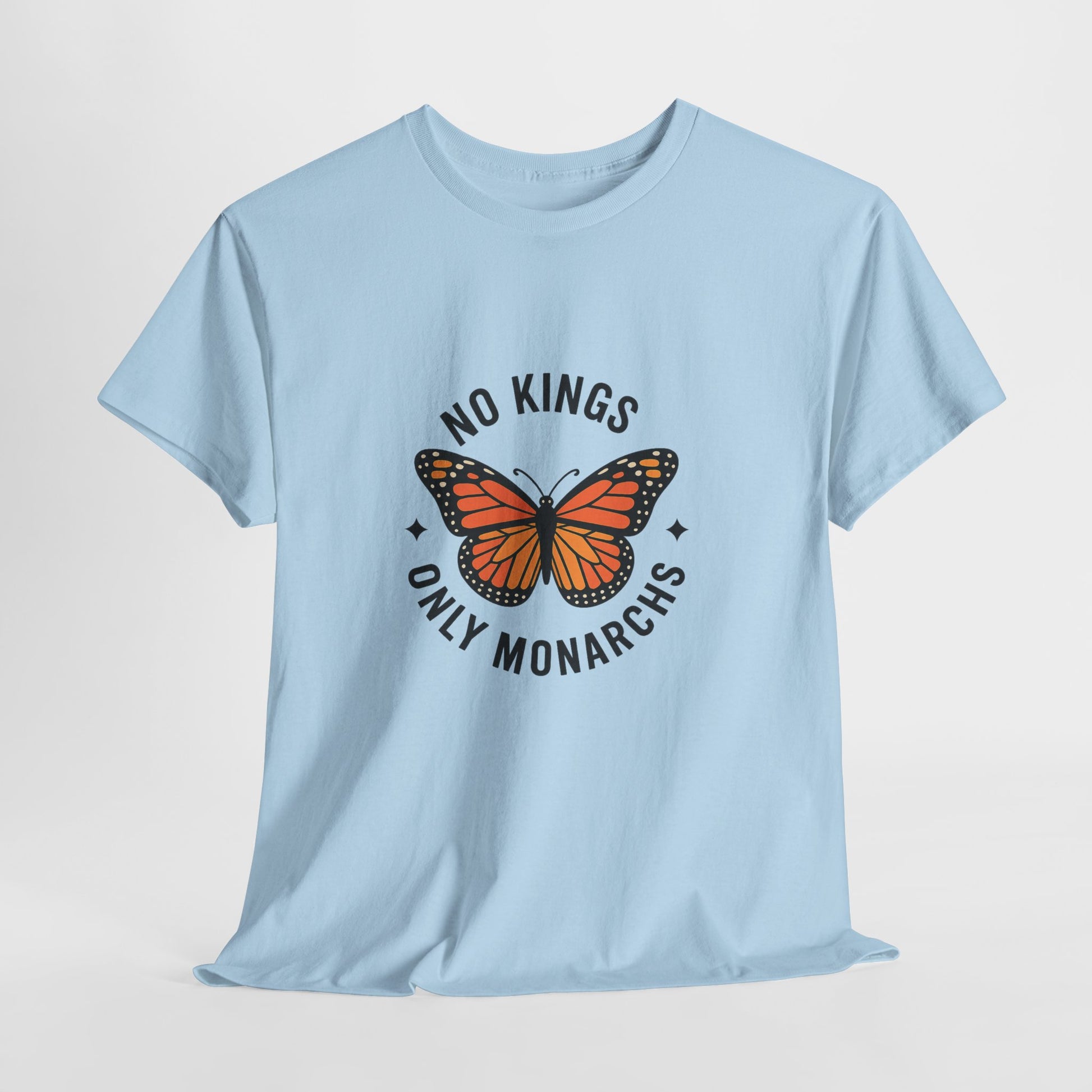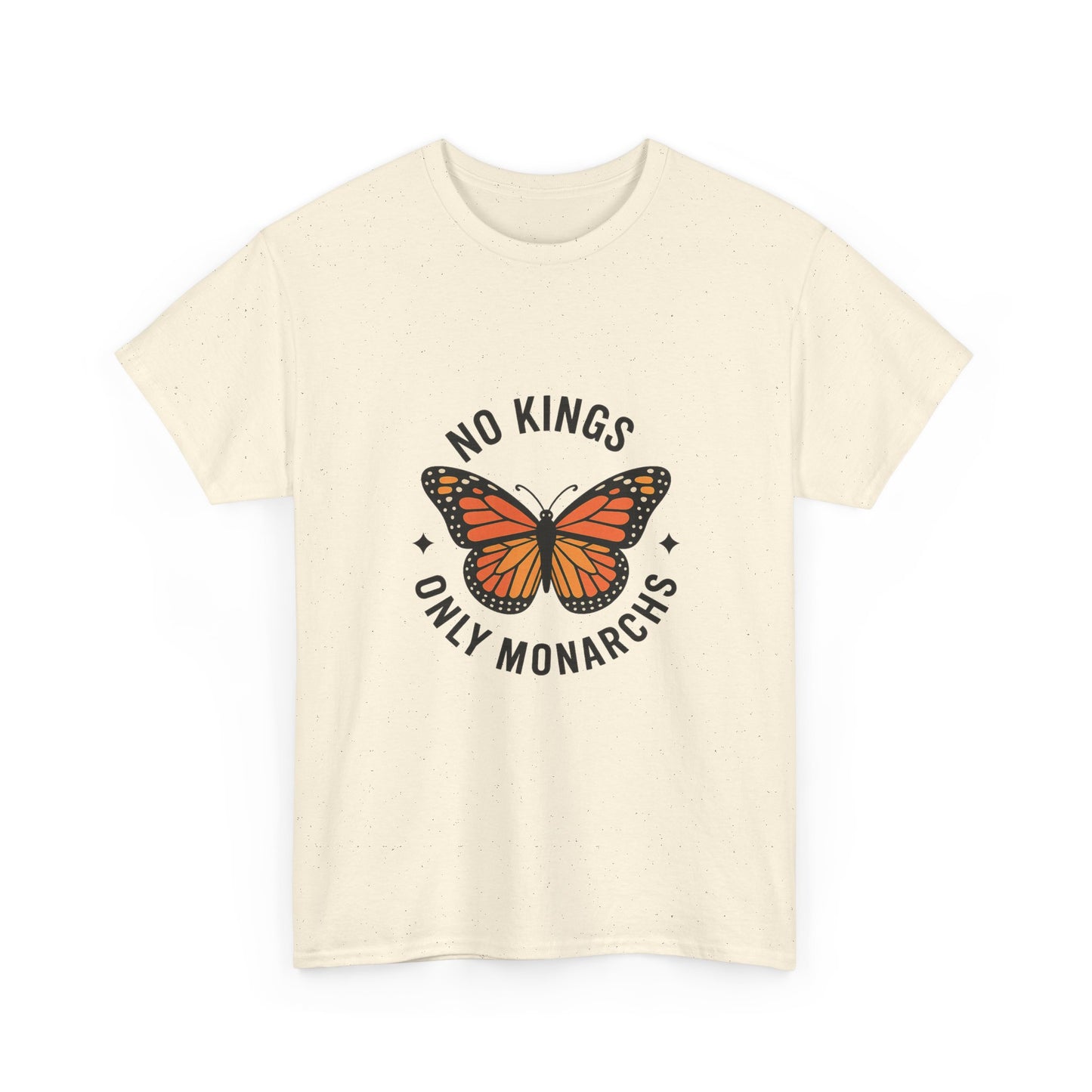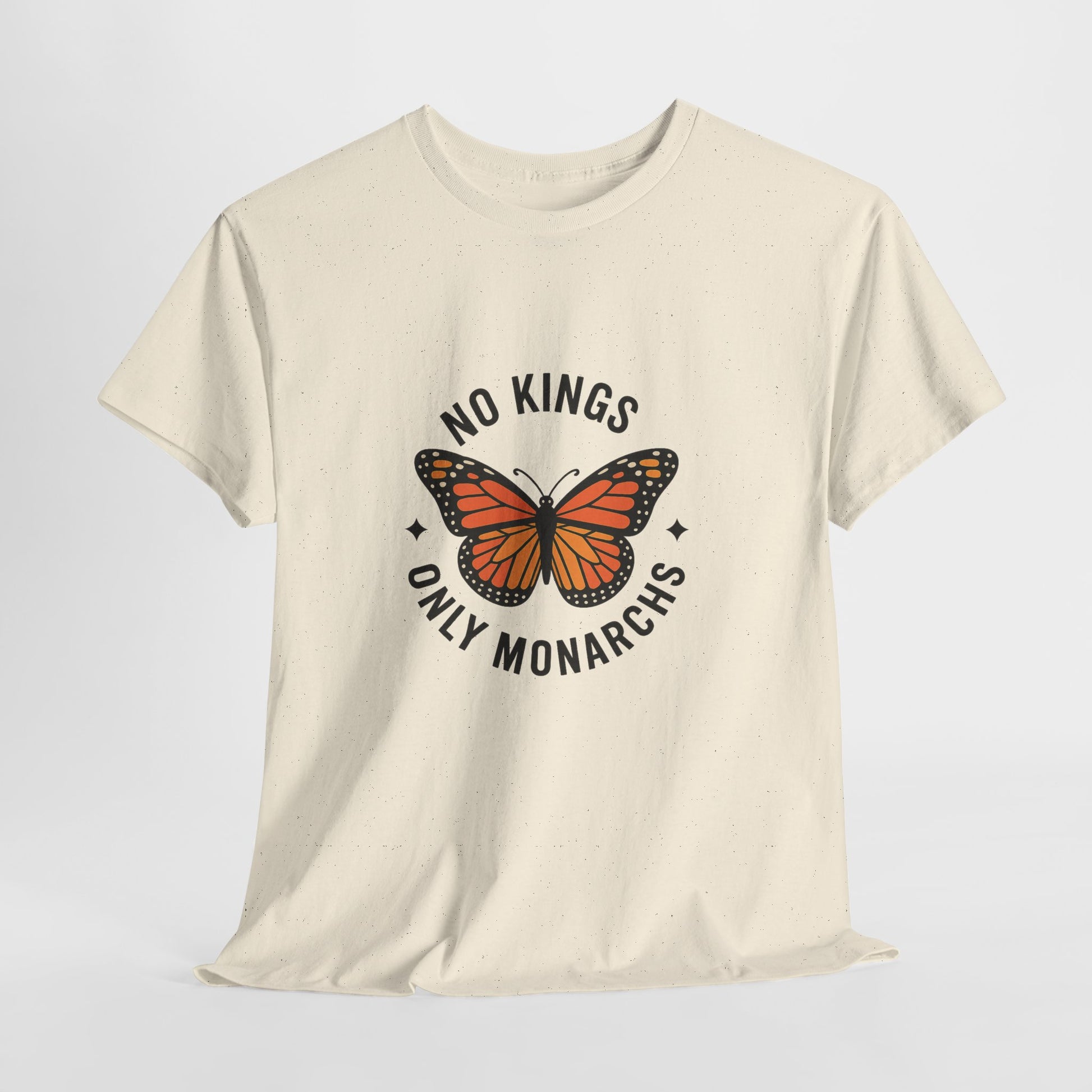 This No kings Only Monarchs t-shirt is perfect for nature lovers and protesters. It gives off a rebellious and free-spirited vibe, making it ideal for those who want to make a statement with their clothing. This tee is relevant for Earth Day, protest marches, and casual outings.