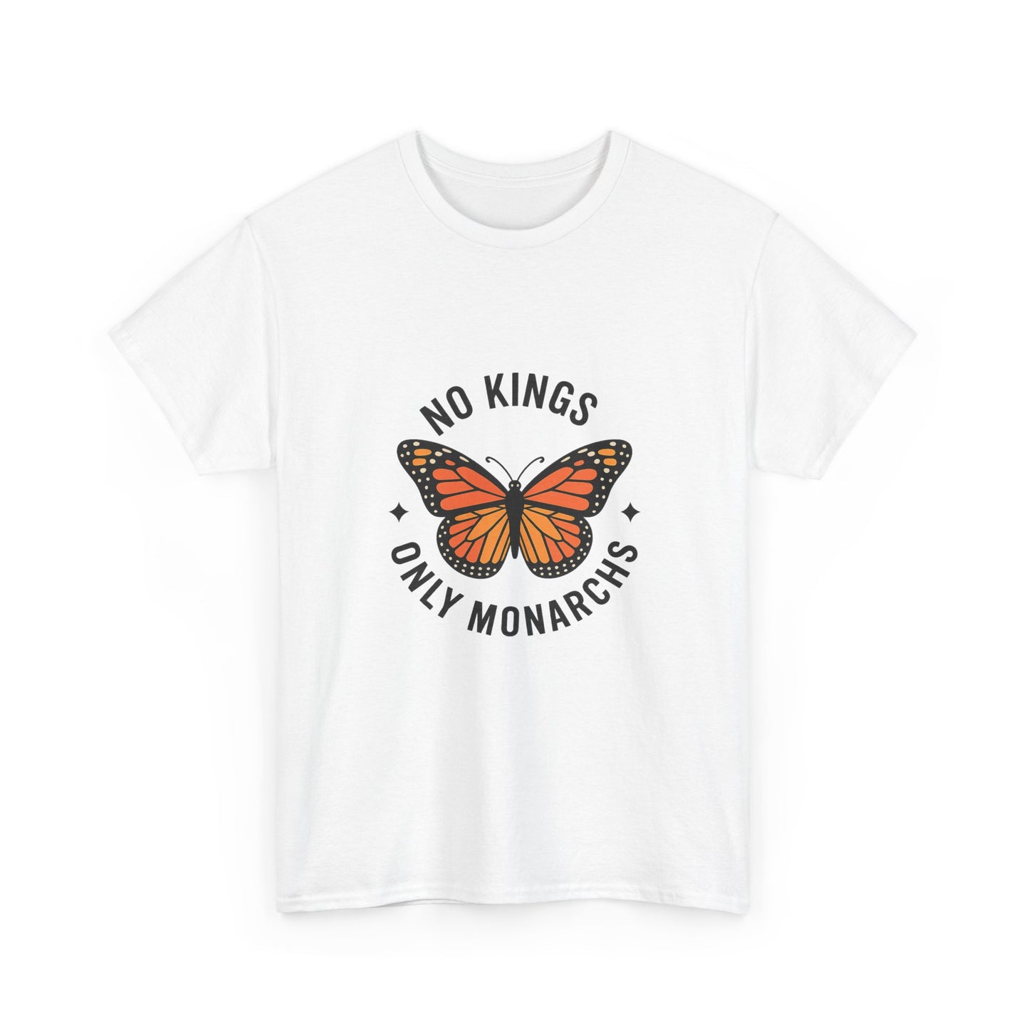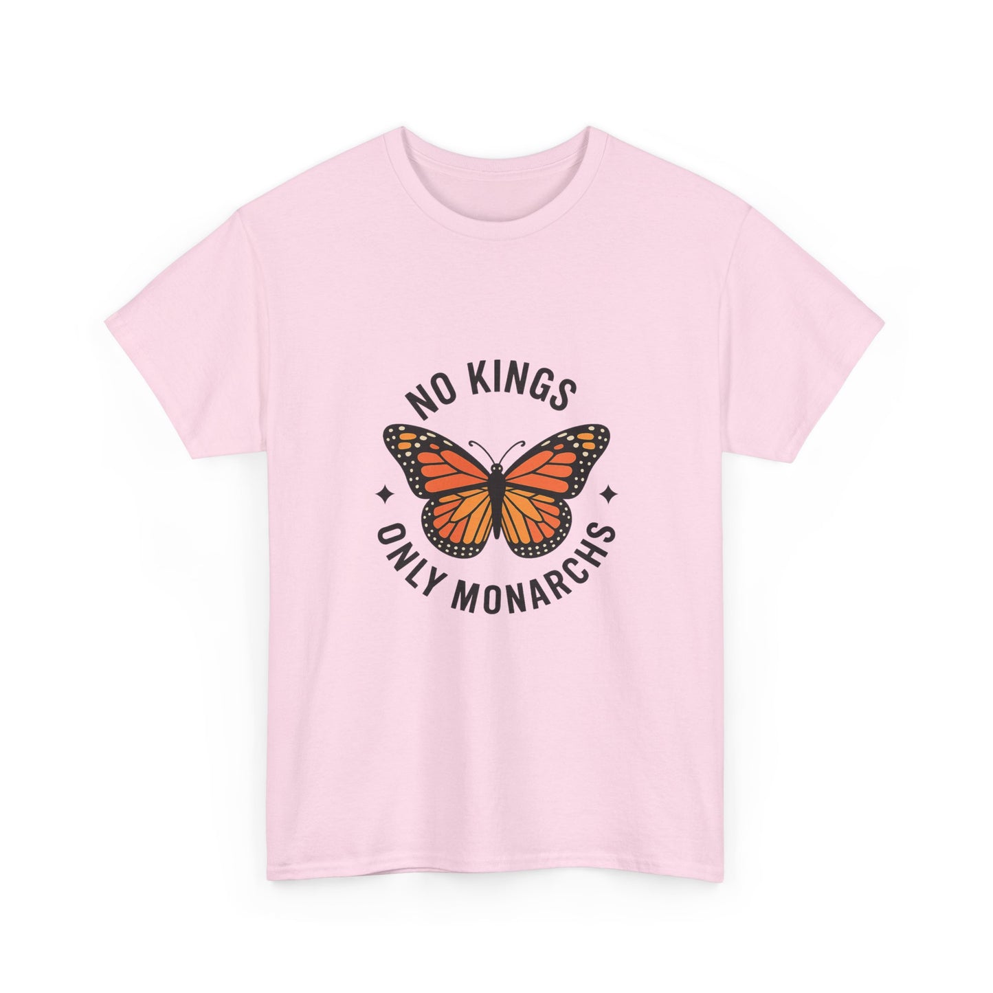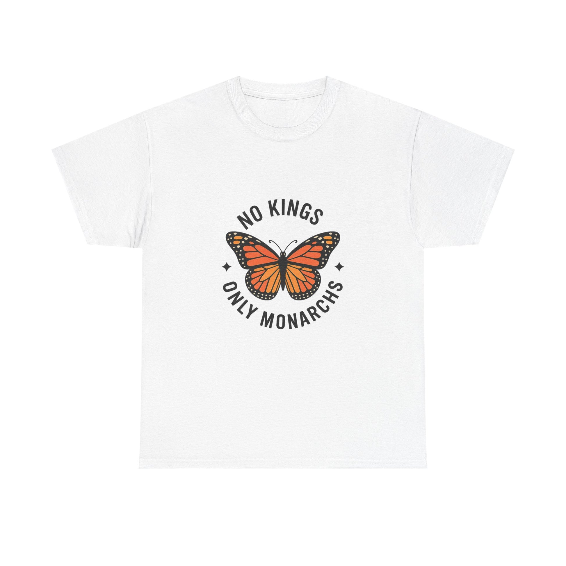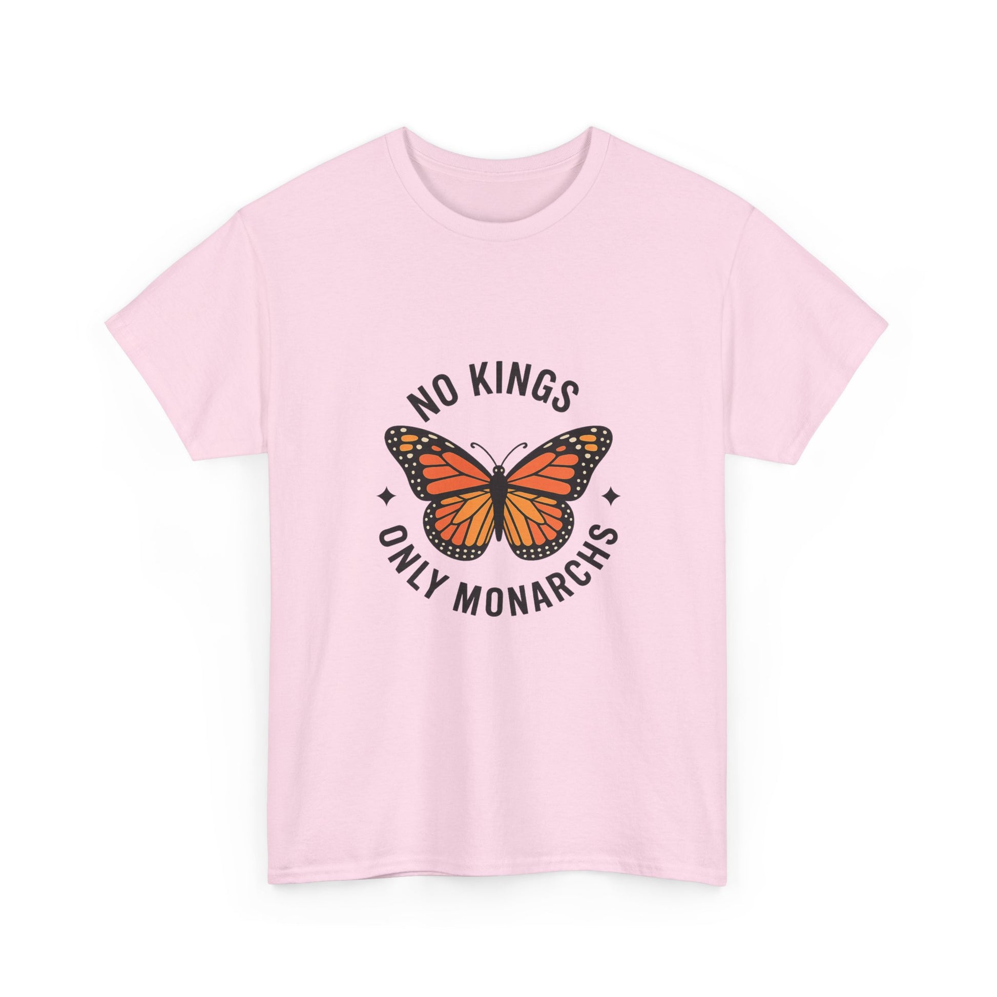 This No kings Only Monarchs t-shirt is perfect for nature lovers and protesters. It gives off a rebellious and free-spirited vibe, making it ideal for those who want to make a statement with their clothing. This tee is relevant for Earth Day, protest marches, and casual outings.