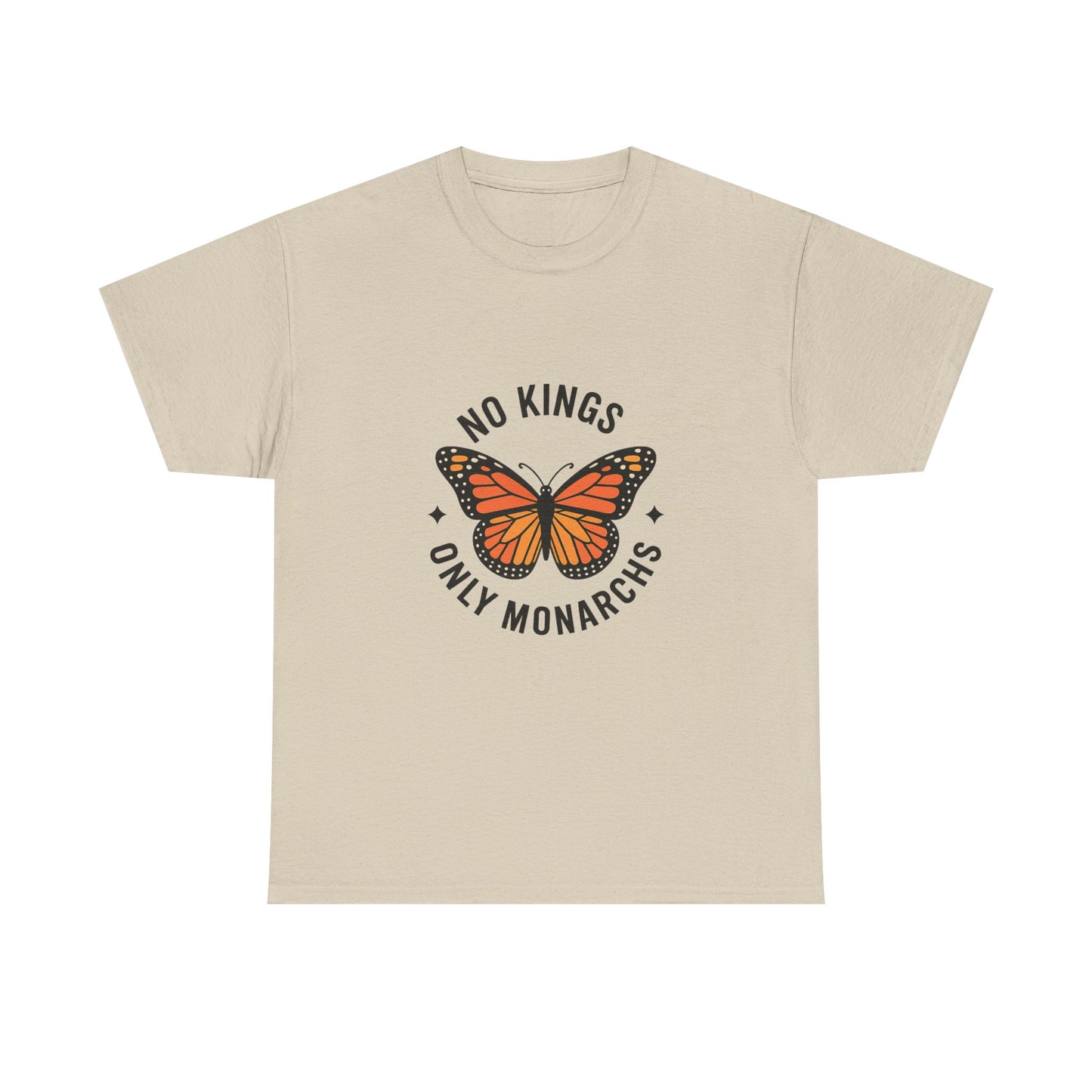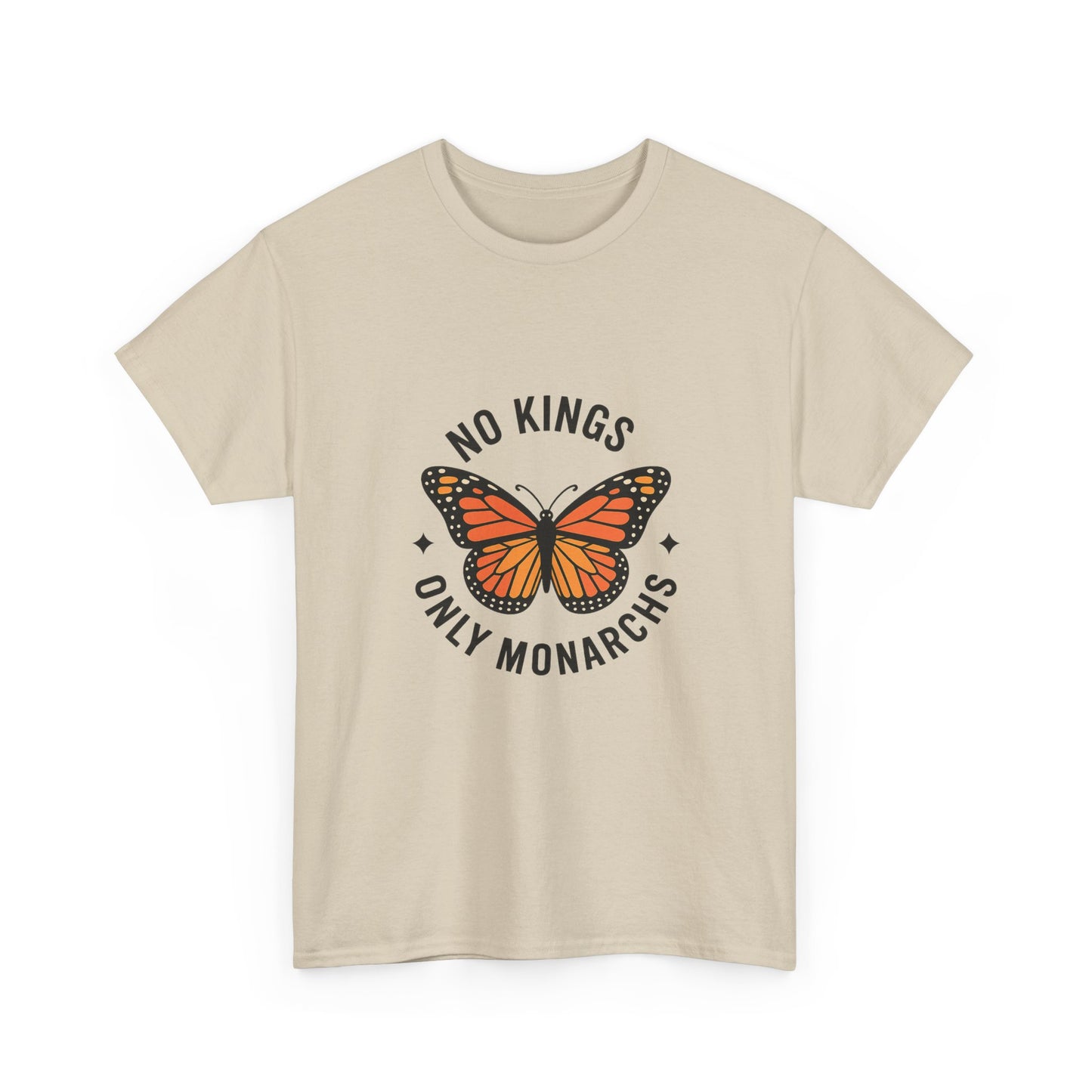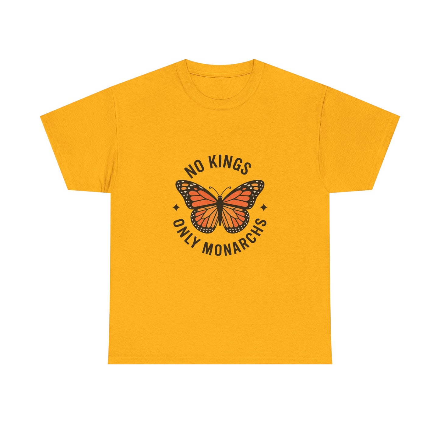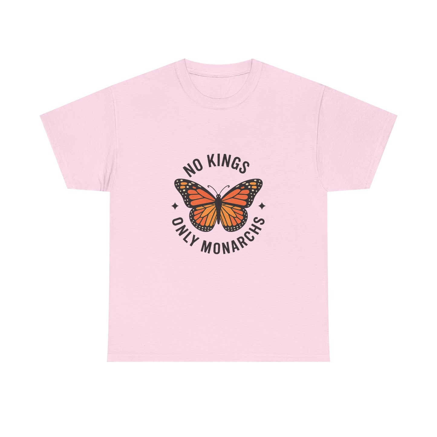 This No kings Only Monarchs t-shirt is perfect for nature lovers and protesters. It gives off a rebellious and free-spirited vibe, making it ideal for those who want to make a statement with their clothing. This tee is relevant for Earth Day, protest marches, and casual outings.
