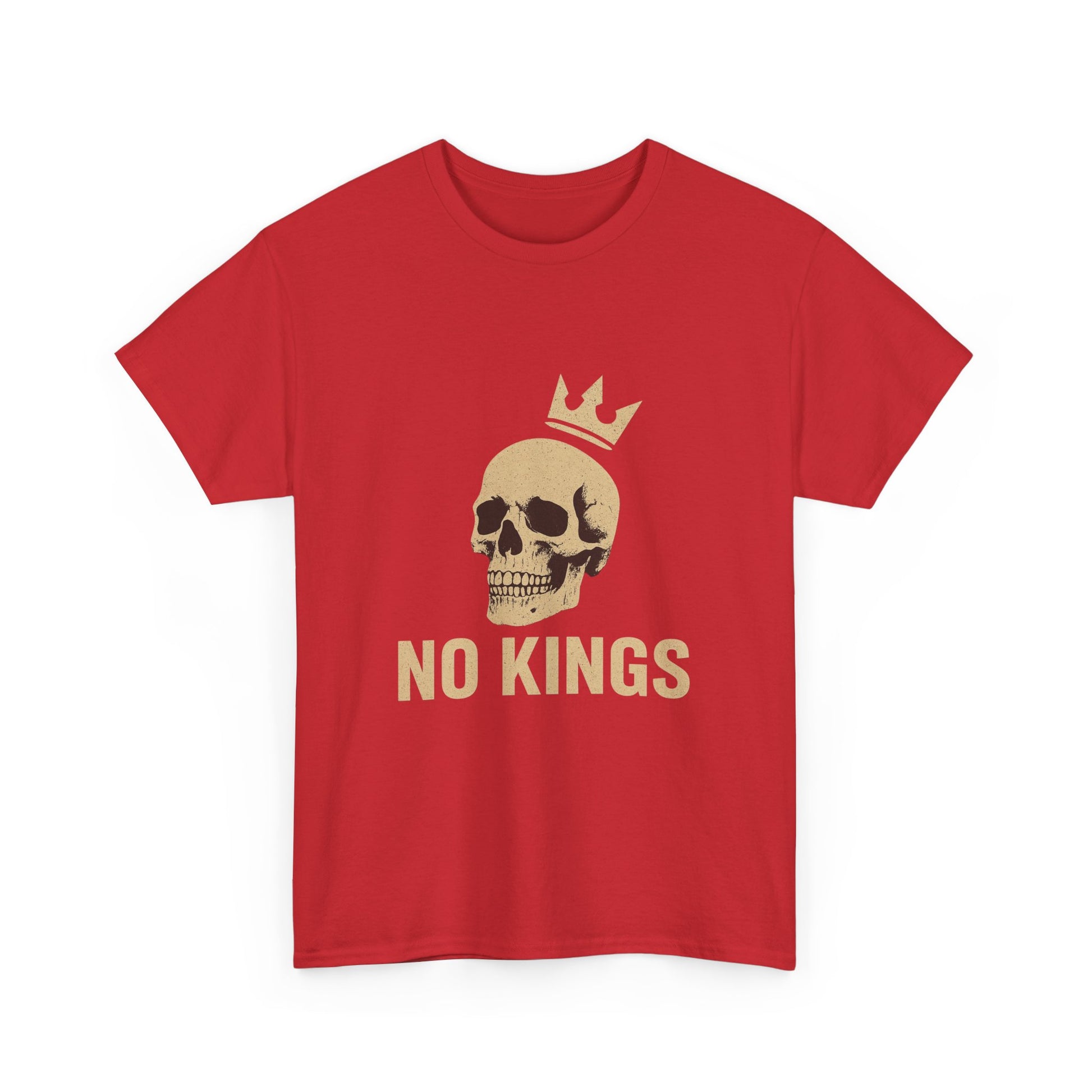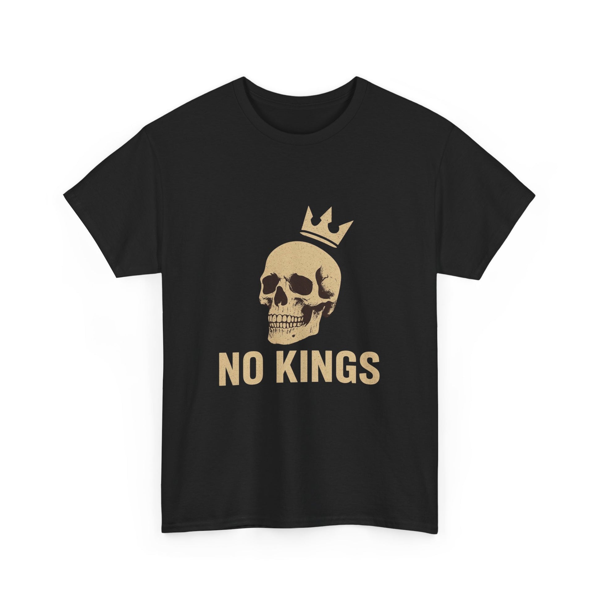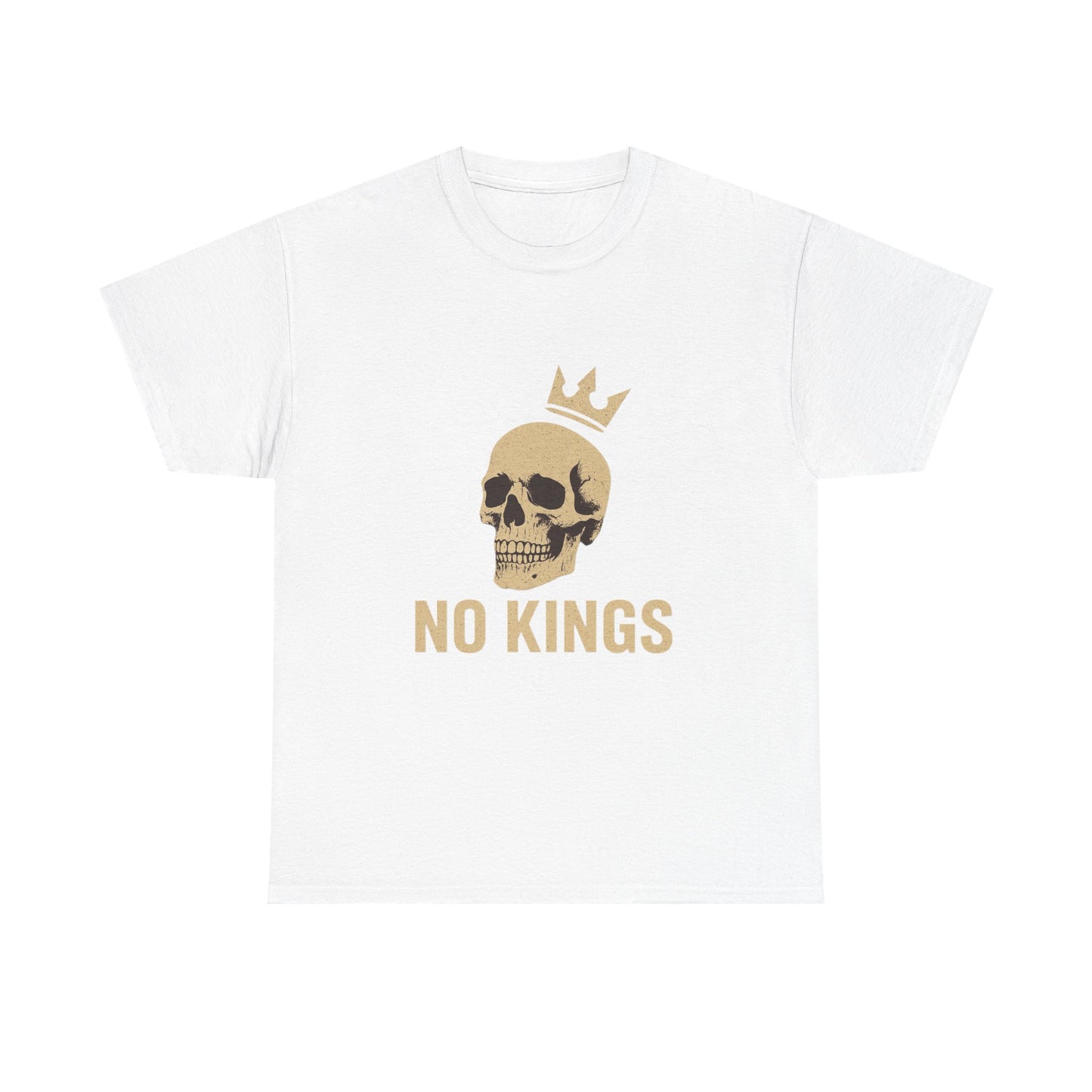This 'No kings' tee exudes a rebellious and edgy vibe, perfect for individuals who want to make a statement with their clothing. It can be worn by adults who appreciate strong and smooth fabric, ideal for printing. Suitable for casual wear or to showcase a bold style during events like protests or social gatherings.