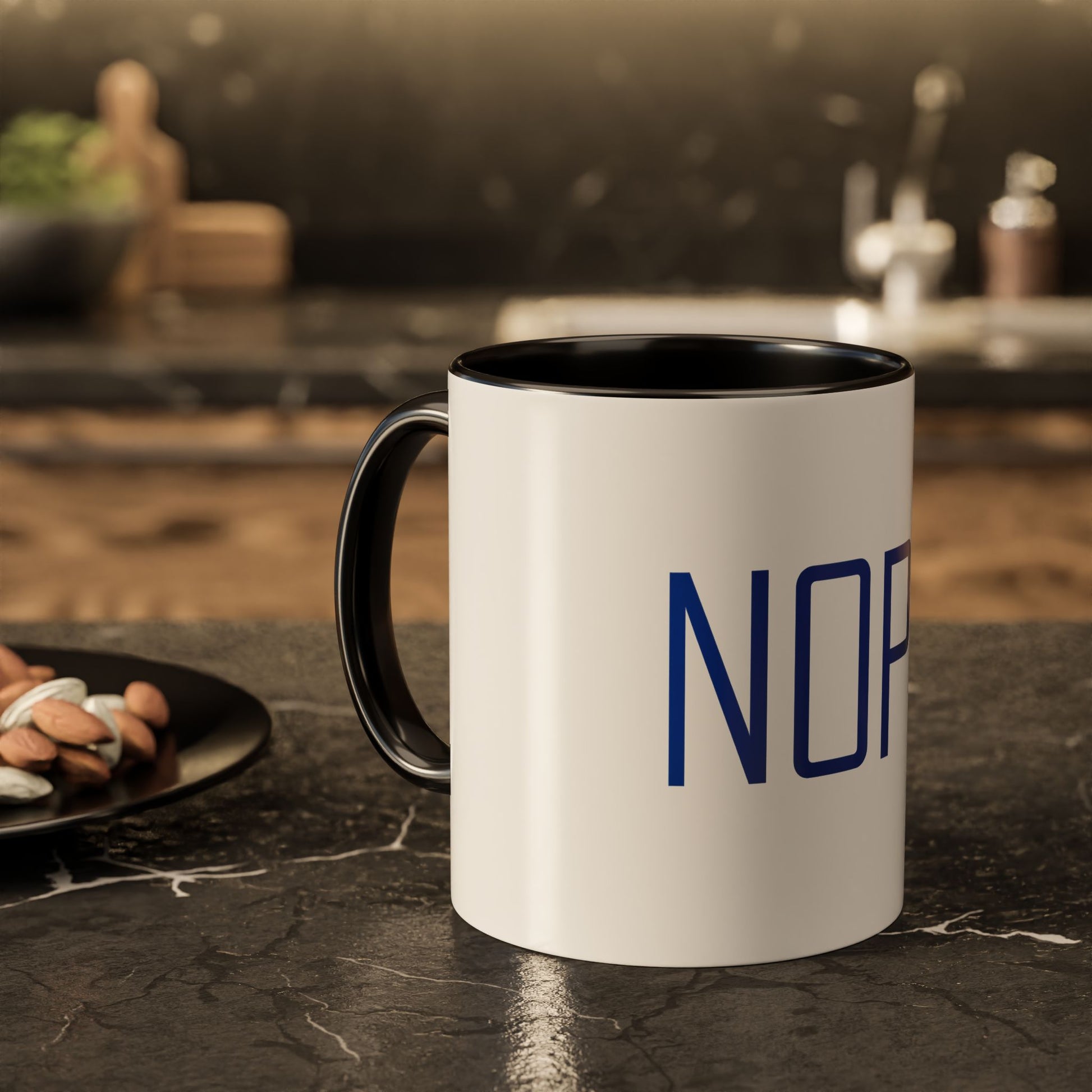 Start your day with defiance. The NOPE Crown Mug flips tradition on its head — a sleek, bold reminder that you answer to no one. Perfect for coffee, tea, or revolution. Available in 12 color options, these mugs hold 11oz or 15oz of your favorite pick-me-up juice and come with a colored handle and interior. The glossy finish adds a classy touch that perfectly complements the high-fidelity artwork print.