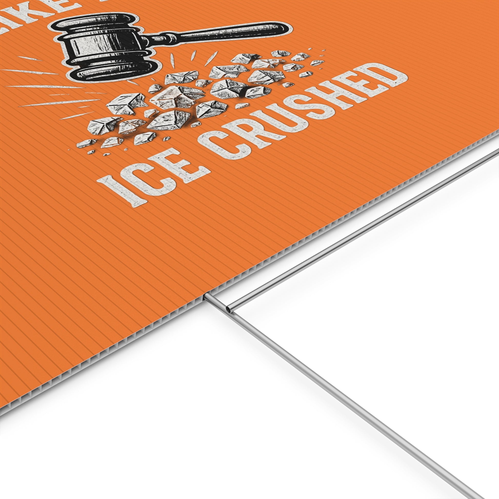 This ICE protest yard sign is the perfect way to make a statement in your yard. Made from durable plastic with a matte finish, this yard sign is ideal for outdoor use. It comes with a metal stake for easy installation and can be displayed in portrait or landscape orientation. Show your support for a cause with this impactful yard sign, relevant for protests, demonstrations, and activism.