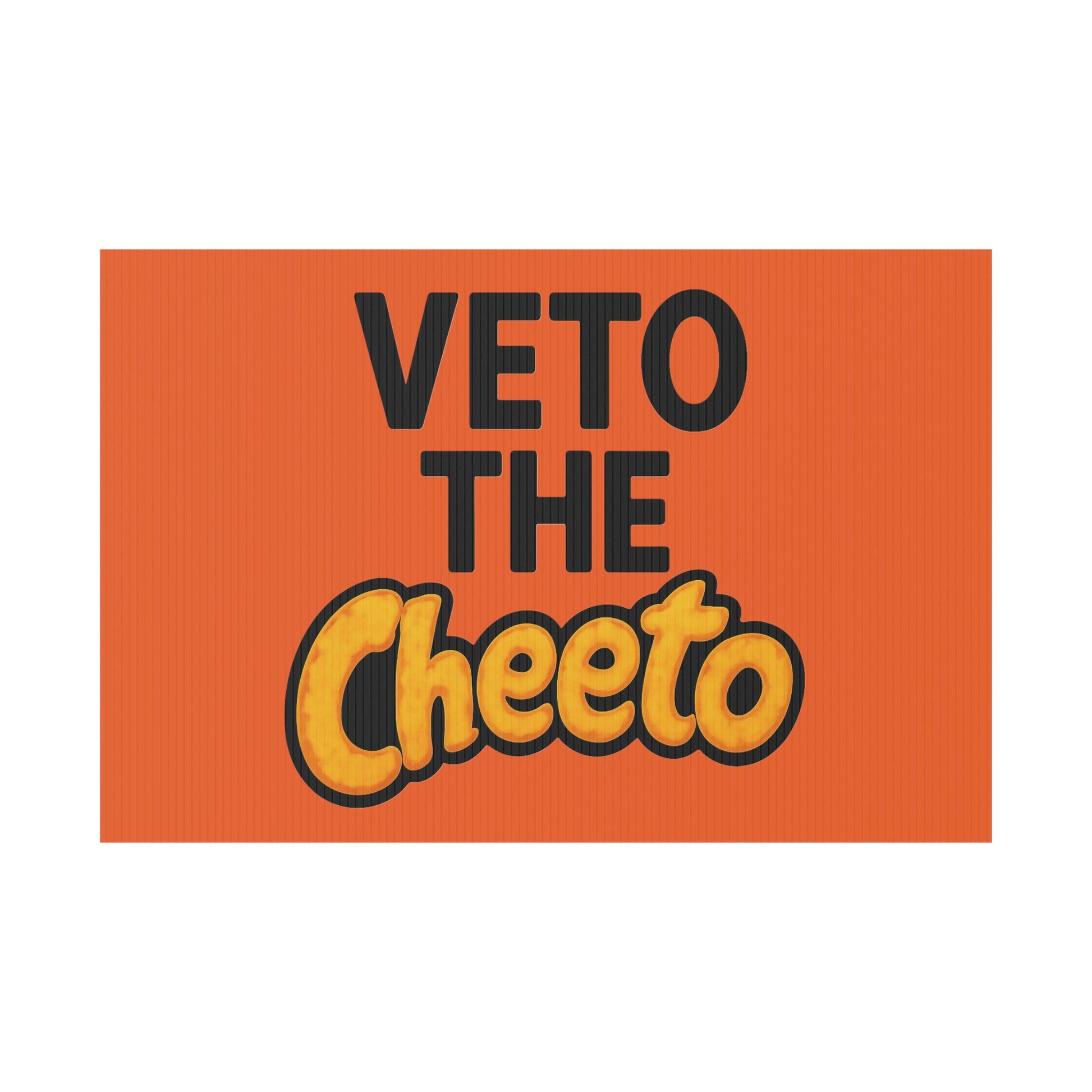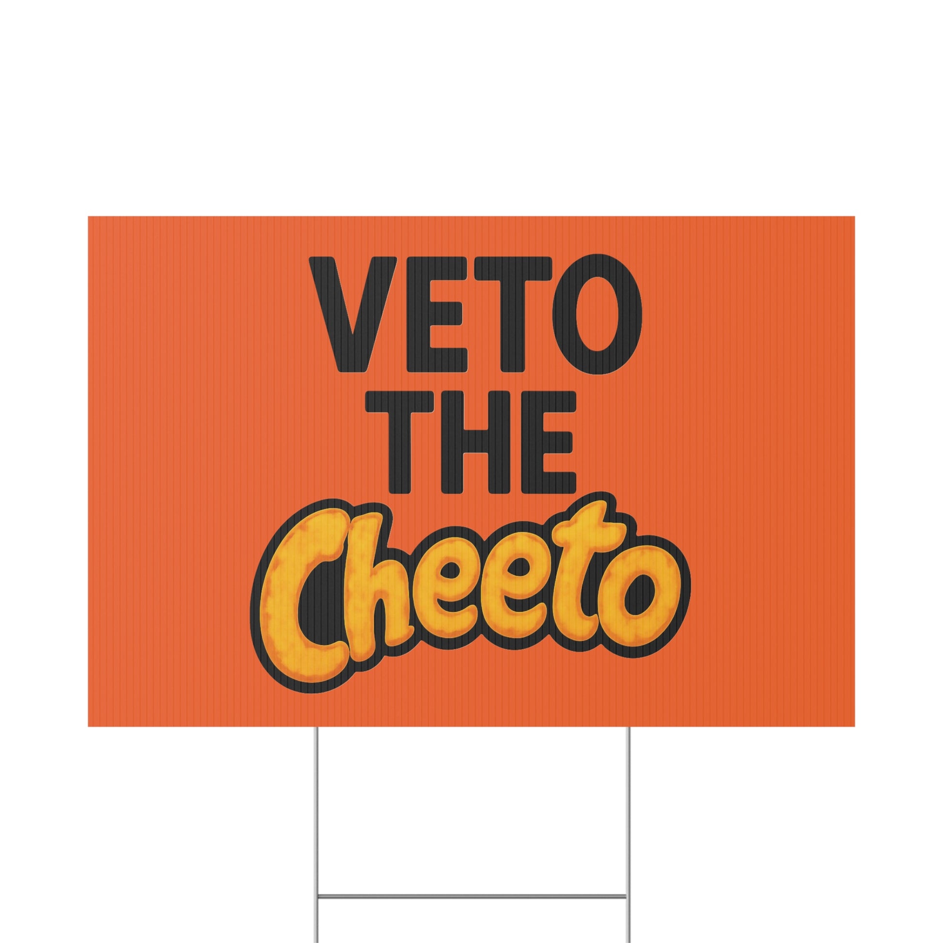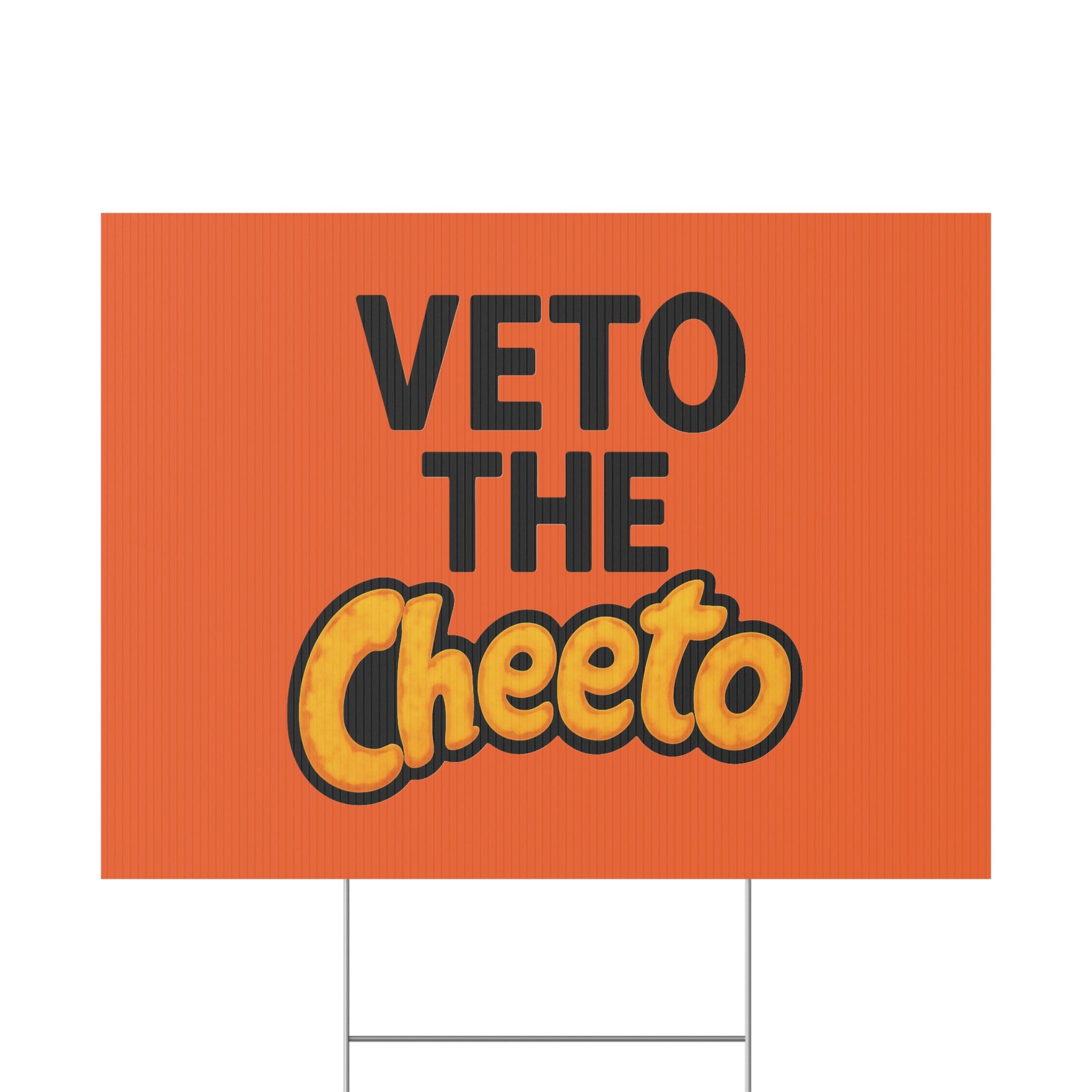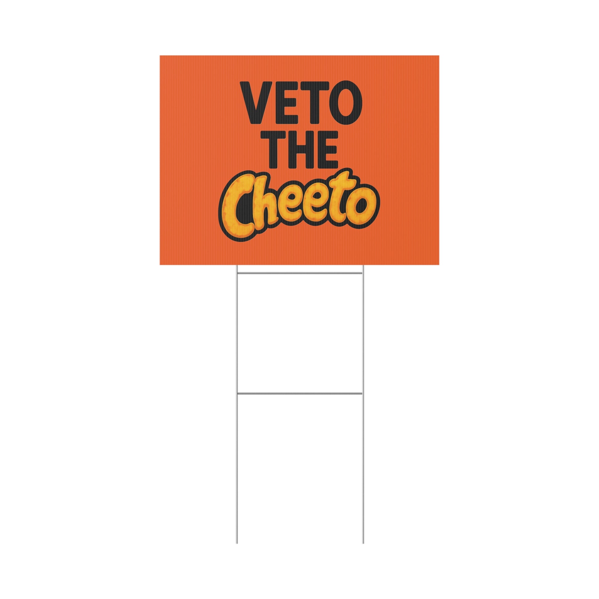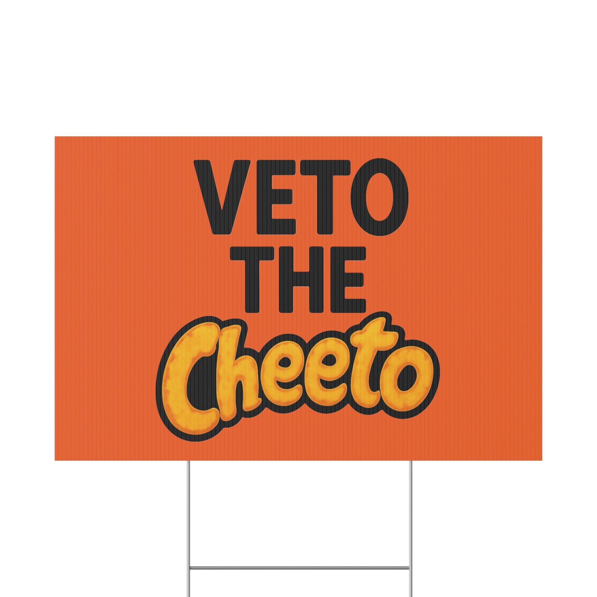 Make a statement in your yard with this Veto the Cheeto yard sign. Perfect for outdoor use, this durable plastic sign comes with an aluminum stake for stability. Show your personality and beliefs with this bold design, perfect for those who want to make a statement during elections, protests, or political gatherings.