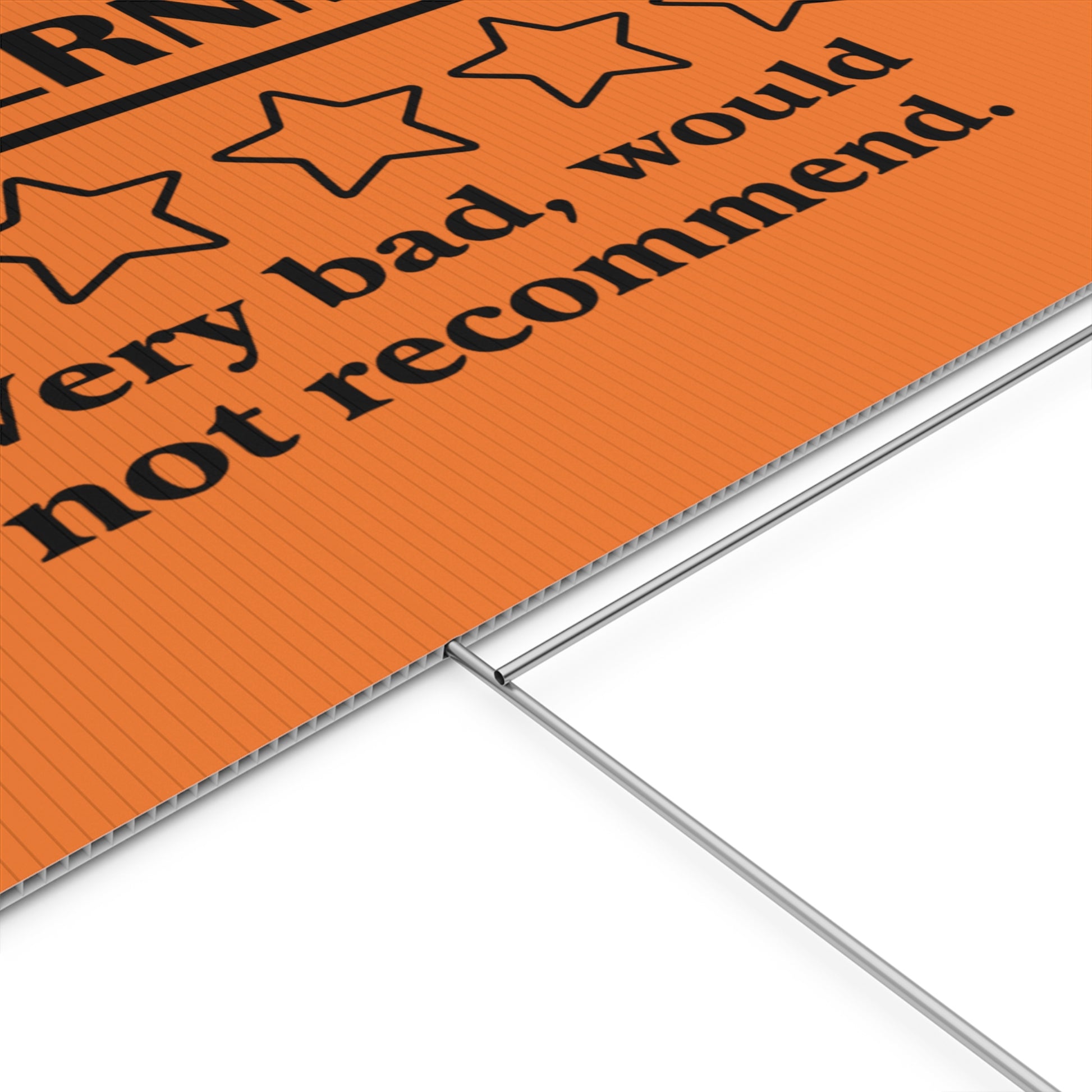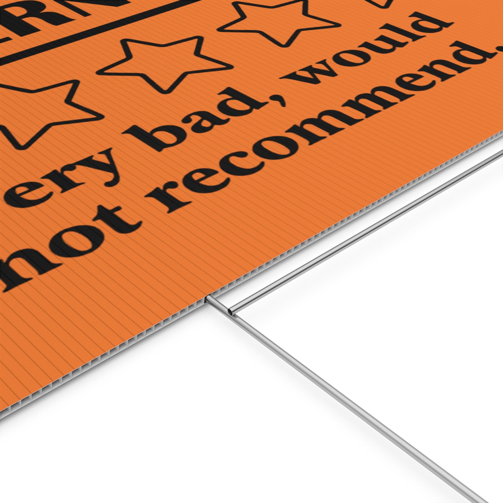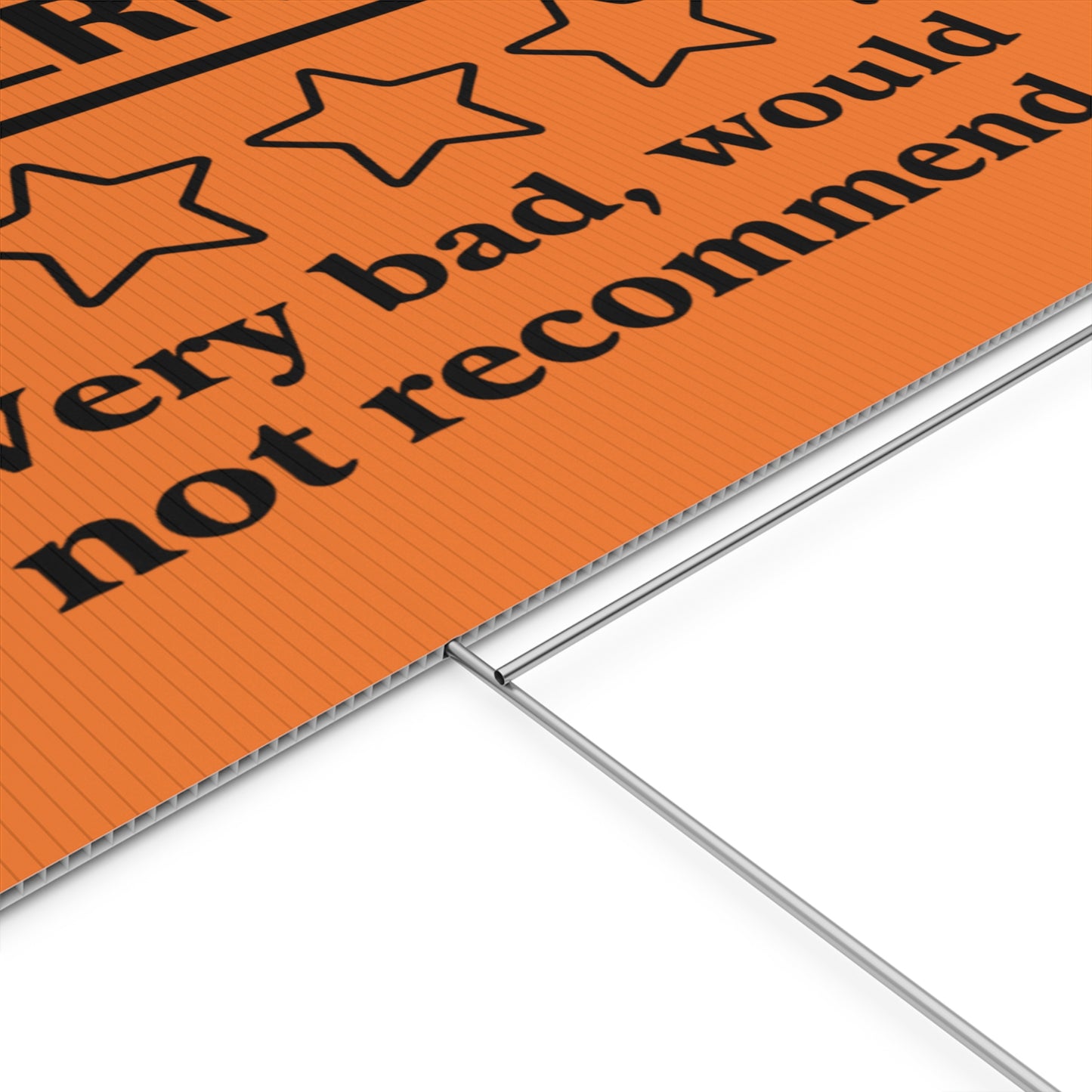 Orange Yard Sign - 1/5 Stars Would Not Recommend