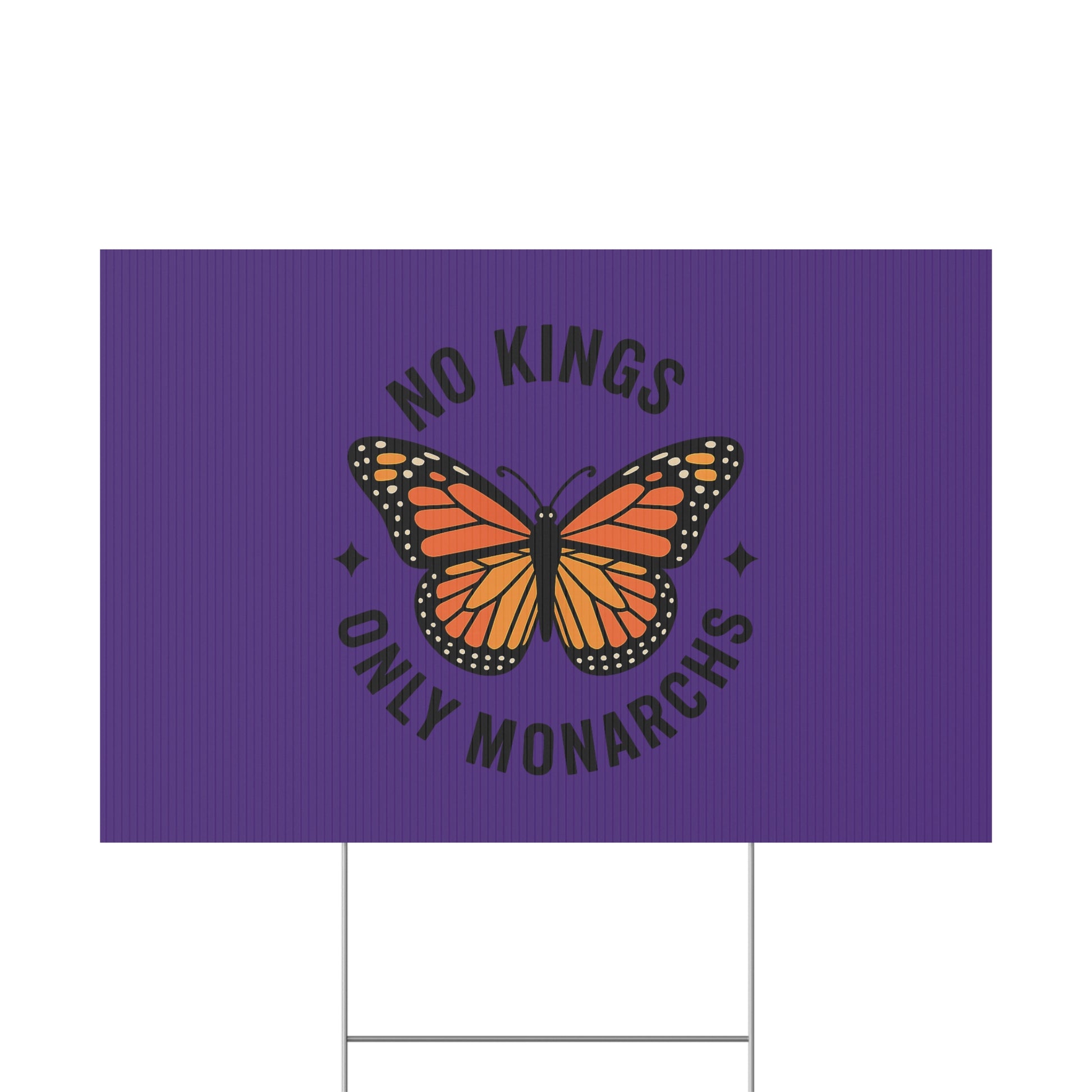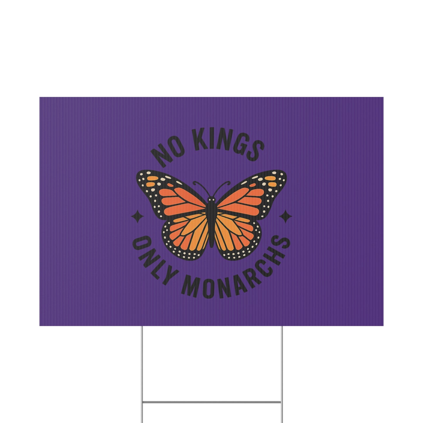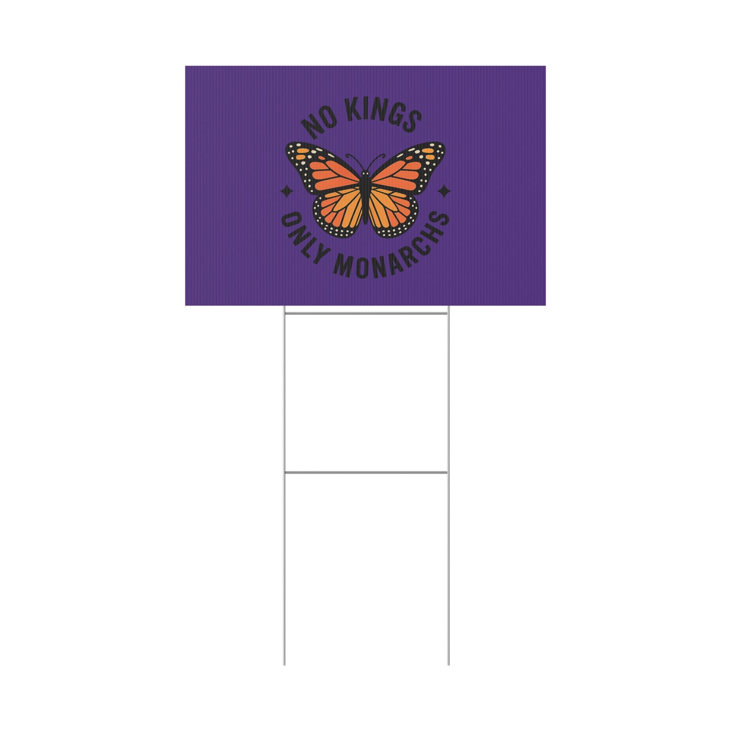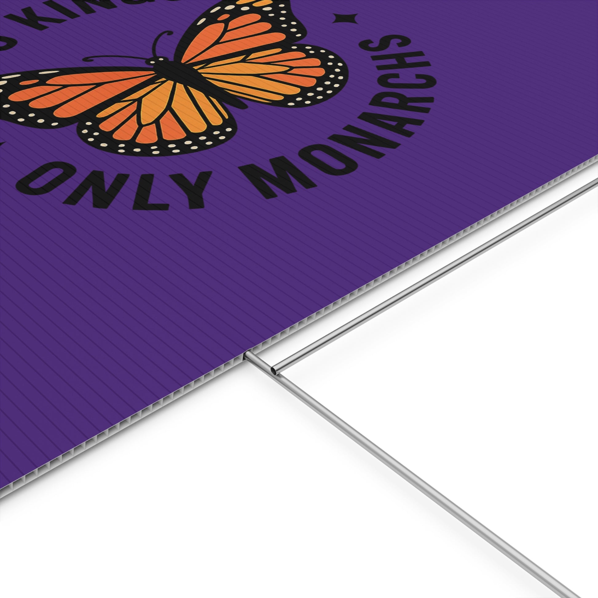 Make a statement with the "no kings only monarchs" yard sign protest with style. Perfect for outdoor use, this durable plastic sign comes with a metal stake for stability. Proudly display this USA-made sign in your garden or lawn. Ideal for activists, protesters, and those looking to make a bold statement.