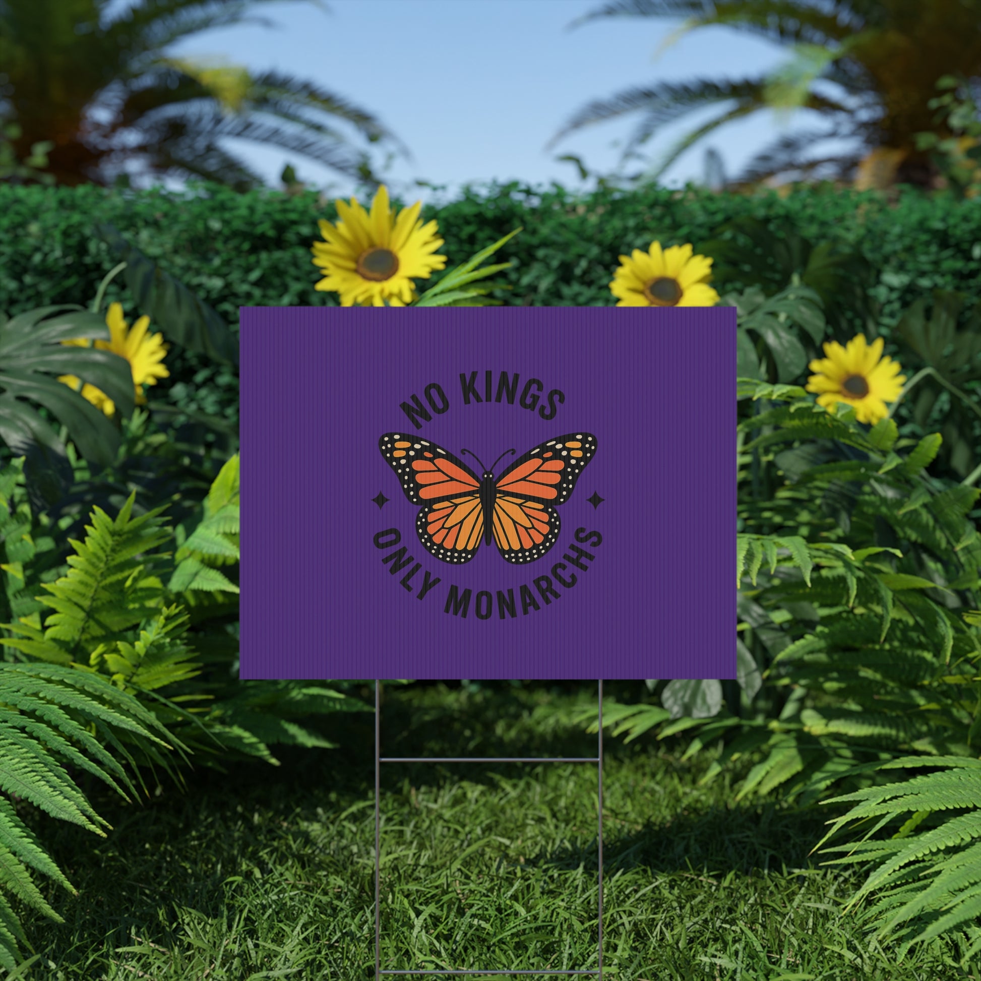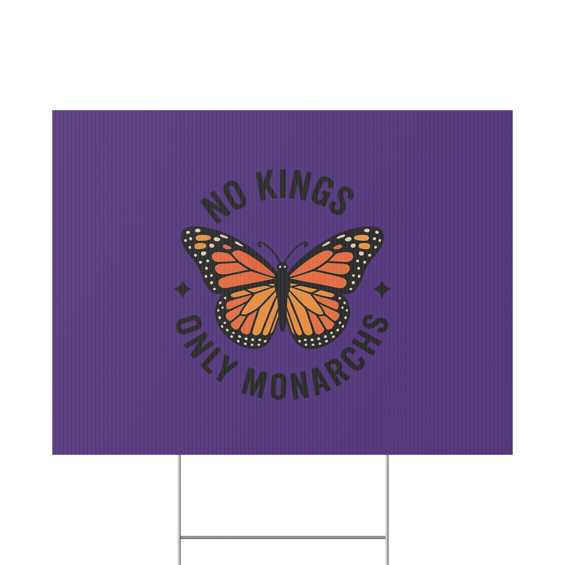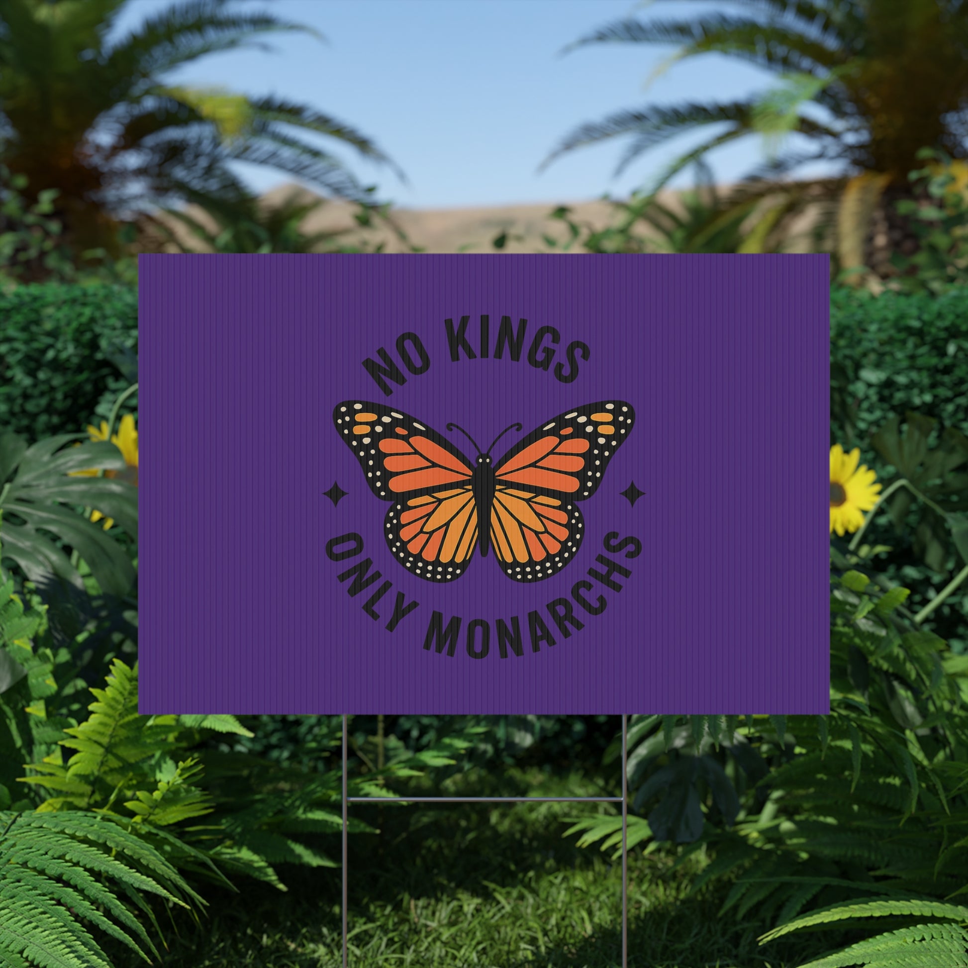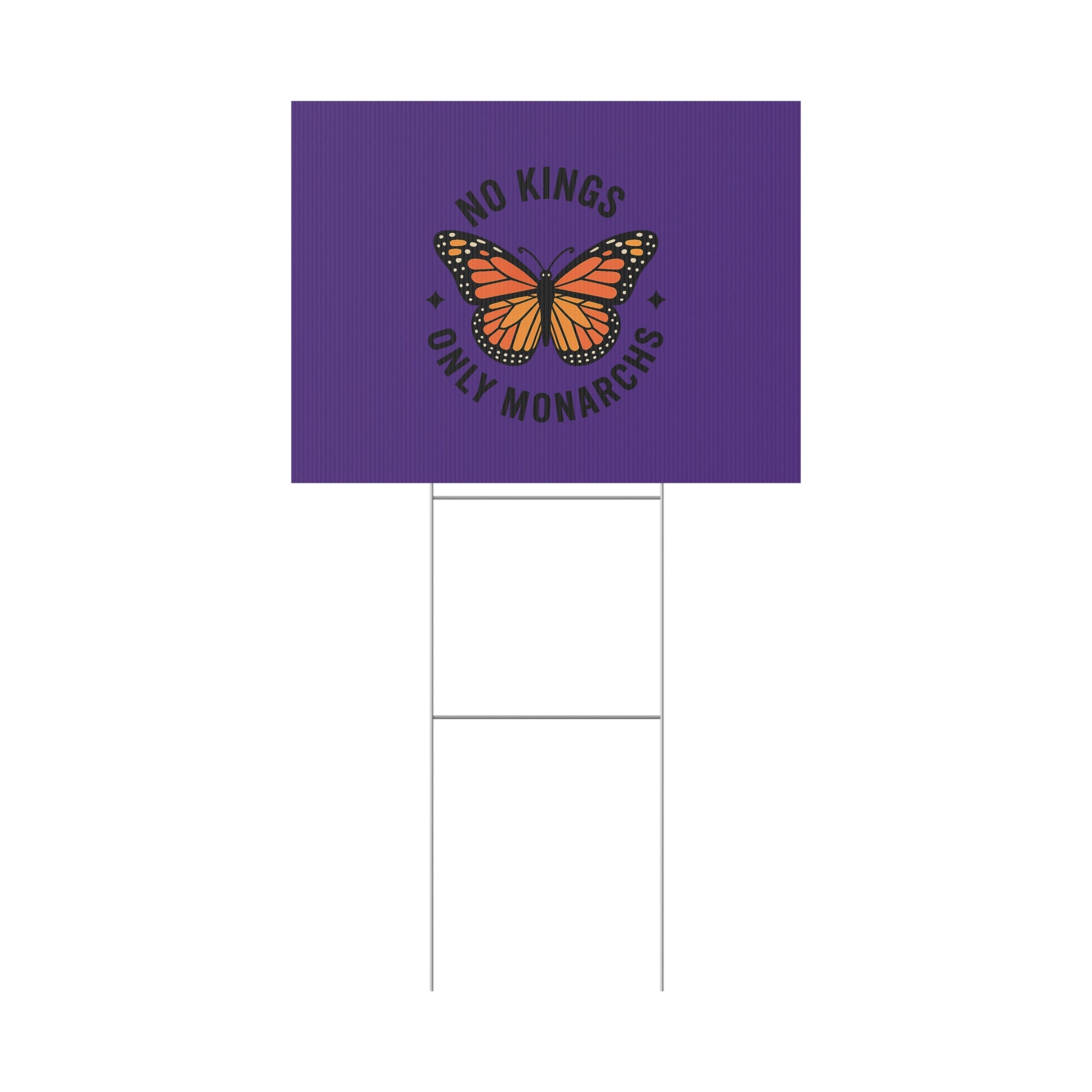 Make a statement with the "no kings only monarchs" yard sign protest with style. Perfect for outdoor use, this durable plastic sign comes with a metal stake for stability. Proudly display this USA-made sign in your garden or lawn. Ideal for activists, protesters, and those looking to make a bold statement.
