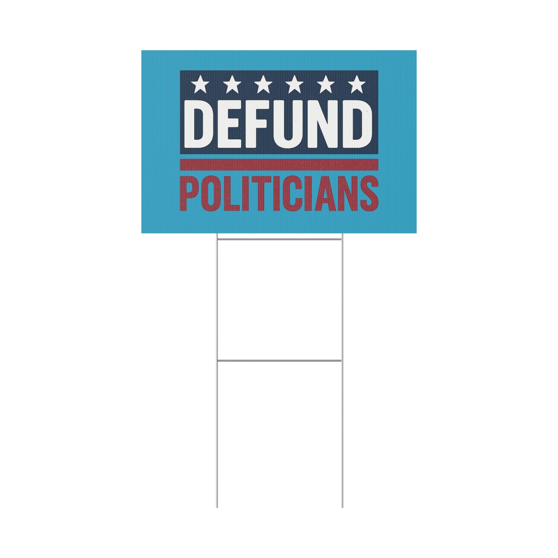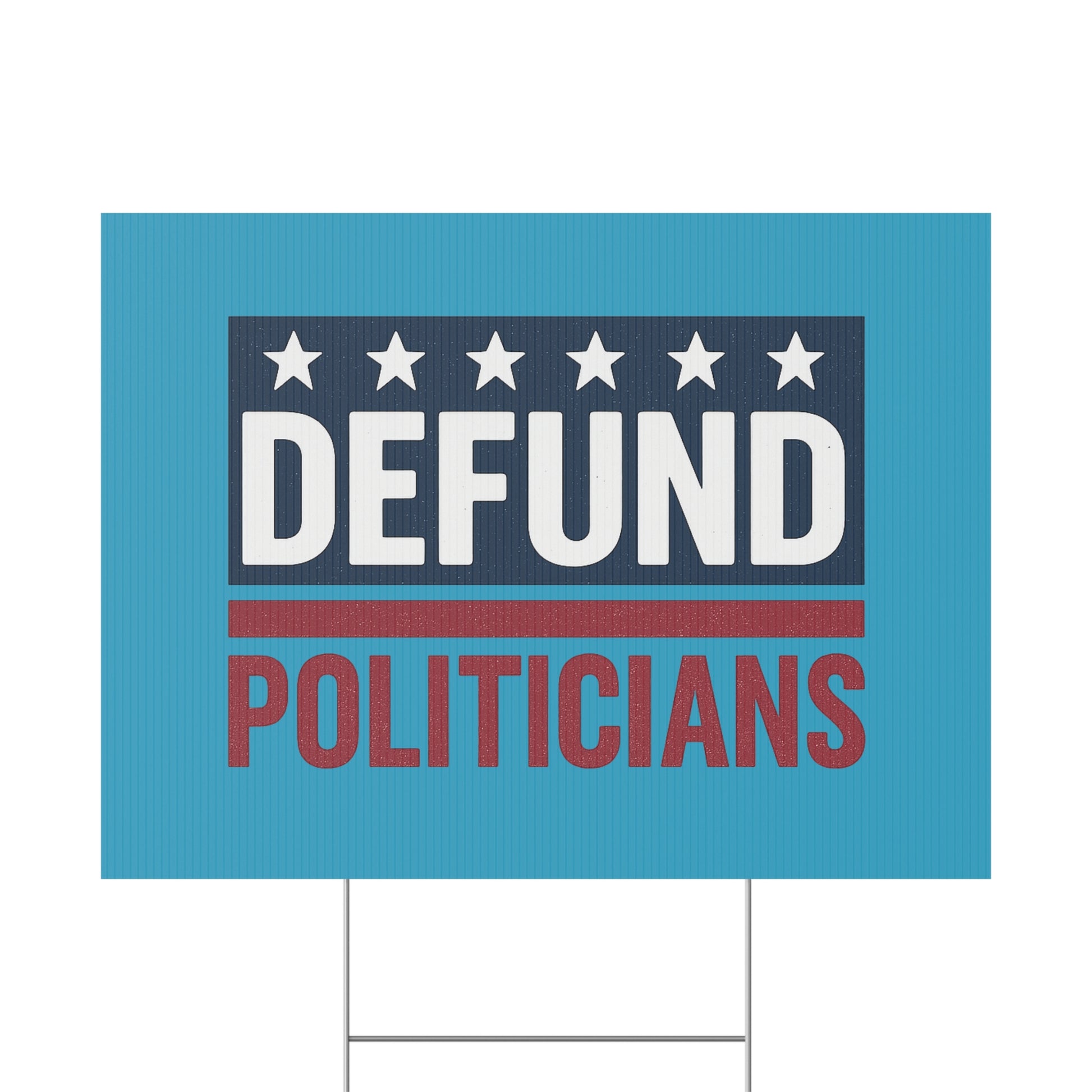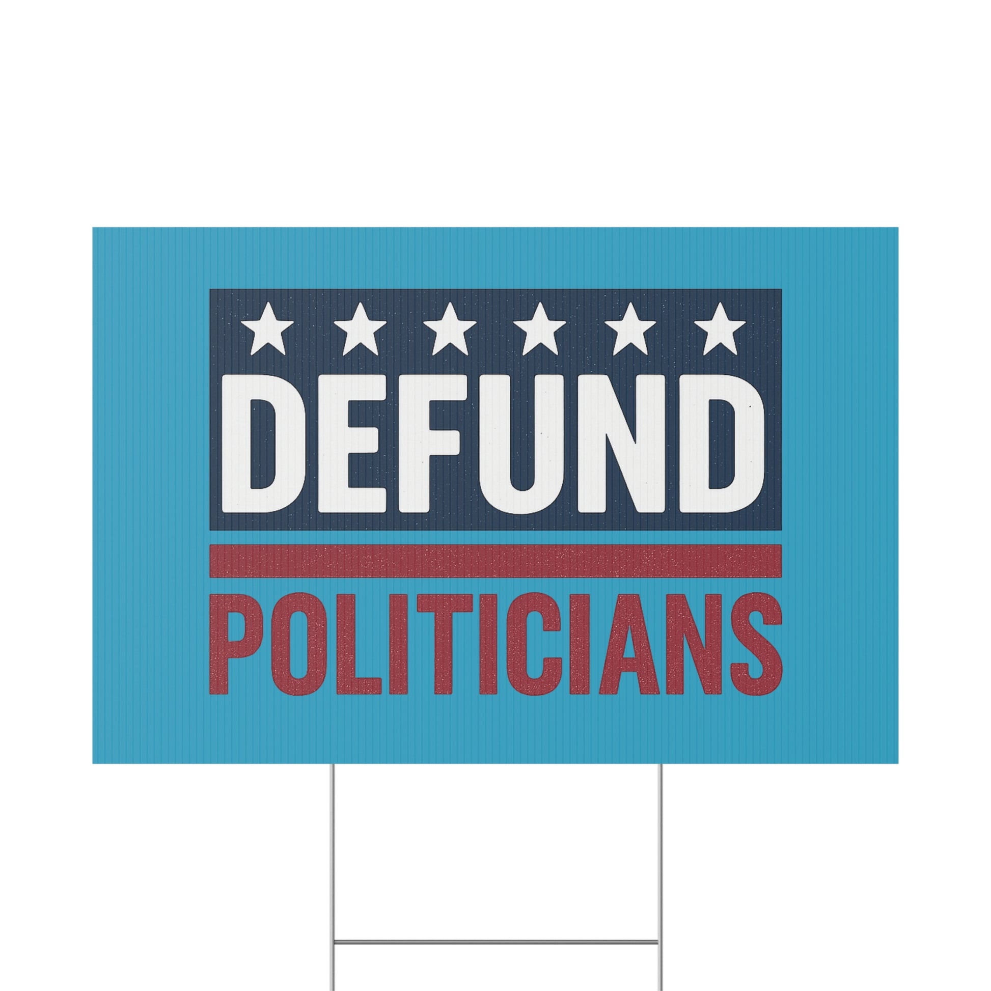 Make your message loud and clear with the “Defund Politicians” Yard Sign — a bold, campaign-style display that flips the script on traditional election signage. Designed in patriotic red, white, and blue with crisp block lettering and star accents, it delivers a powerful nonpartisan statement: the people are done funding corruption and empty promises. Printed on durable, weather-resistant corrugated plastic, this sign is built to handle rain, wind, and debate season alike. Easy to install with an included metal stake, it’s perfect for lawns, fences, or business fronts that stand for accountability over politics-as-usual.
