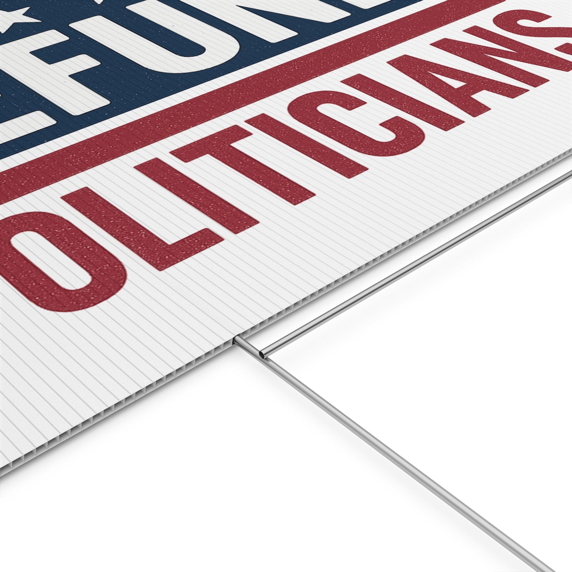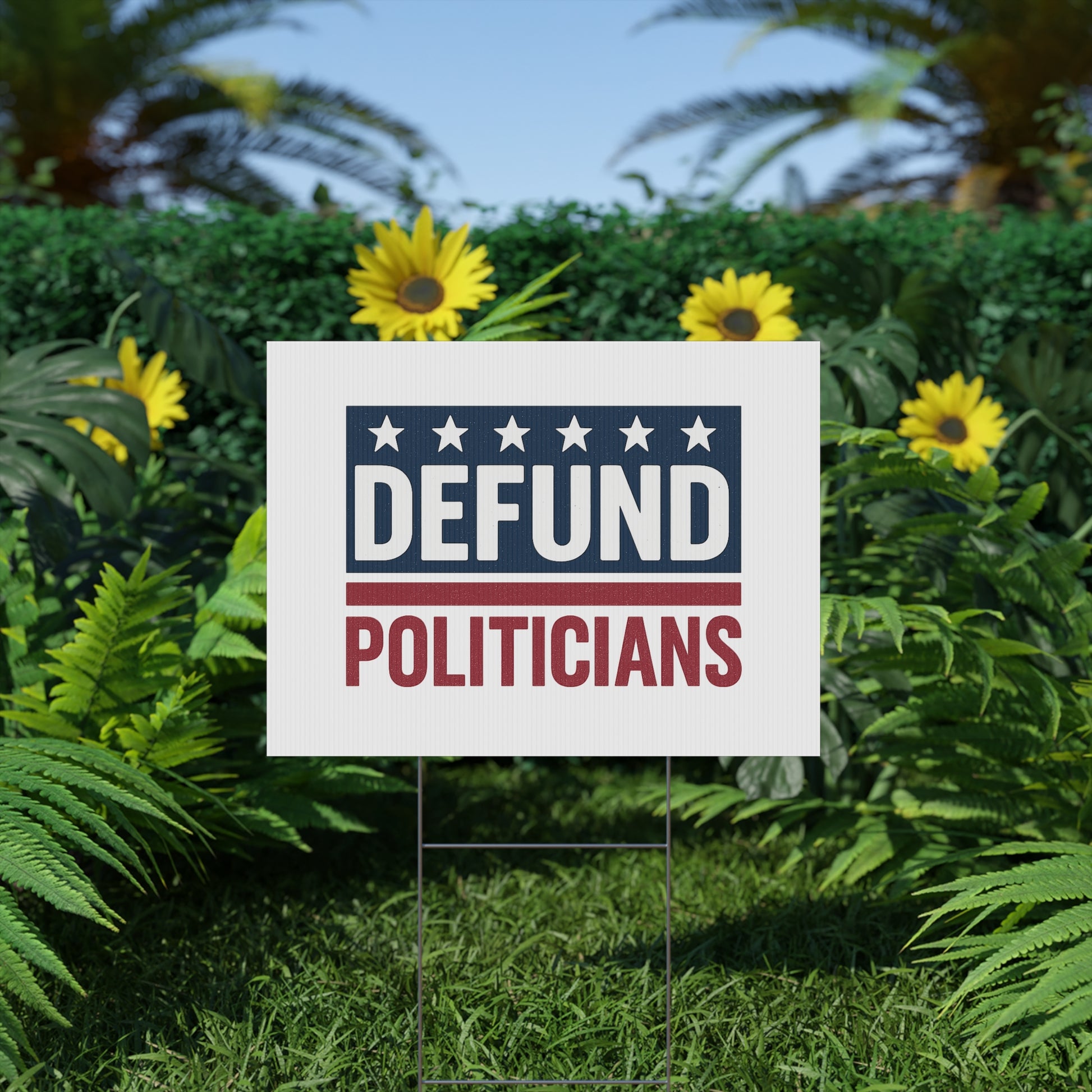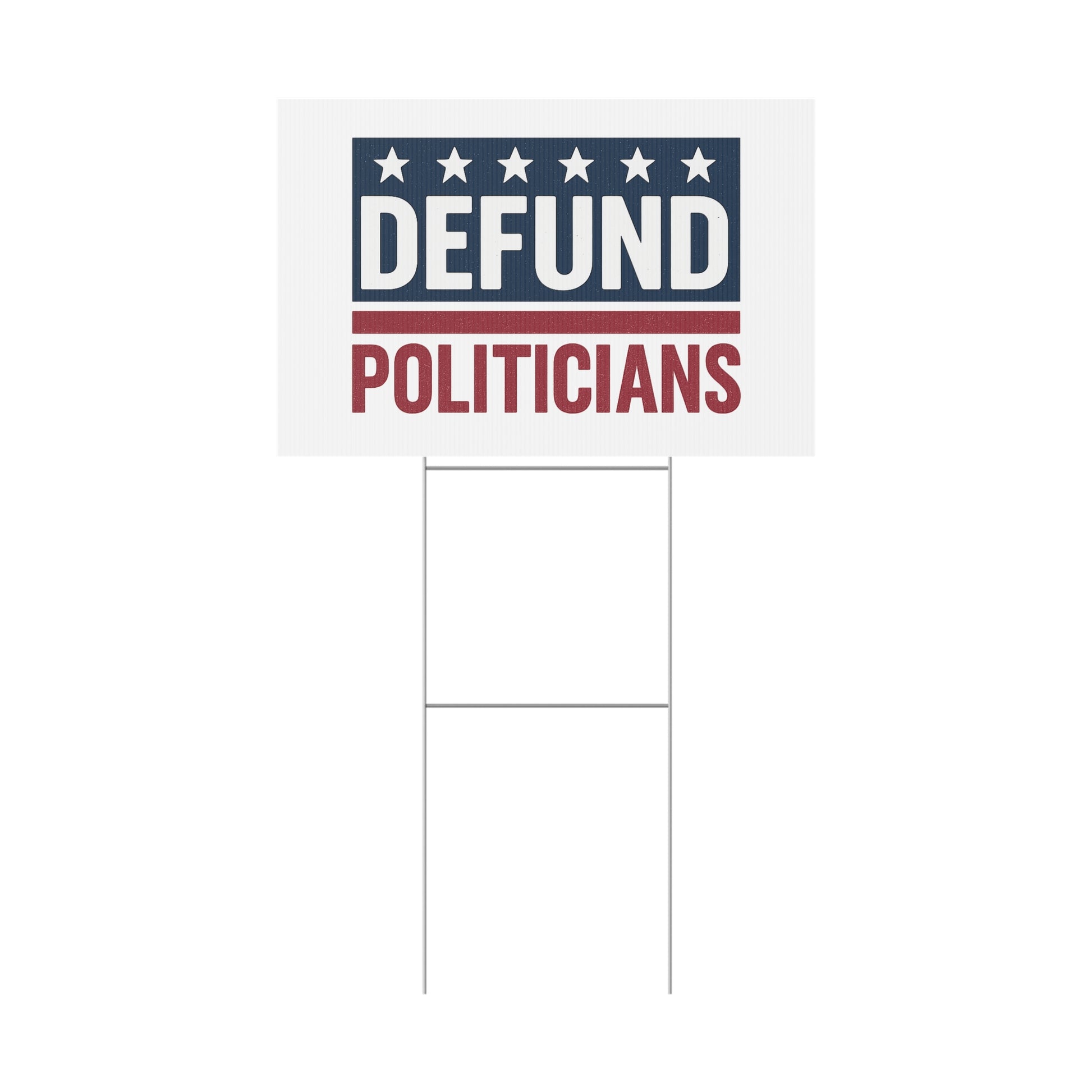 Make your message loud and clear with the “Defund Politicians” Yard Sign — a bold, campaign-style display that flips the script on traditional election signage. Designed in patriotic red, white, and blue with crisp block lettering and star accents, it delivers a powerful nonpartisan statement: the people are done funding corruption and empty promises. Printed on durable, weather-resistant corrugated plastic, this sign is built to handle rain, wind, and debate season alike. Easy to install with an included metal stake, it’s perfect for lawns, fences, or business fronts that stand for accountability over politics-as-usual.