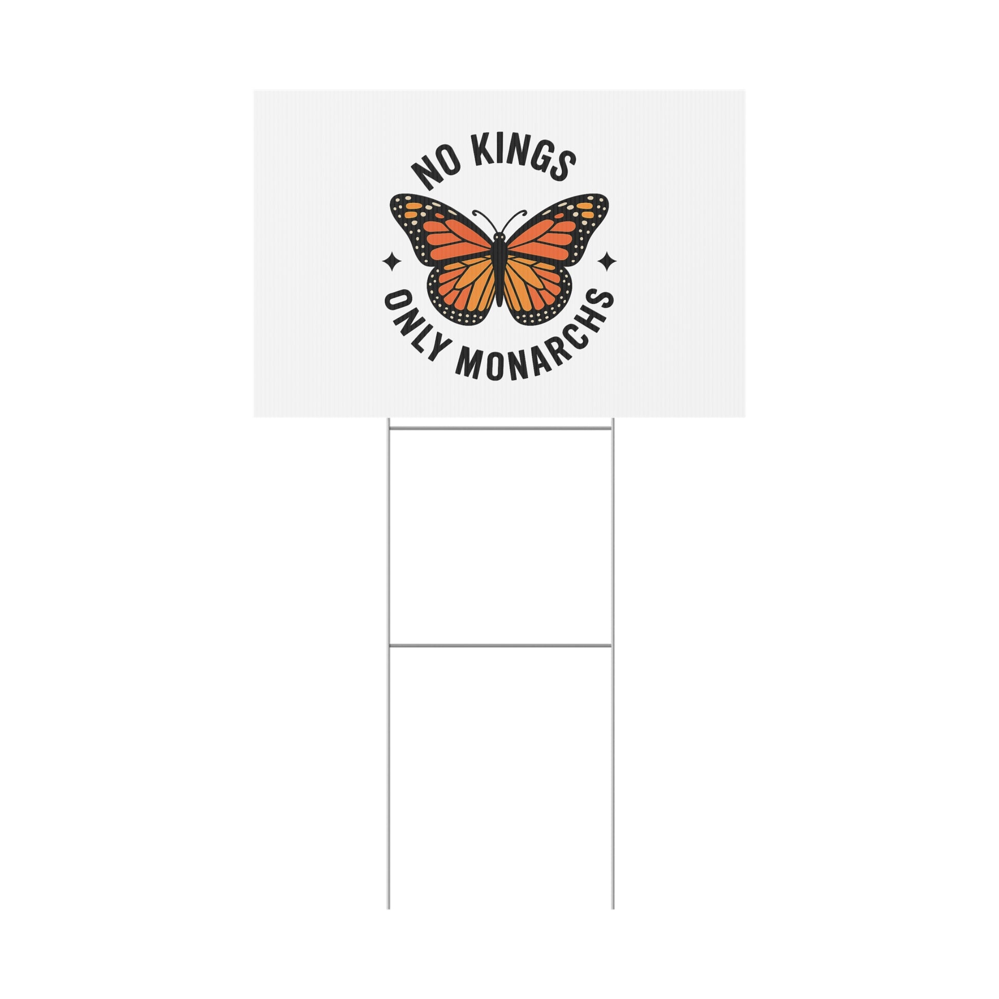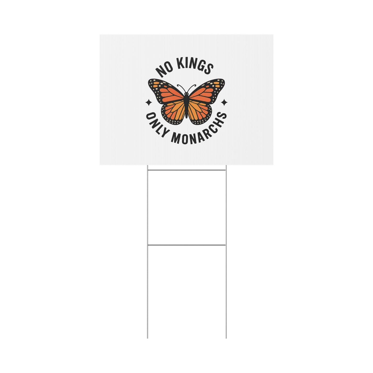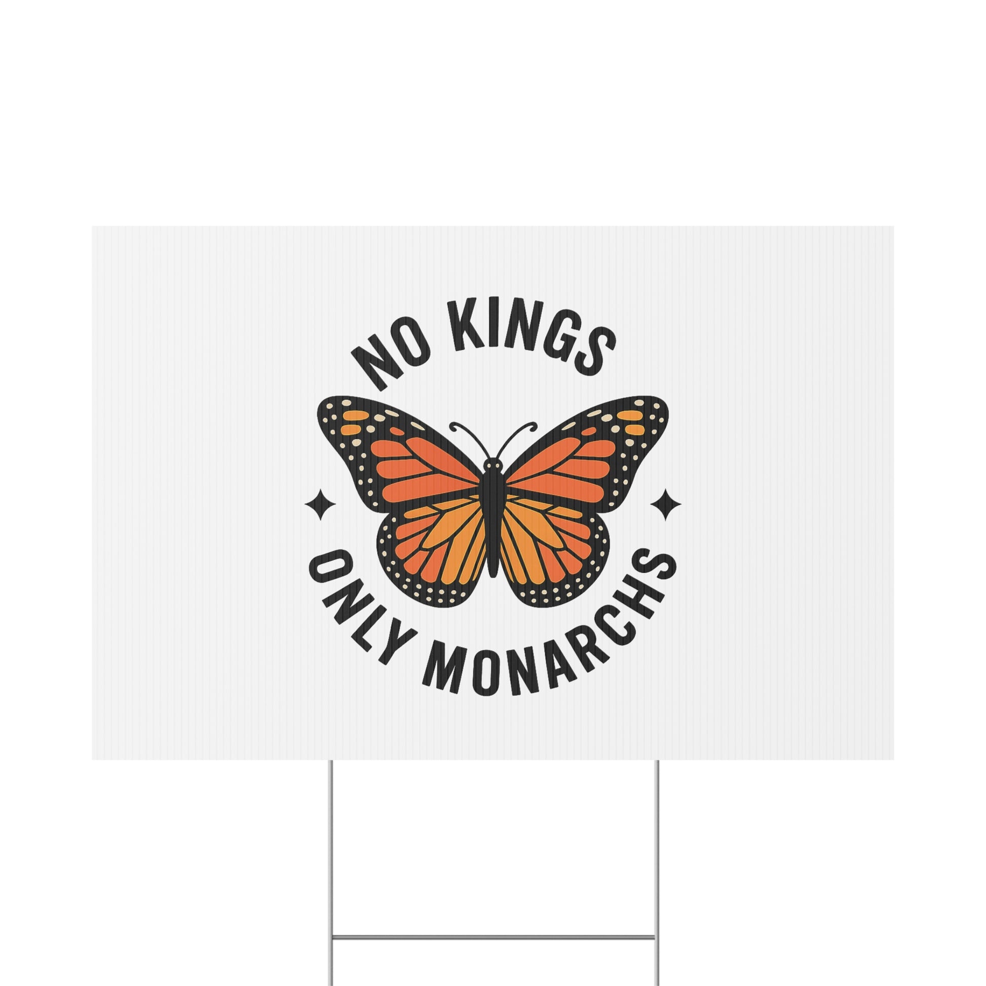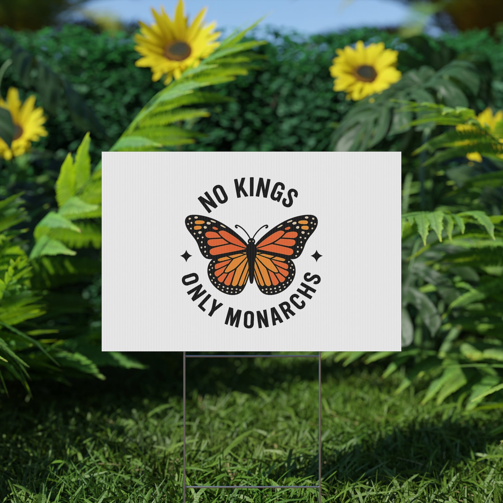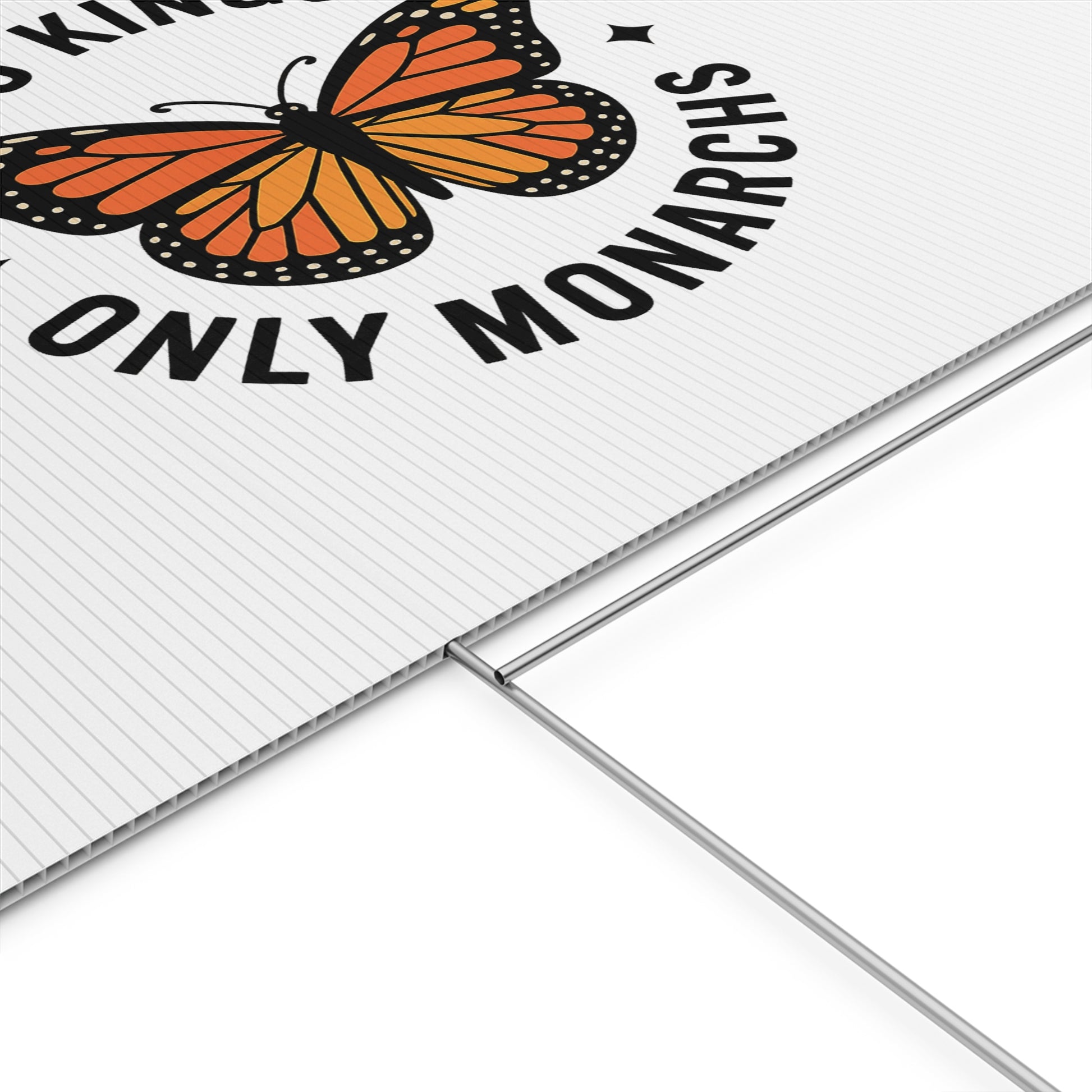 Make a statement with the "no kings only monarchs" yard sign protest with style. Perfect for outdoor use, this durable plastic sign comes with a metal stake for stability. Proudly display this USA-made sign in your garden or lawn. Ideal for activists, protesters, and those looking to make a bold statement.