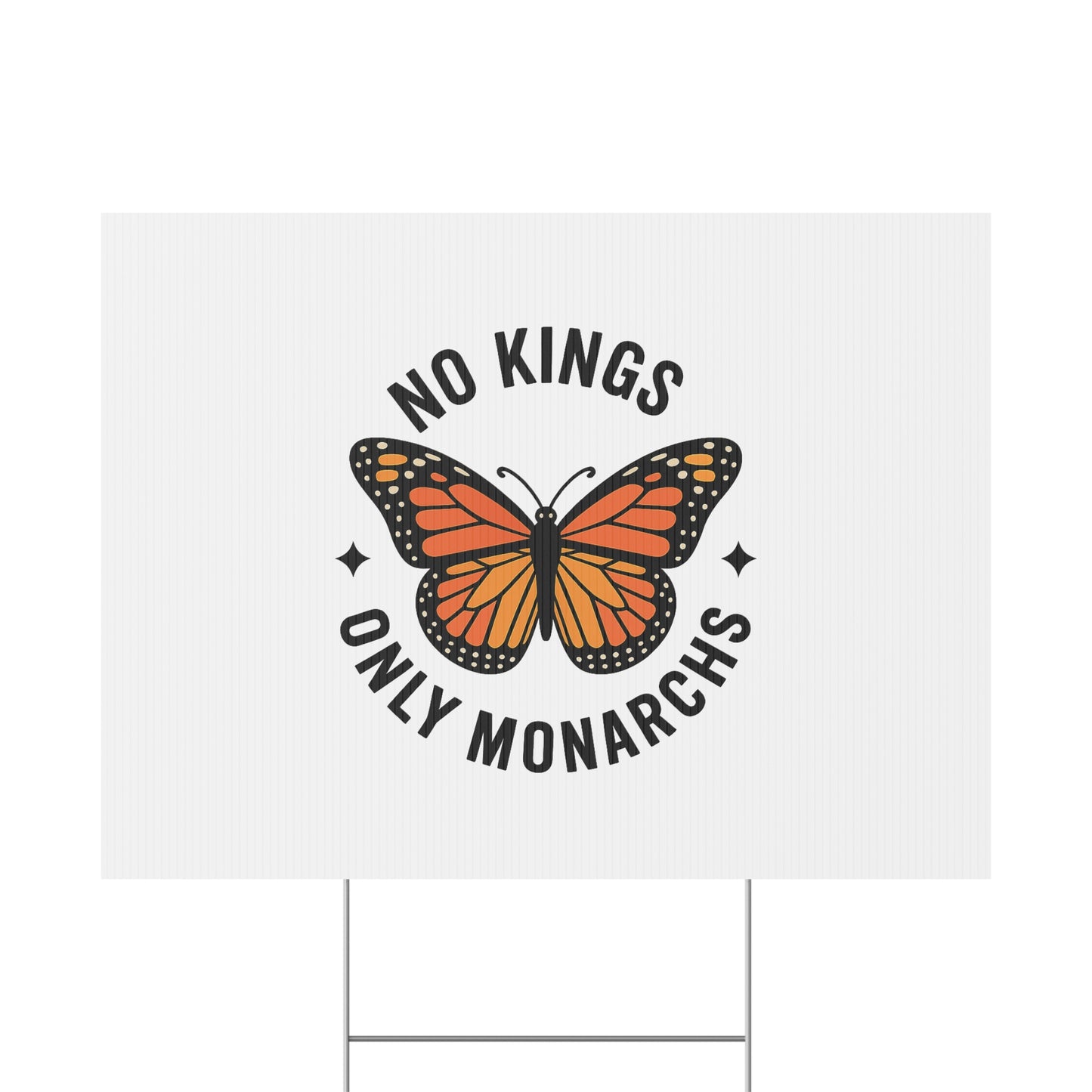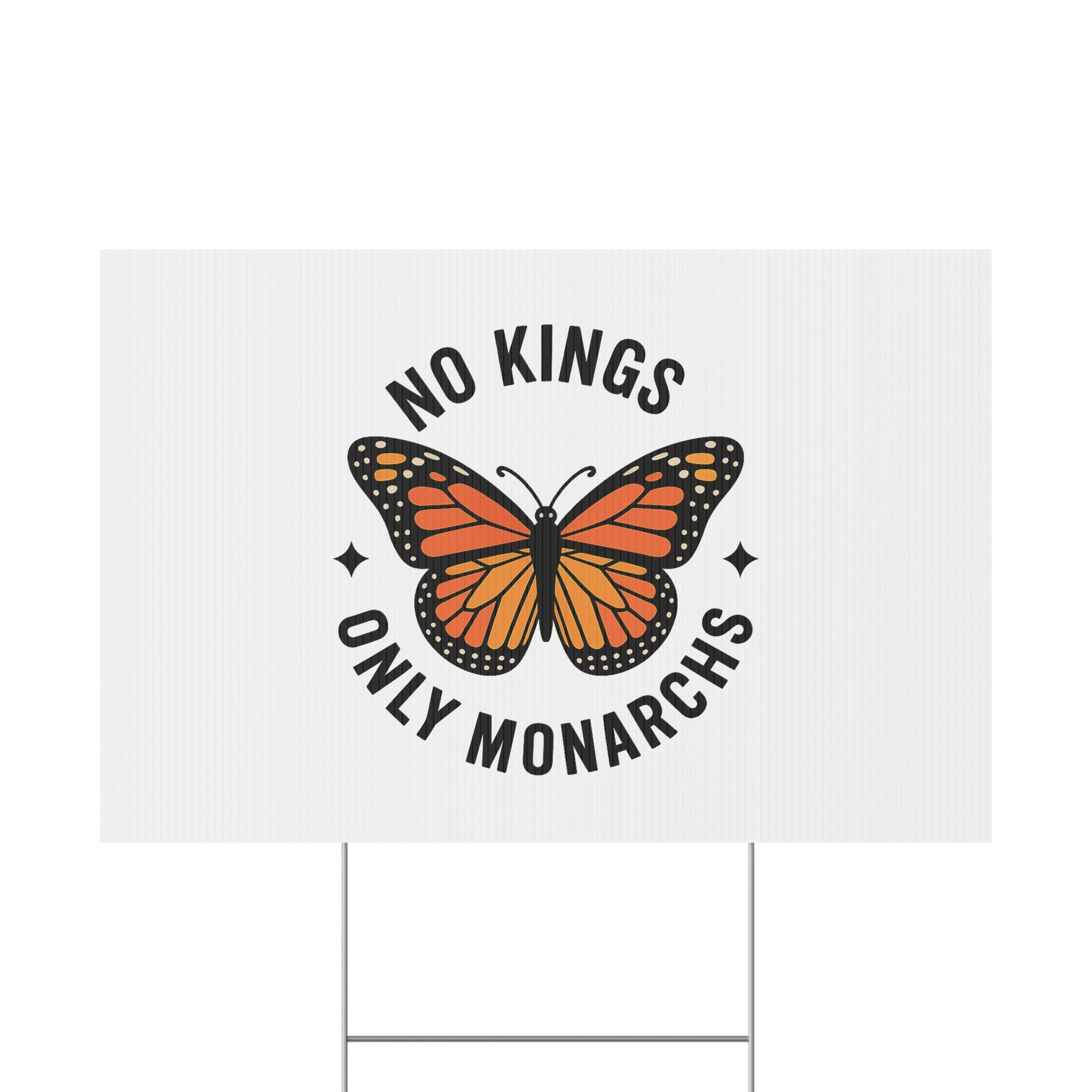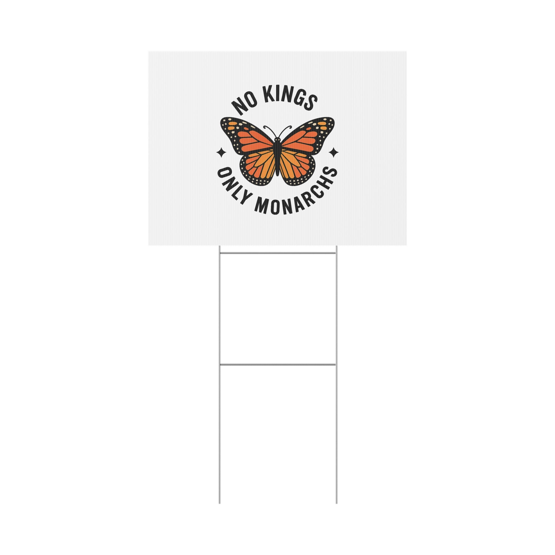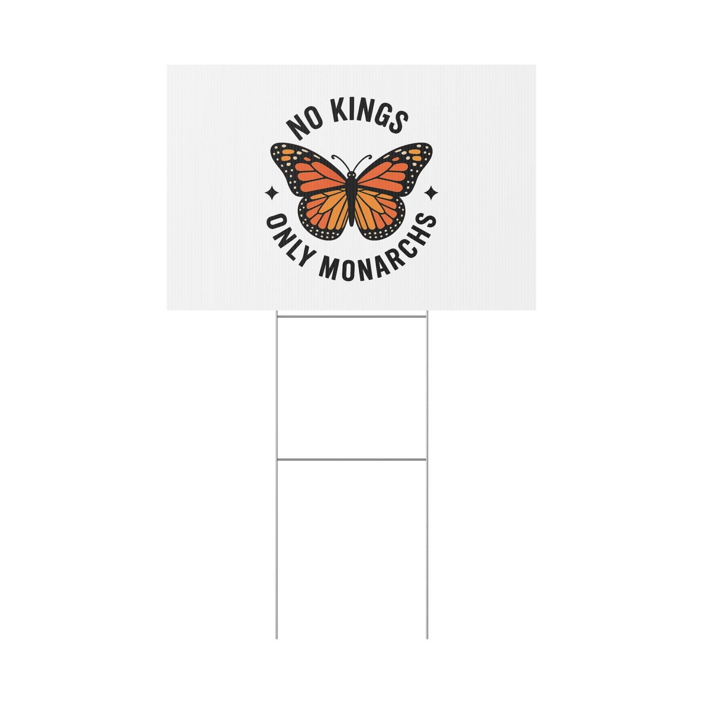 Make a statement with the "no kings only monarchs" yard sign protest with style. Perfect for outdoor use, this durable plastic sign comes with a metal stake for stability. Proudly display this USA-made sign in your garden or lawn. Ideal for activists, protesters, and those looking to make a bold statement.