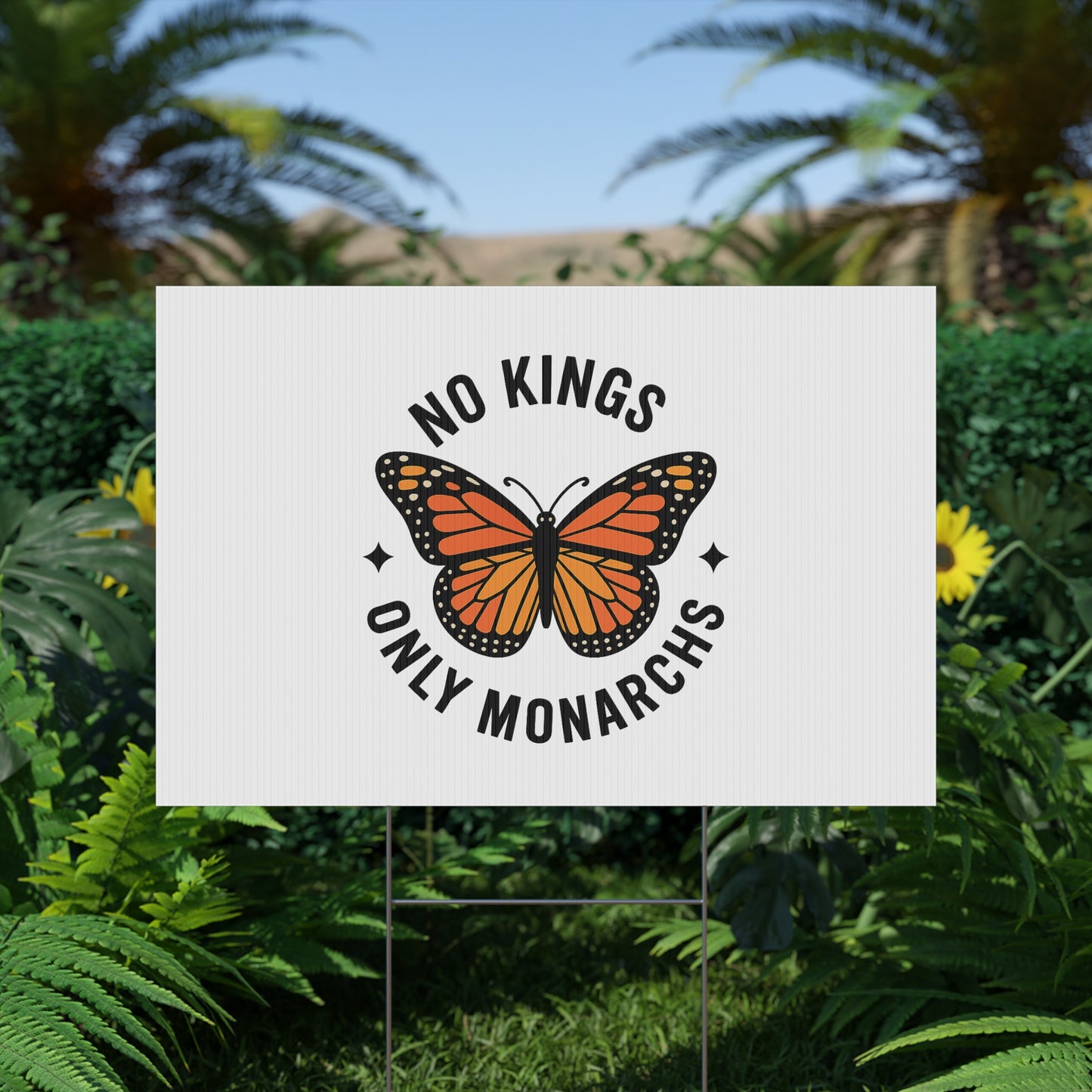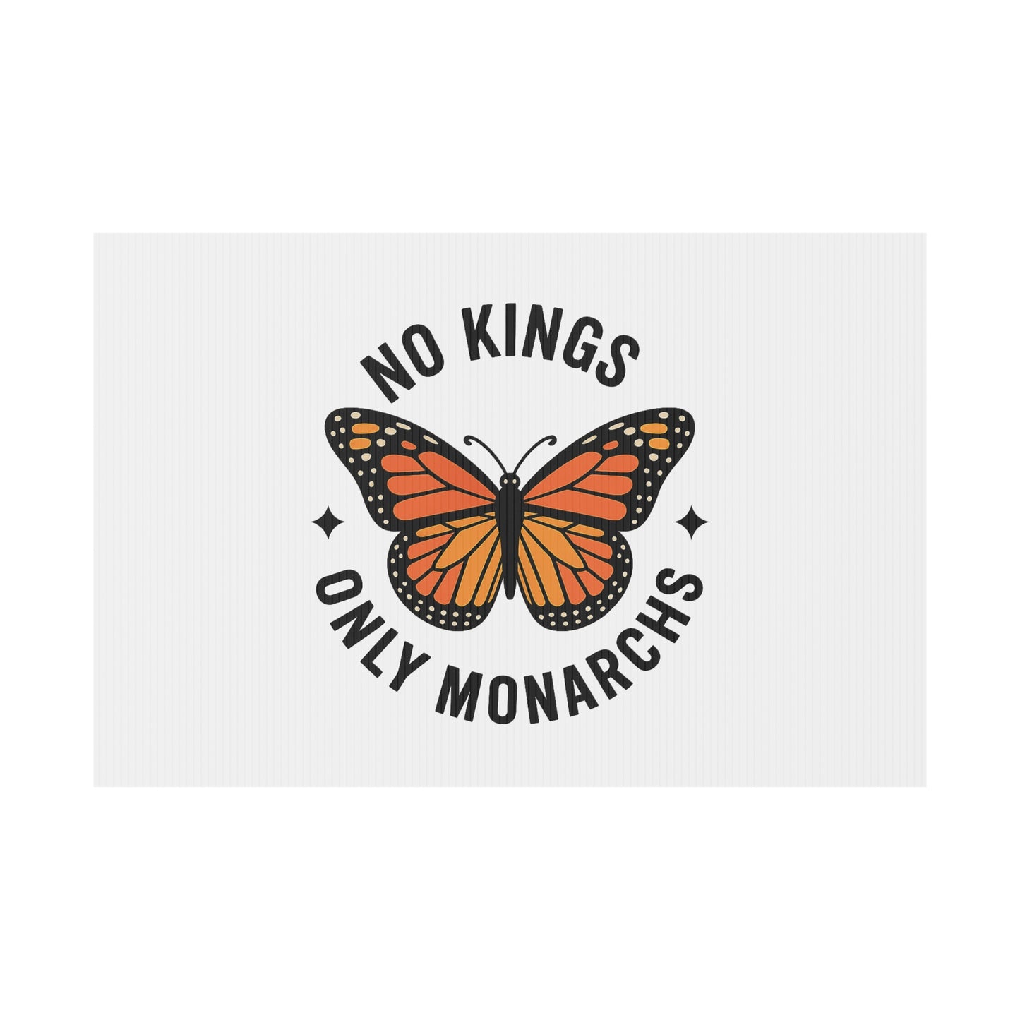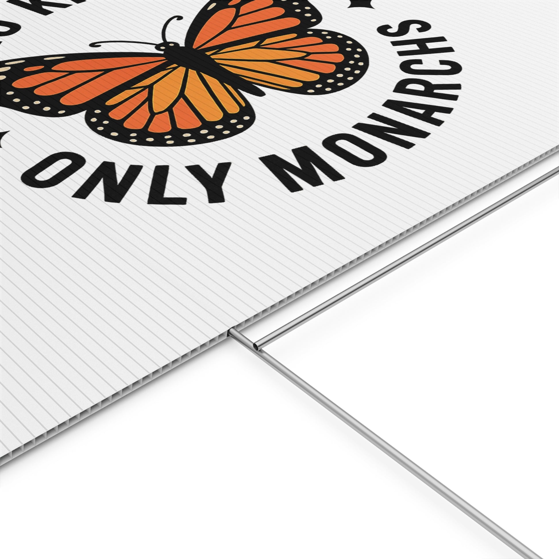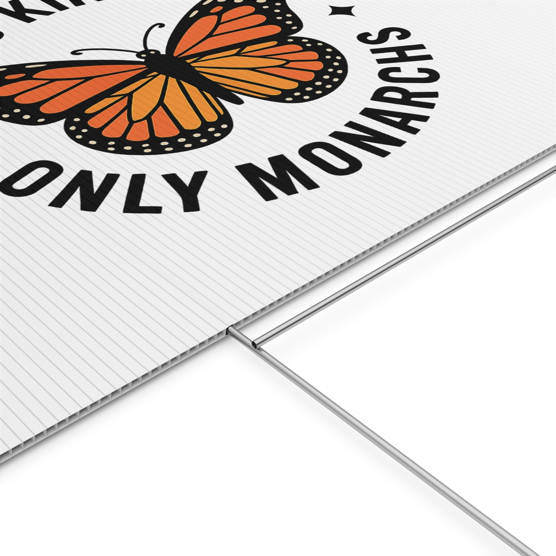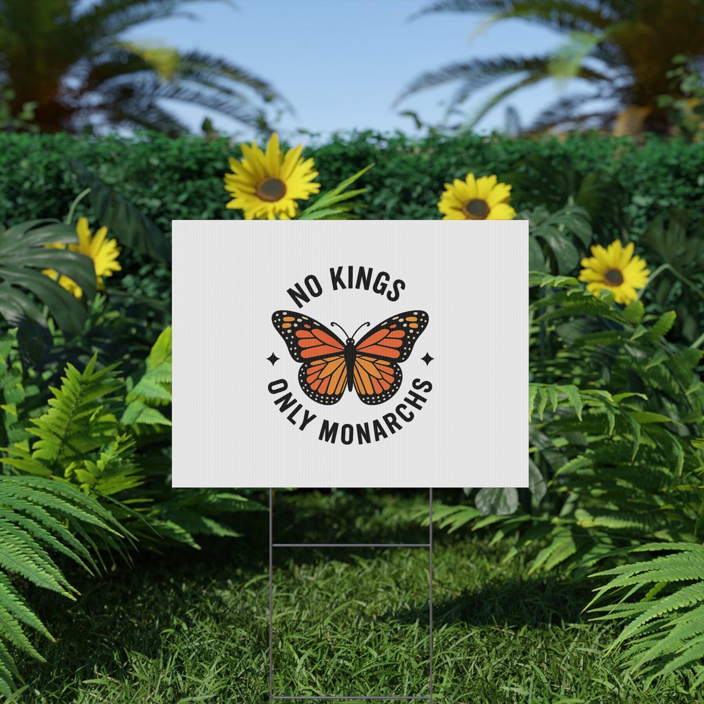 Make a statement with the "no kings only monarchs" yard sign protest with style. Perfect for outdoor use, this durable plastic sign comes with a metal stake for stability. Proudly display this USA-made sign in your garden or lawn. Ideal for activists, protesters, and those looking to make a bold statement.