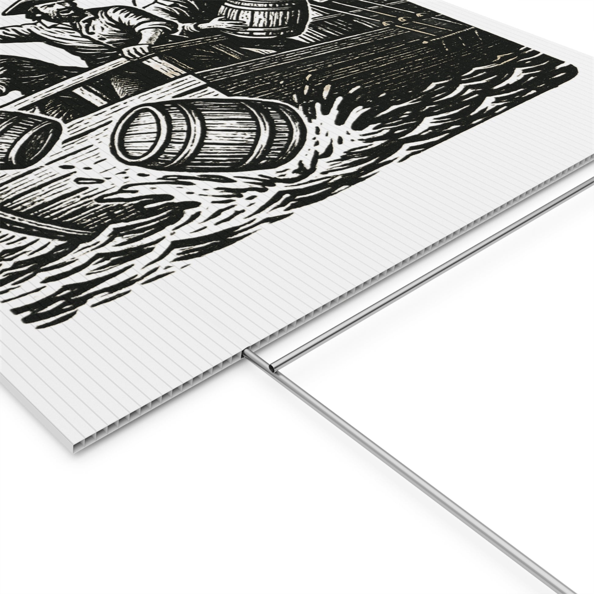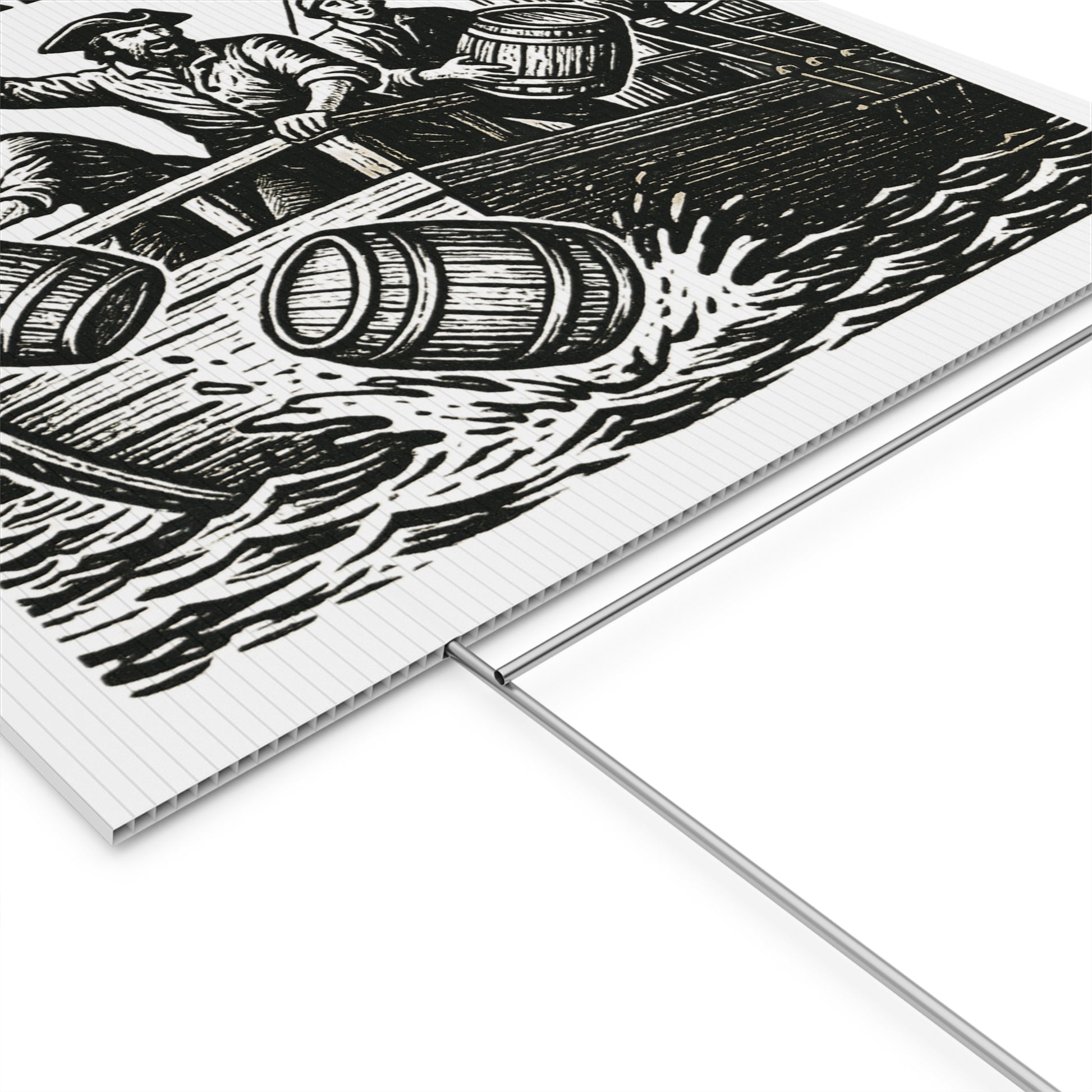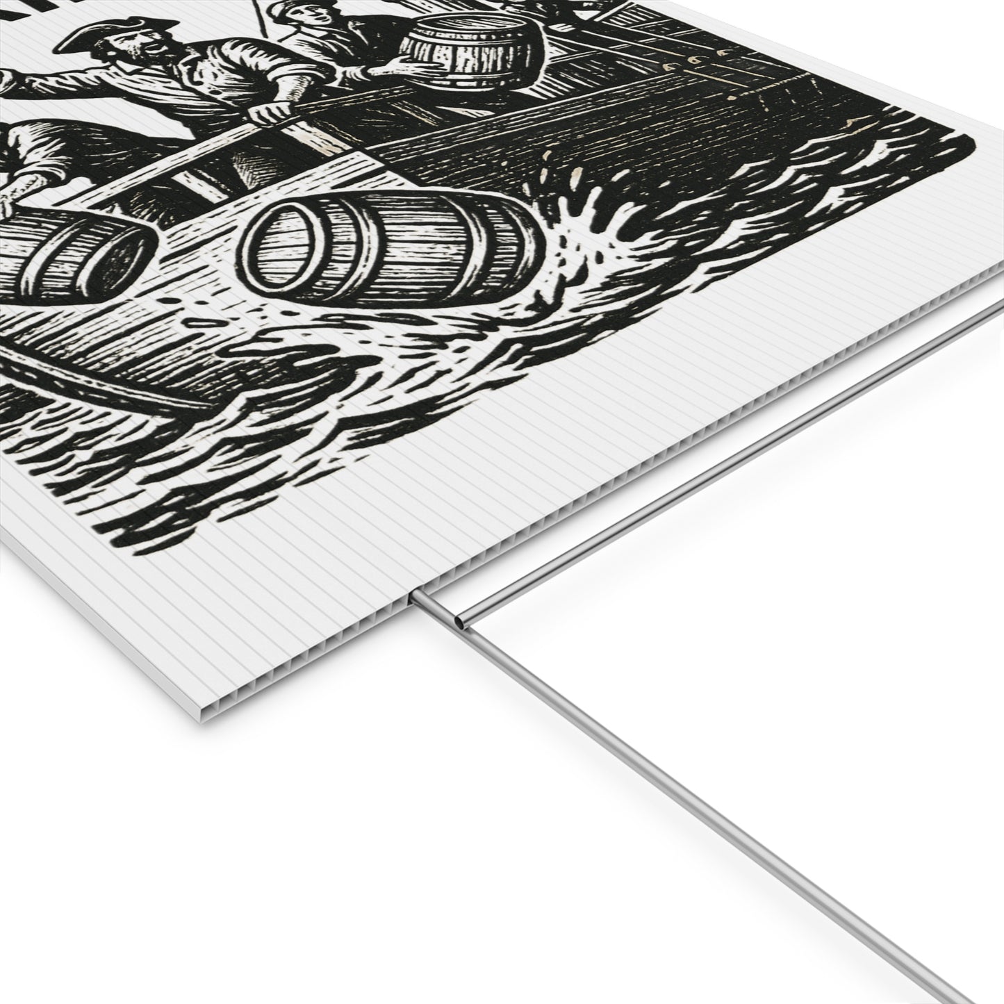 Unique and bold Boston tea party themed yard sign, perfect for outdoor use. Gives a historical and rebellious vibe. Ideal for those who enjoy history, political activism, or themed parties. Relevant for Independence Day, Veterans Day, and political events.