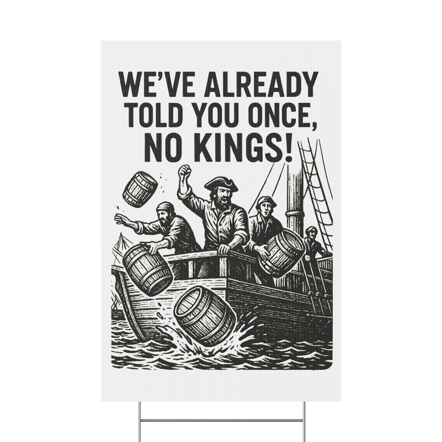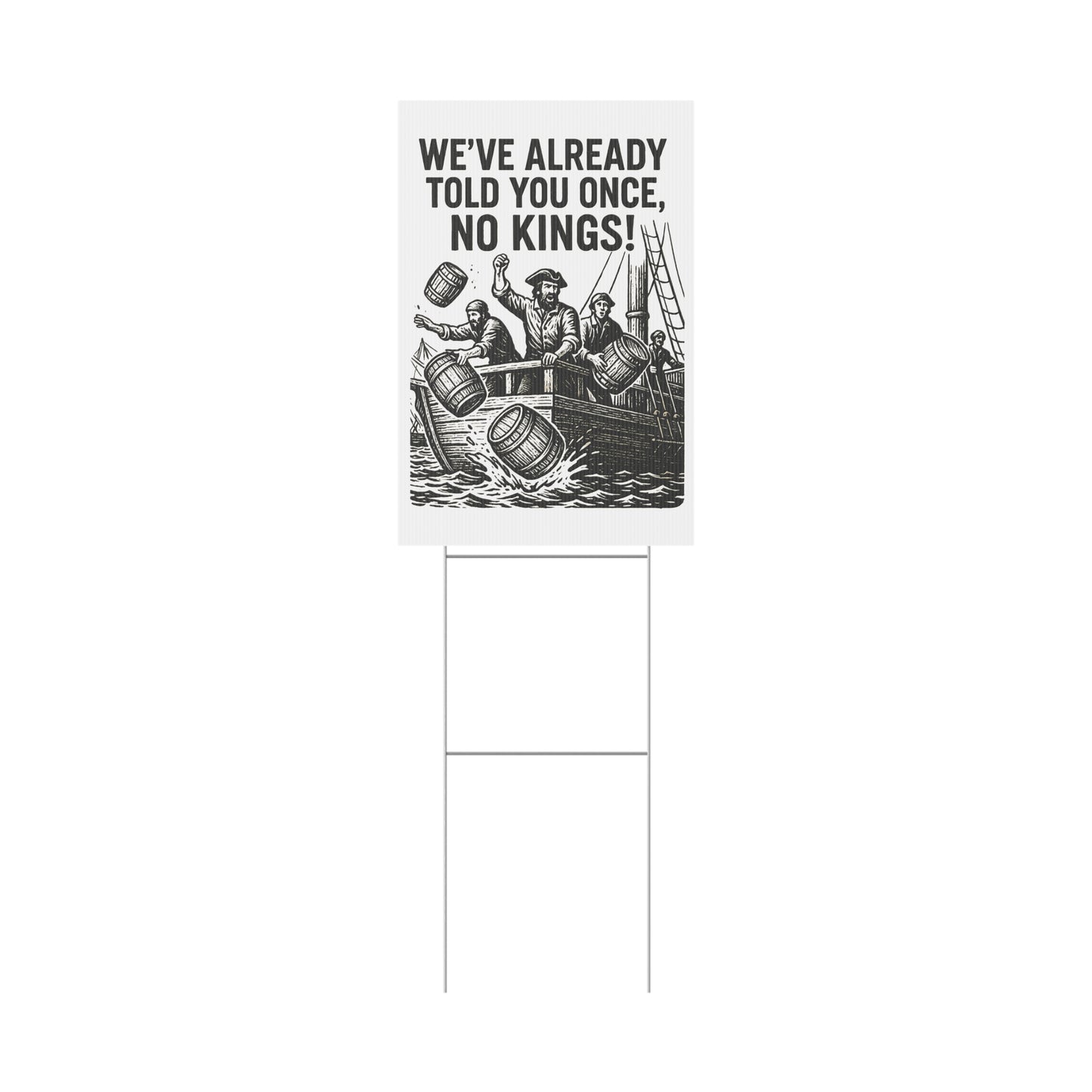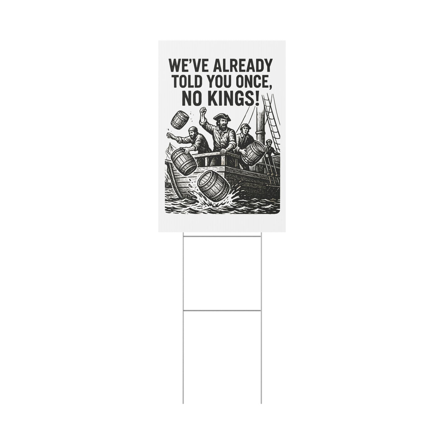Unique and bold Boston tea party themed yard sign, perfect for outdoor use. Gives a historical and rebellious vibe. Ideal for those who enjoy history, political activism, or themed parties. Relevant for Independence Day, Veterans Day, and political events.