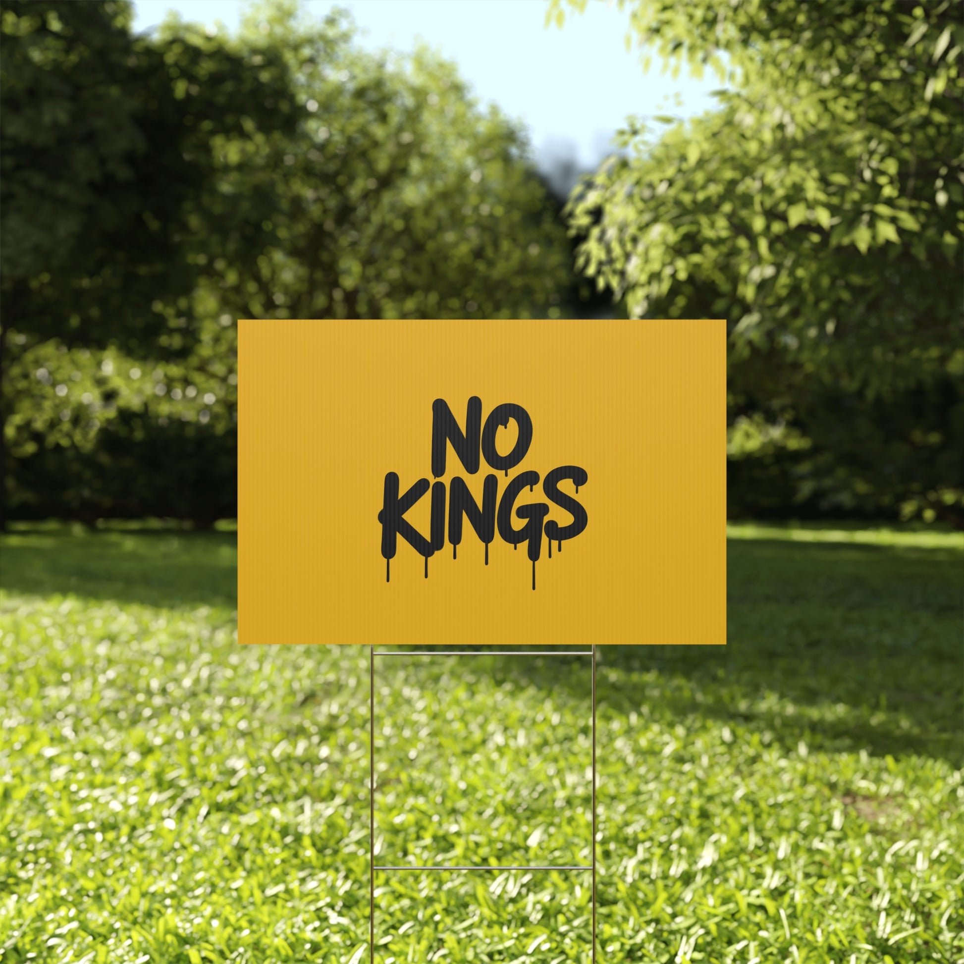 Yellow Spray Paint No Kings Protest Yard Sign